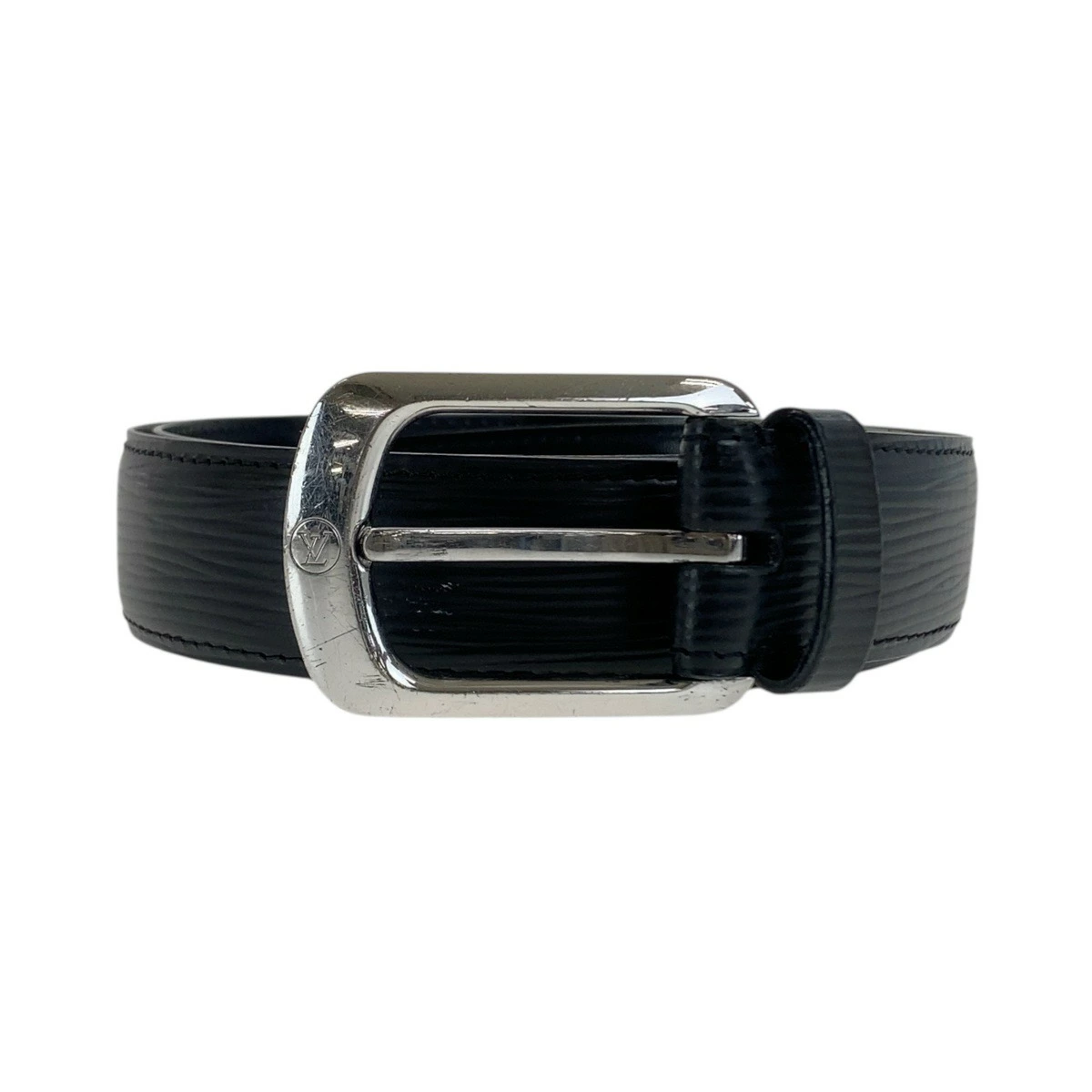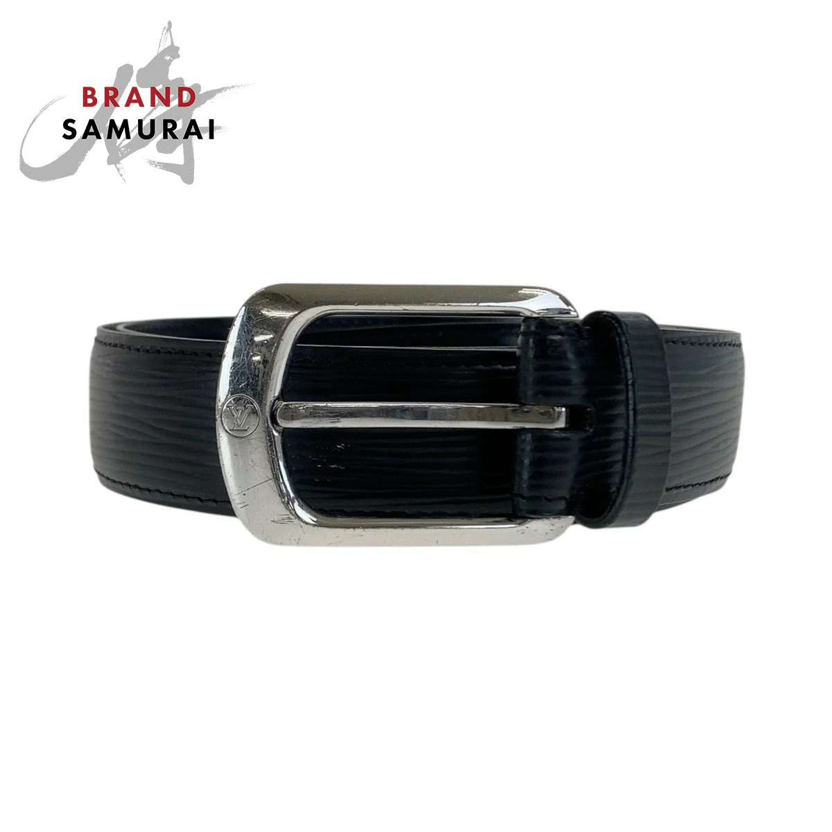 Excellent condition LOUIS VUITTON Epi Santur Ellipse Belt, 85cm/34 inches, Noir Black with silver hardware and leather, M6913, Men's, 505259 [Pre-owned]