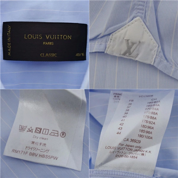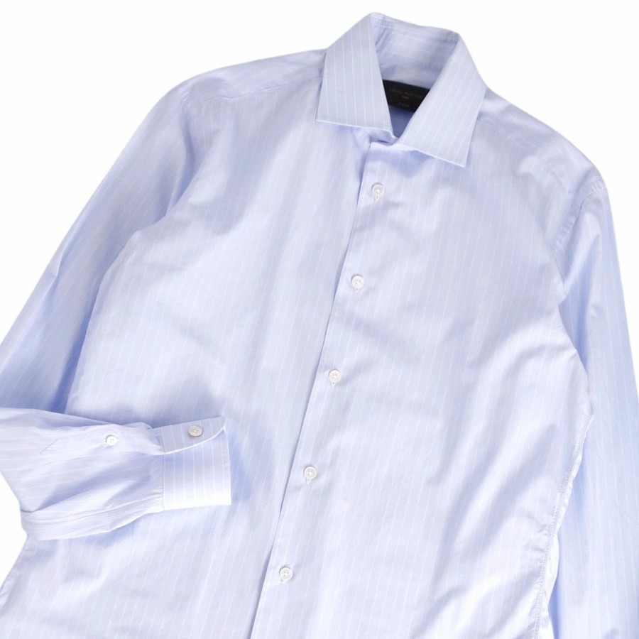 ルイヴィトン LOUIS VUITTON シャツ ロングスリーブ 長袖 ストライプ コットン イタリア製 トップス メンズ ライトブルー/ホワイト サイズ40/16(M相当)