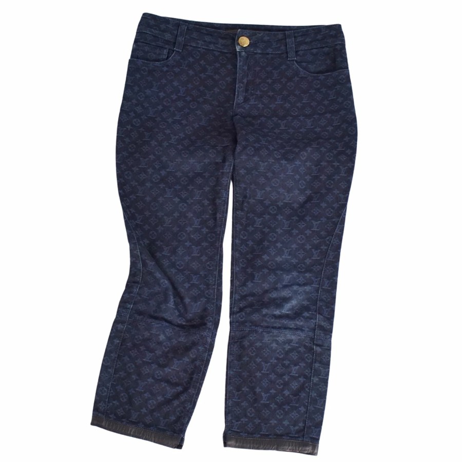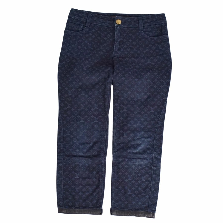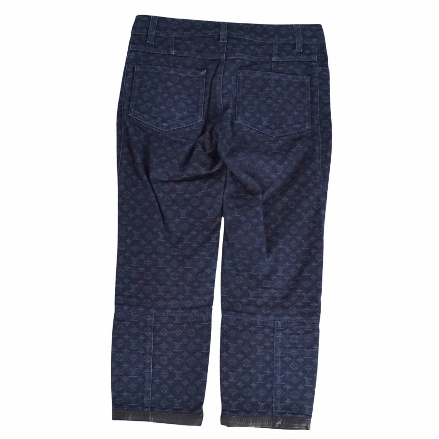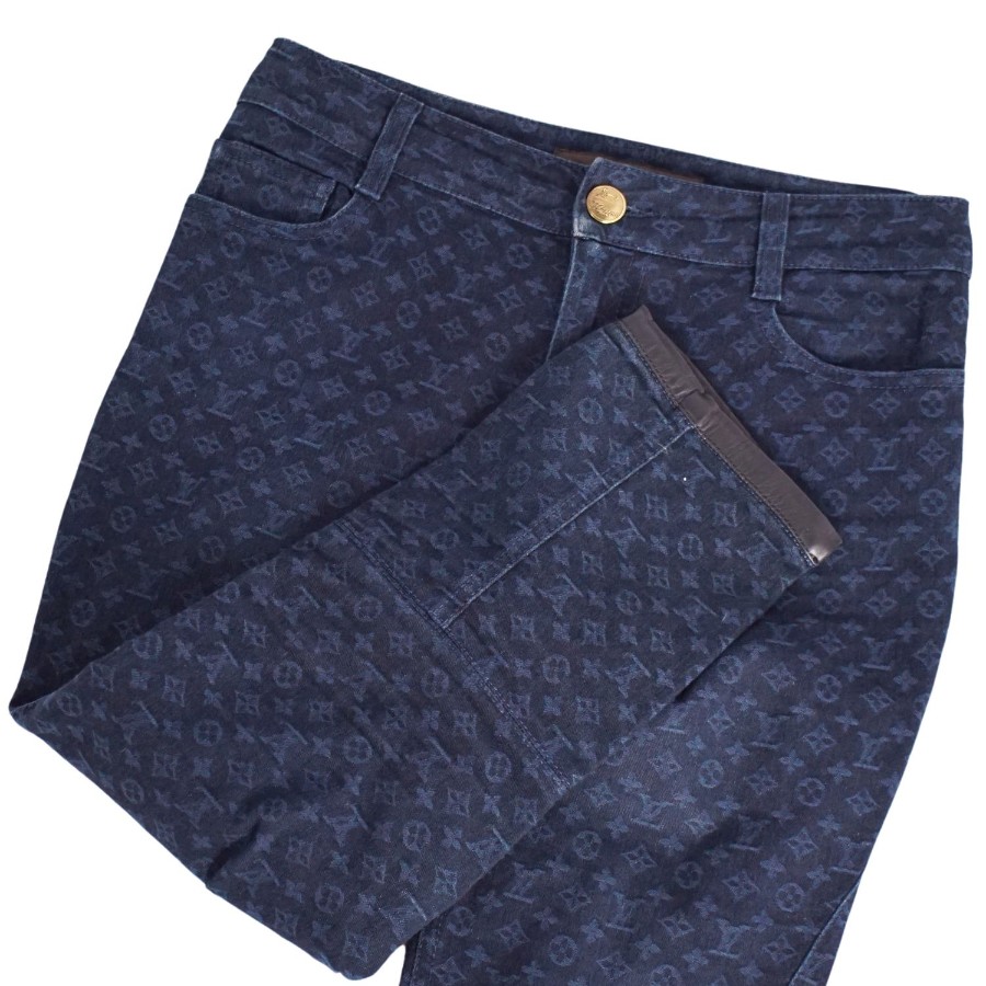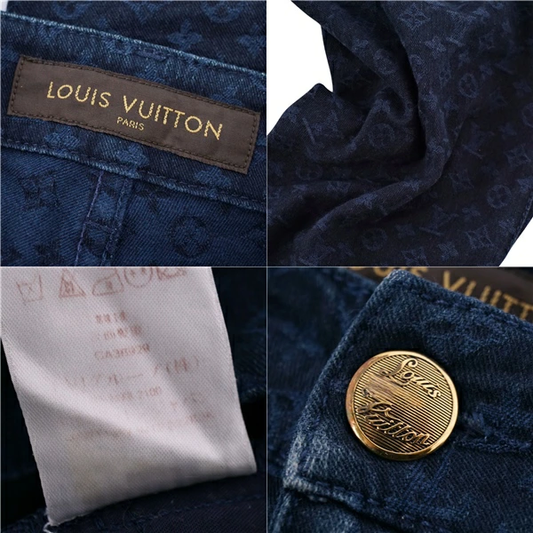 ルイヴィトン LOUIS VUITTON パンツ デニムパンツ モノグラム コットン ボトムス レディース イタリア製 ネイビー サイズ36(S相当)