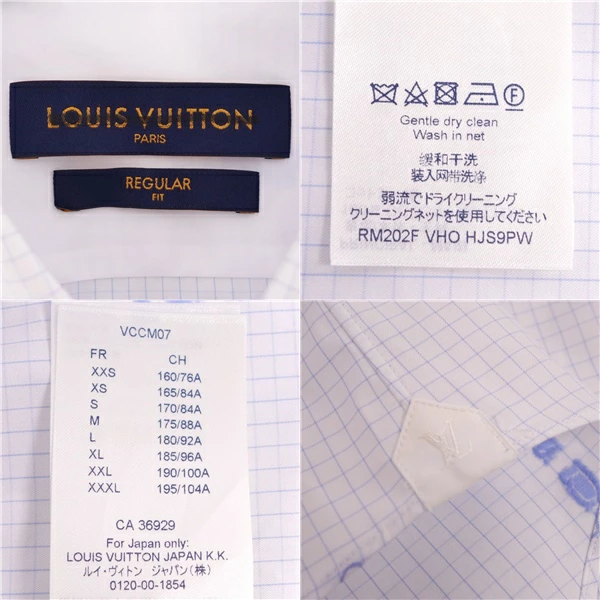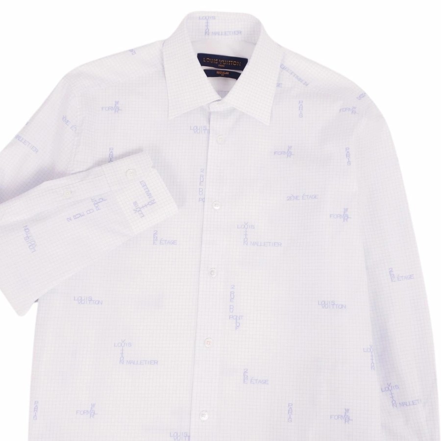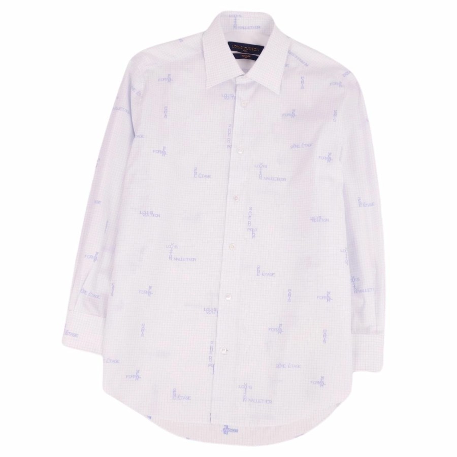 ルイヴィトン LOUIS VUITTON シャツ 2020年 ロングスリーブ 長袖 ロゴ 総柄 トップス メンズ ホワイト/ブルー サイズ40/15 3/4(M相当)