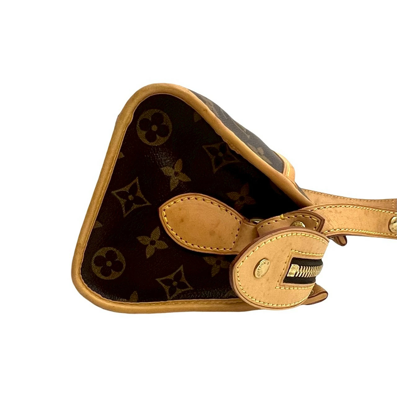 ●外側: AB 表面小傷、擦れ ストラップ薄汚れ小、色むら小 金具部分小傷
