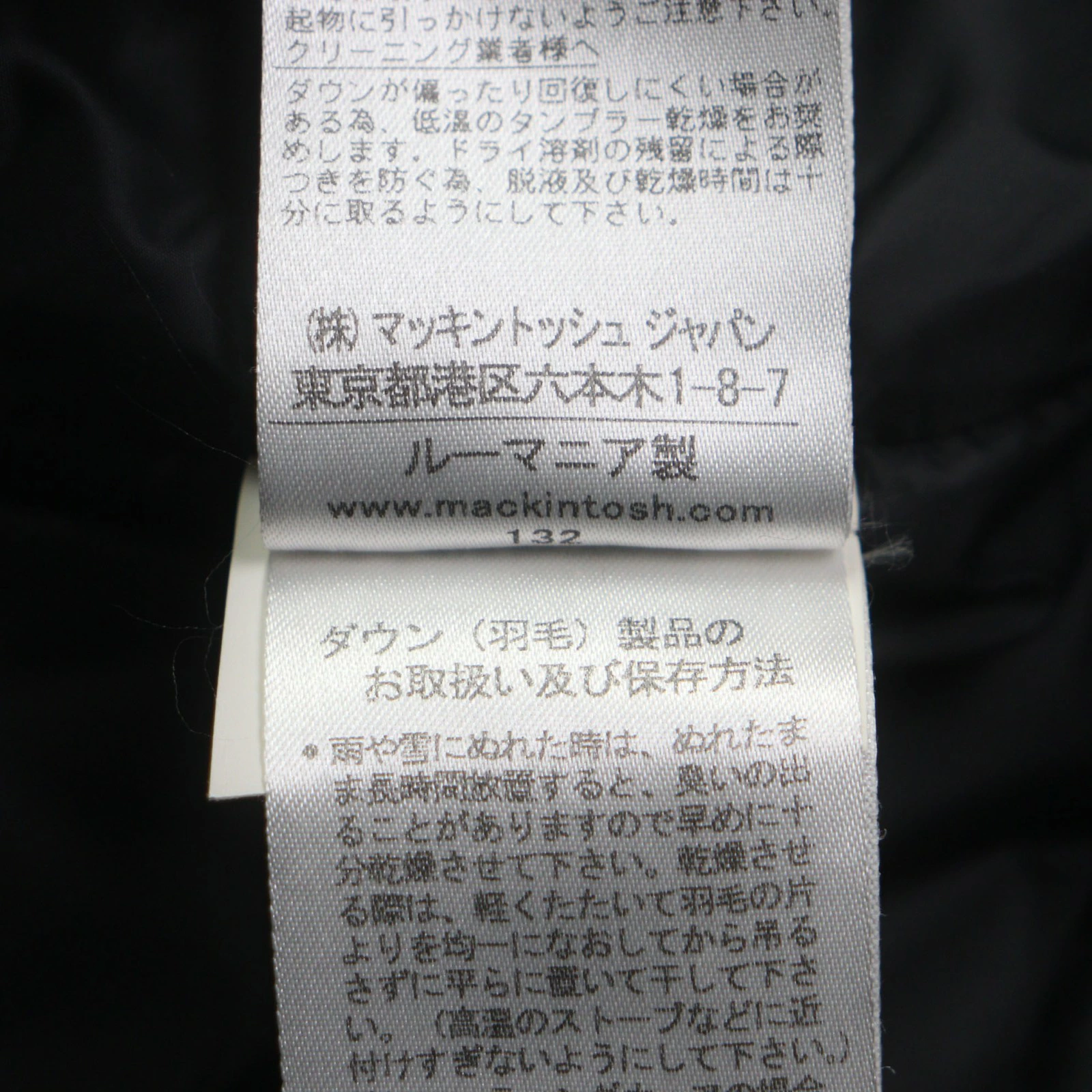 | 素材 (material) | 表地:ウール100% 裏地:ポリエステル100% 詰物:ダウン70% :フェザー30% 皮革部分:牛革 | ||||||||||||||||