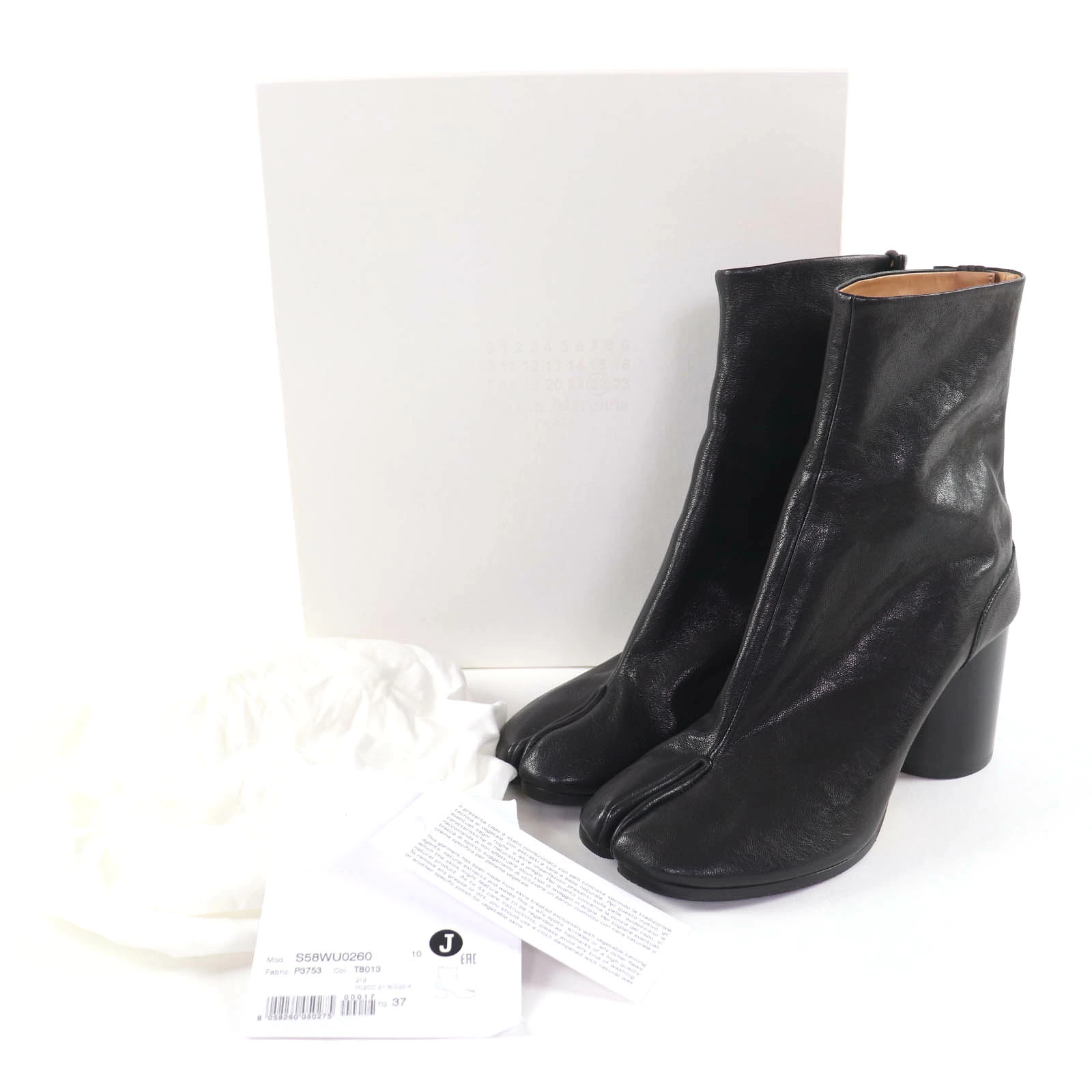 Excellent condition Maison Margiela 22 Tabi leather short boots (S58WU0260), black, size 37, with box and dust bag, made in Italy. Pre-owned.