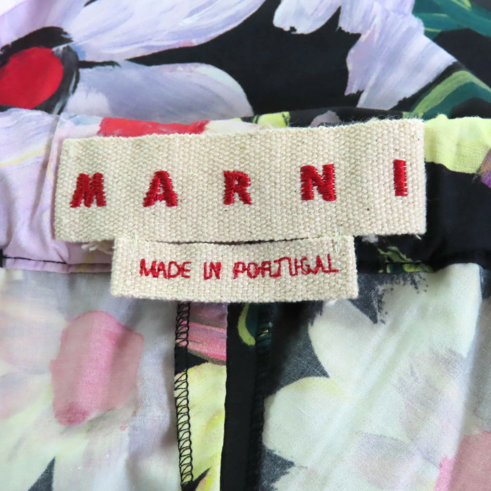 Excellent condition MARNI 2021 100% cotton floral print sleeveless top and easy-fit wide-leg pants set, multicolor, size 36/40, made in Italy, authentic, women's [pre-owned]