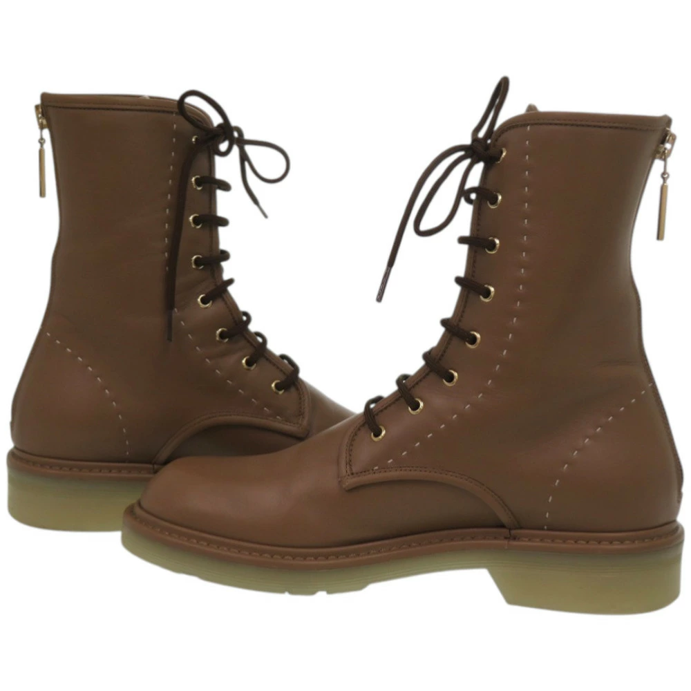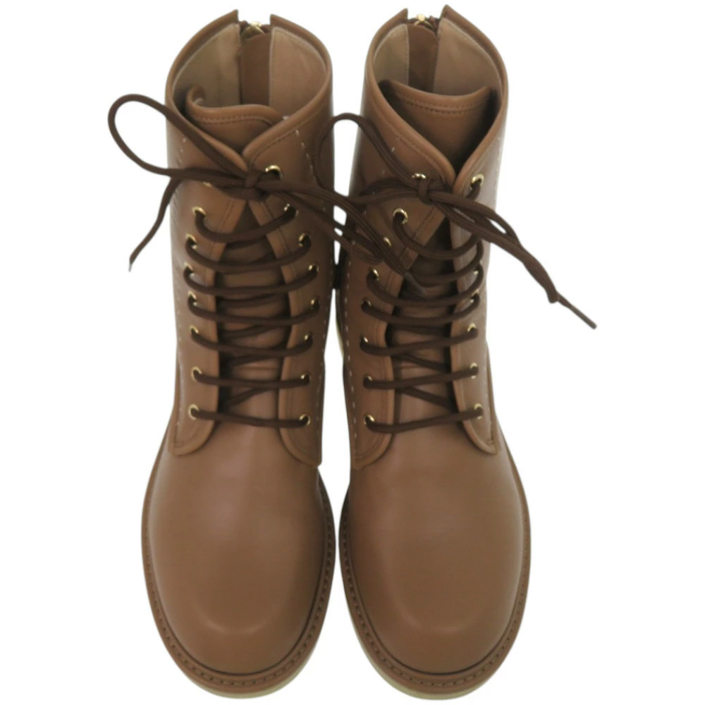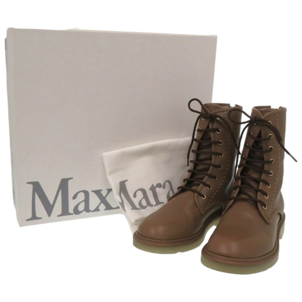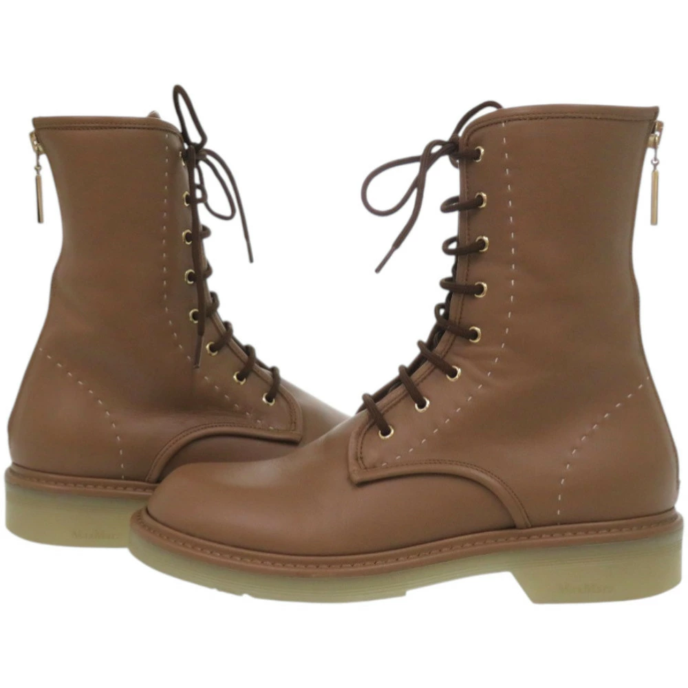 美品 マックスマーラ ブーツ カーフ ヘーゼルナッツブラウン 茶 アンクルブーツ 1000【中古】MAX MARA
