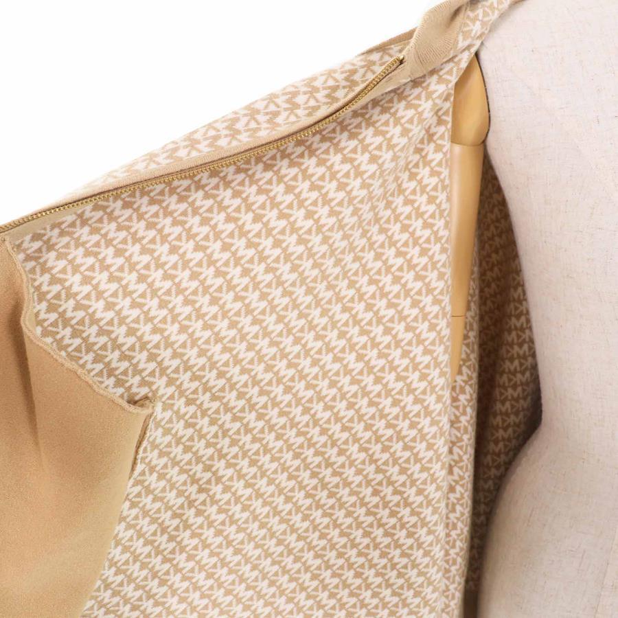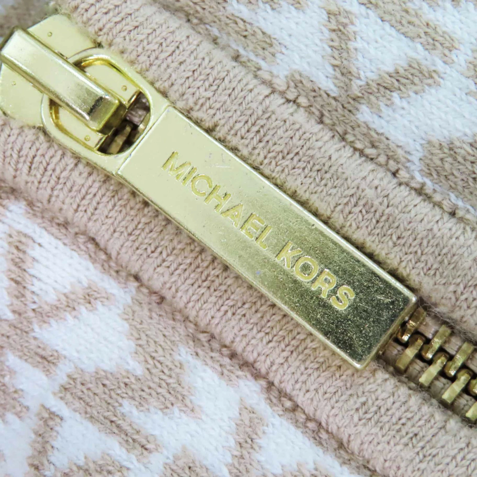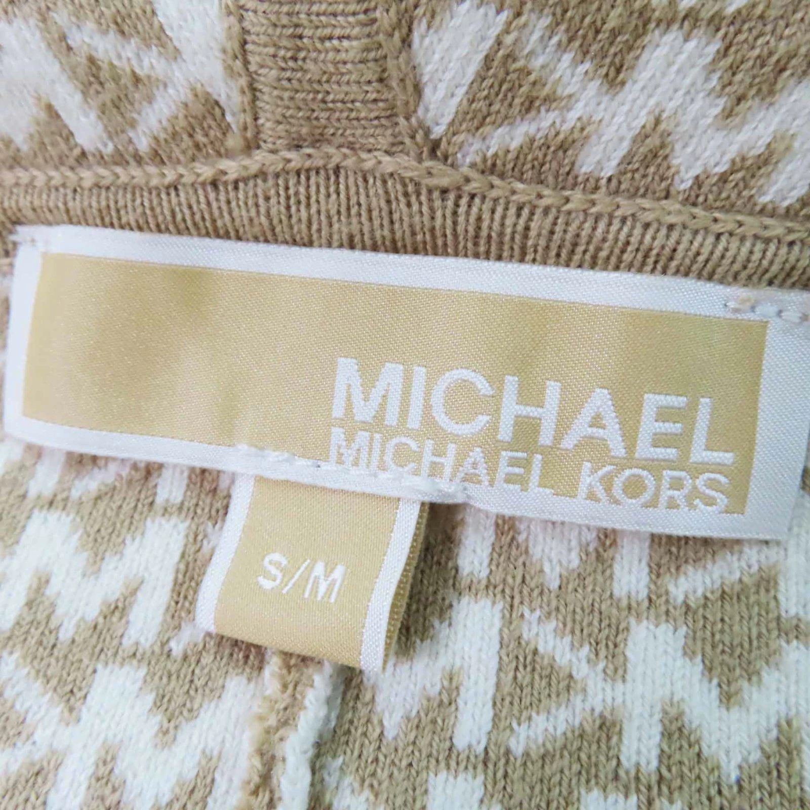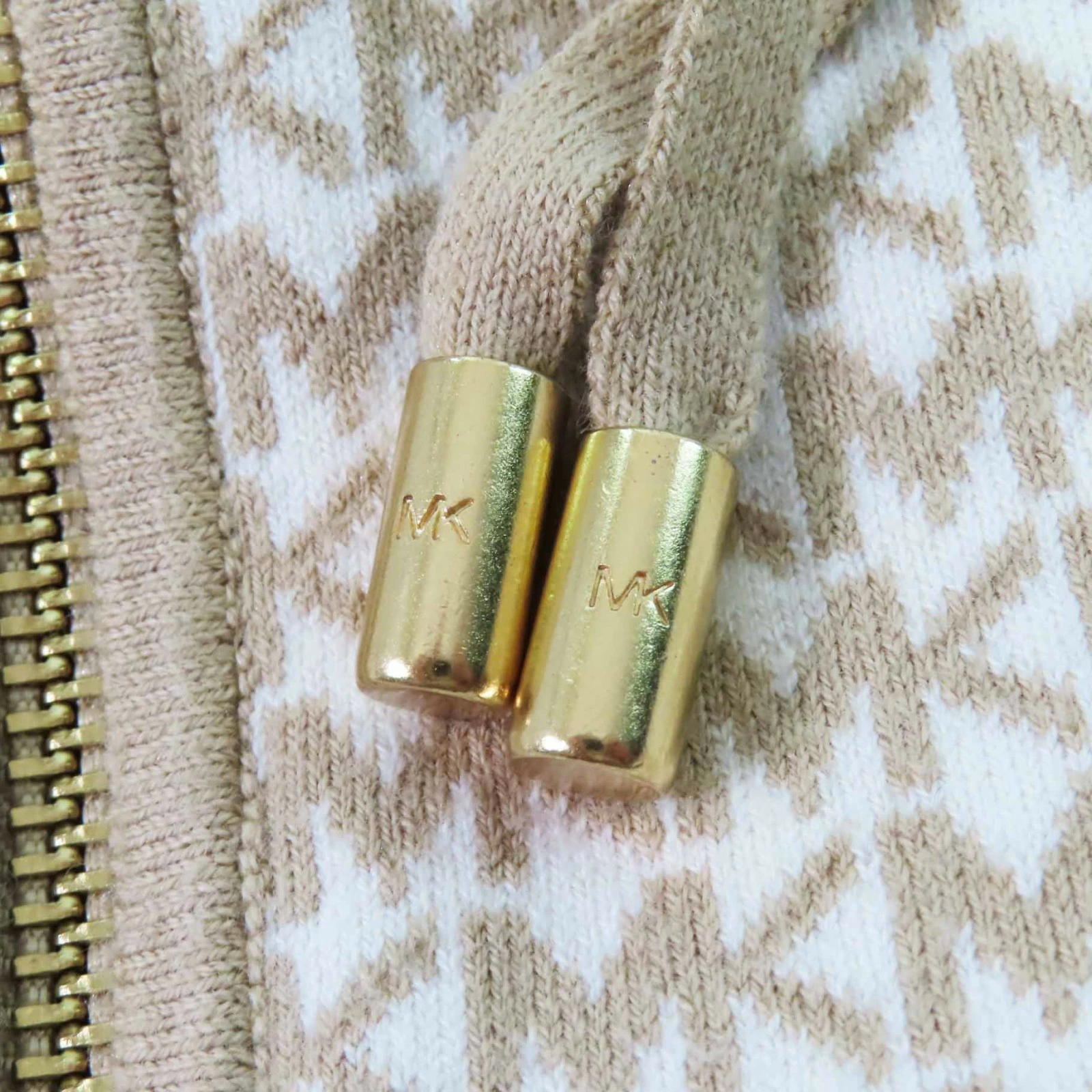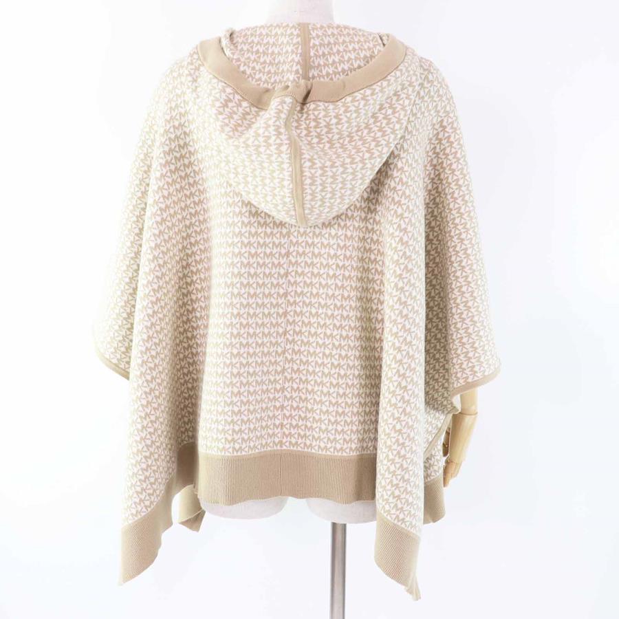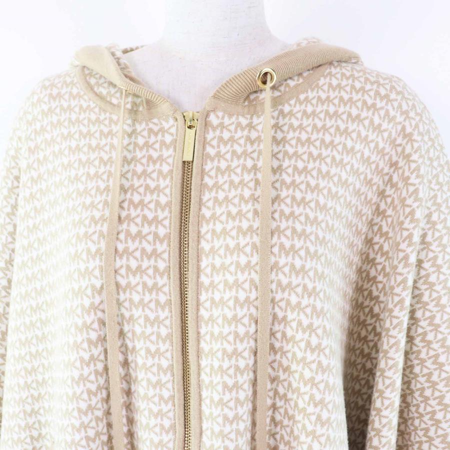 Excellent condition Michael Kors JF160924 GM MK Signature Hooded Zip-Up Knit Poncho in Beige and White, Sizes S/M, Authentic Women's [Pre-owned]