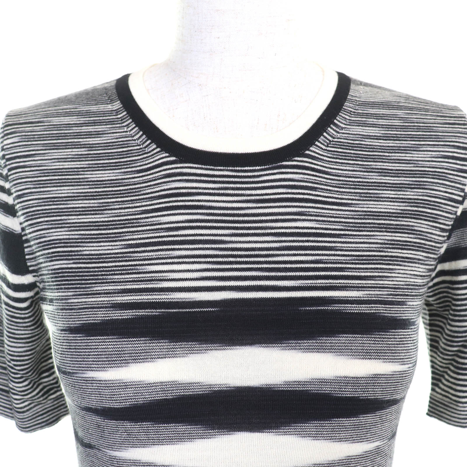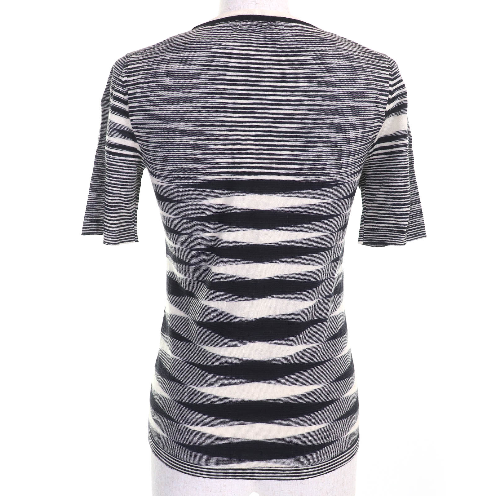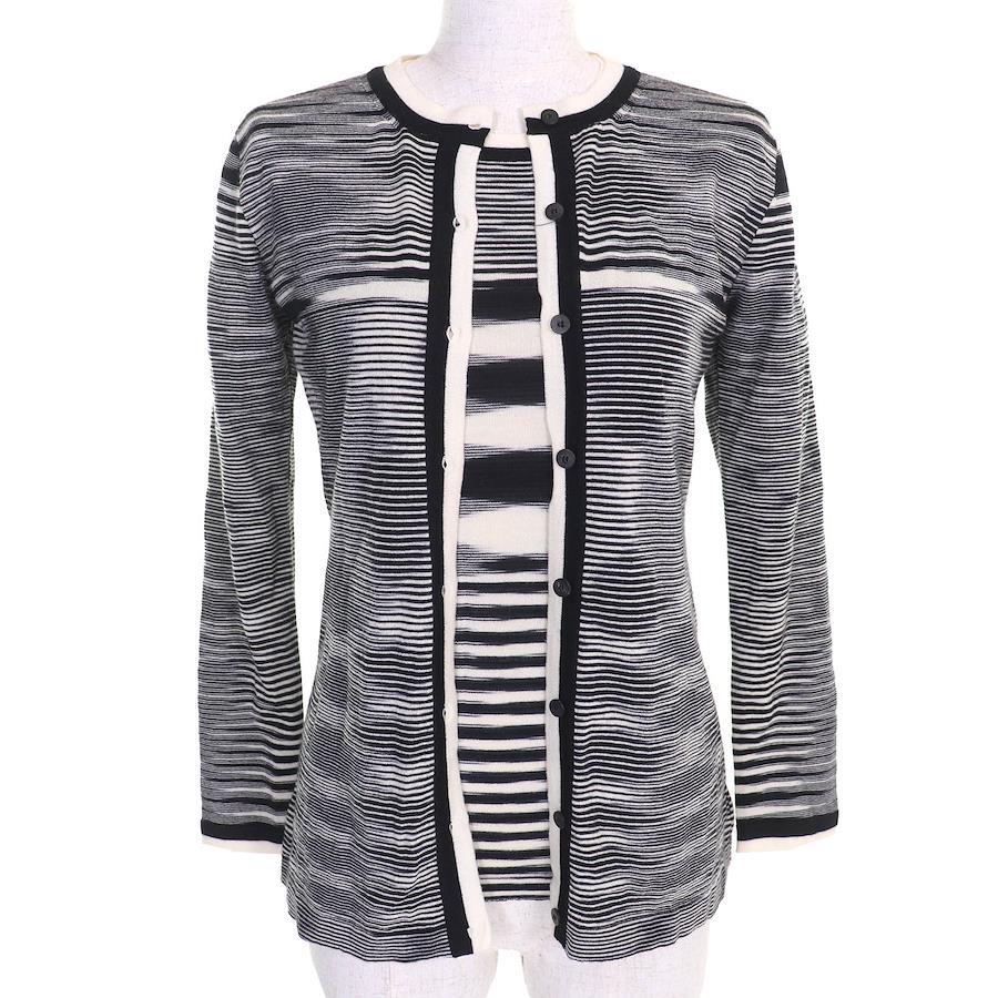 Excellent condition: Missoni 100% wool multi-border knit cardigan, short-sleeved top, black and white, size 42/40, made in Italy, authentic, women's [pre-owned]