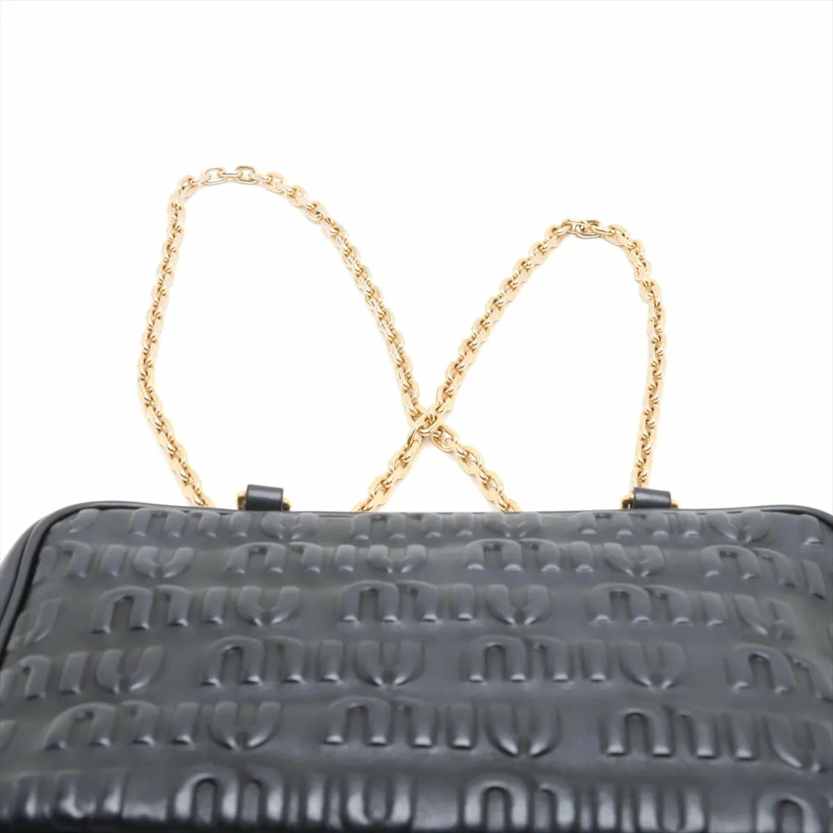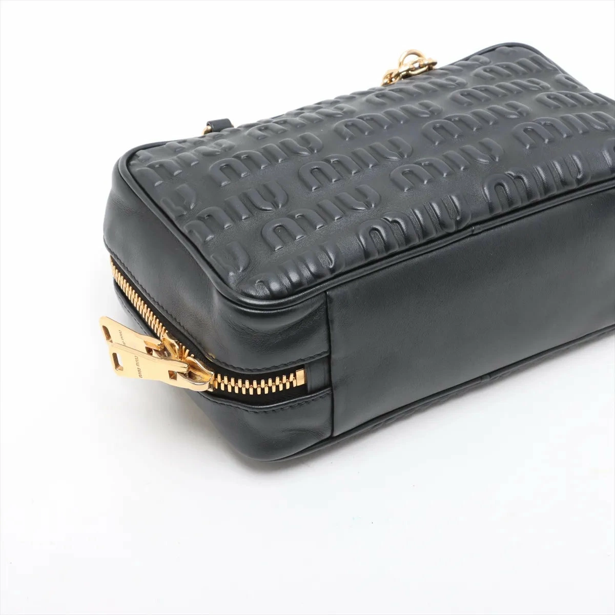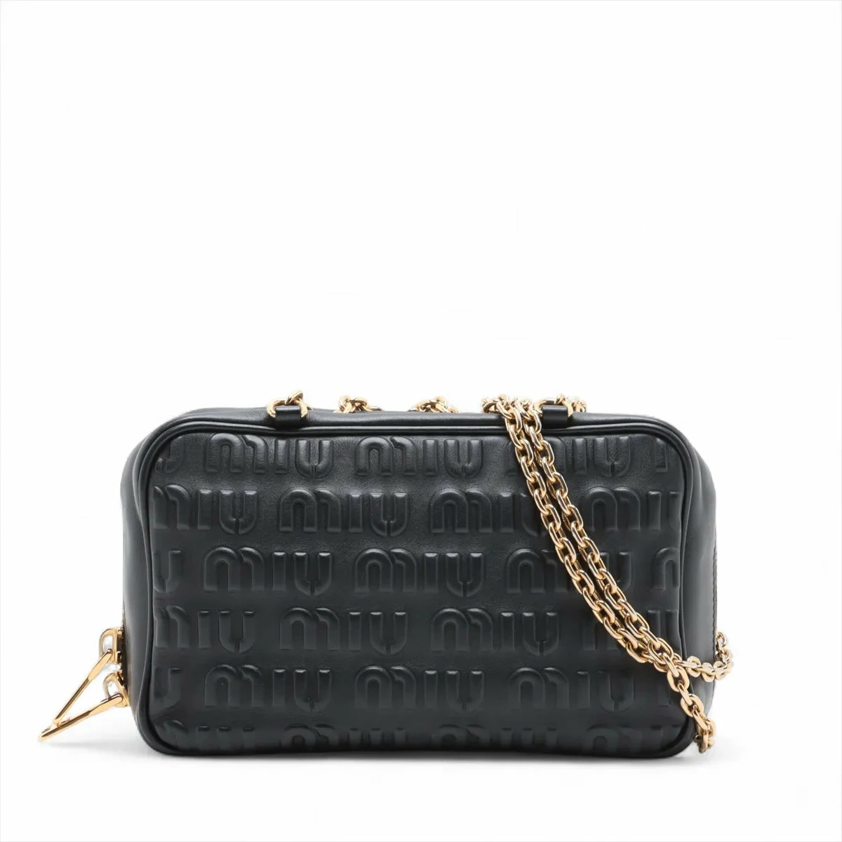 Excellent condition Miu Miu embossed logo leather shoulder bag with hand chain, genuine leather, black, women's MCM DB50-5