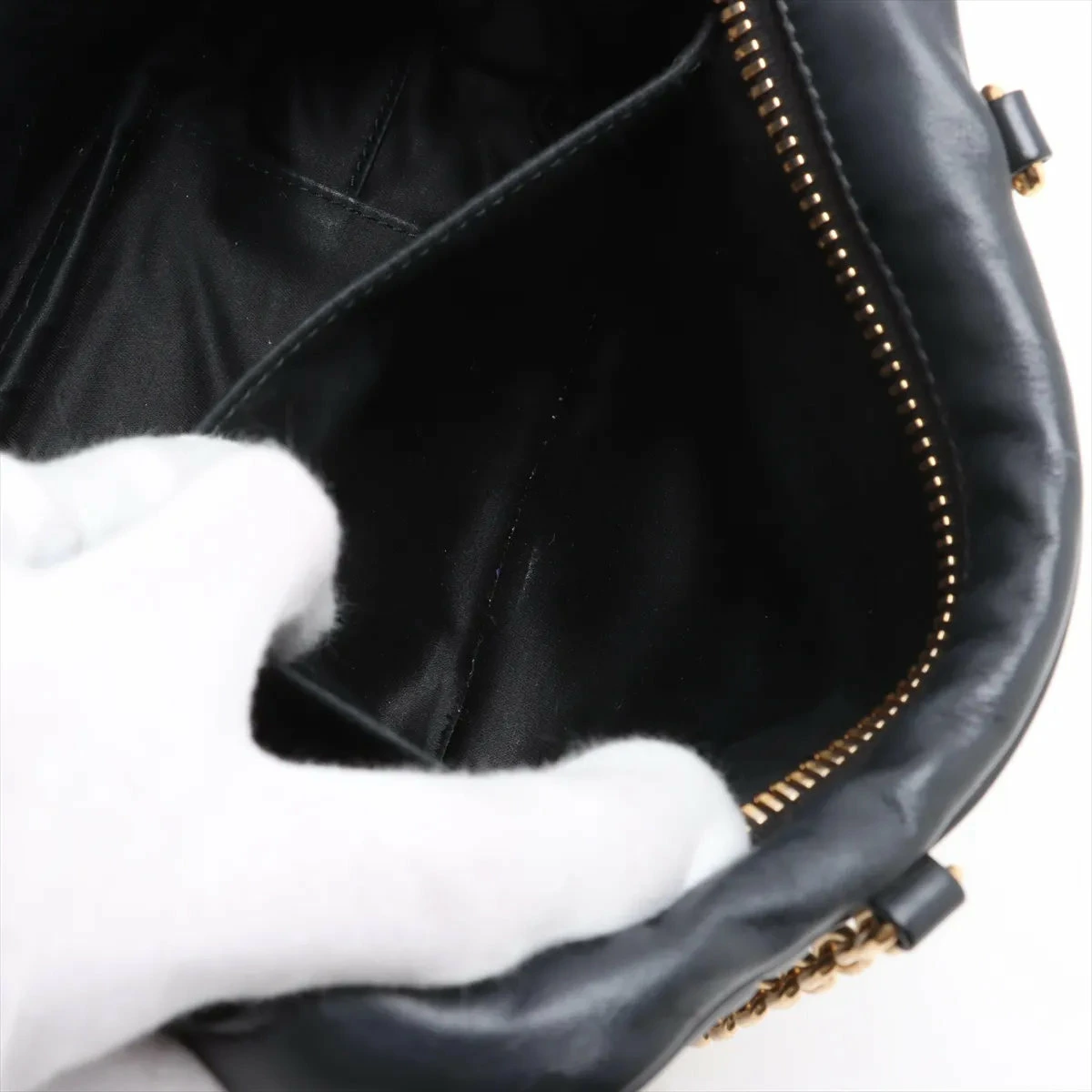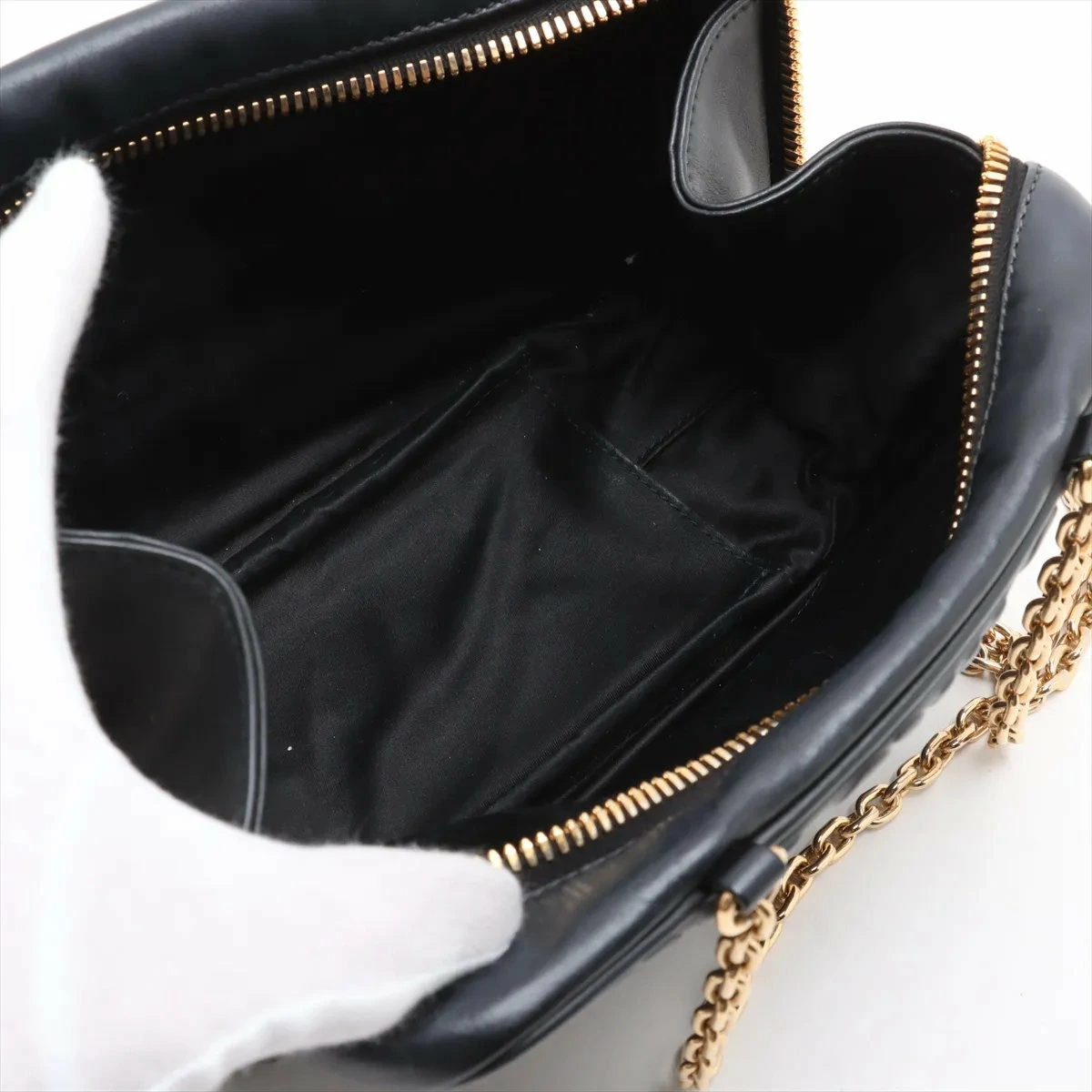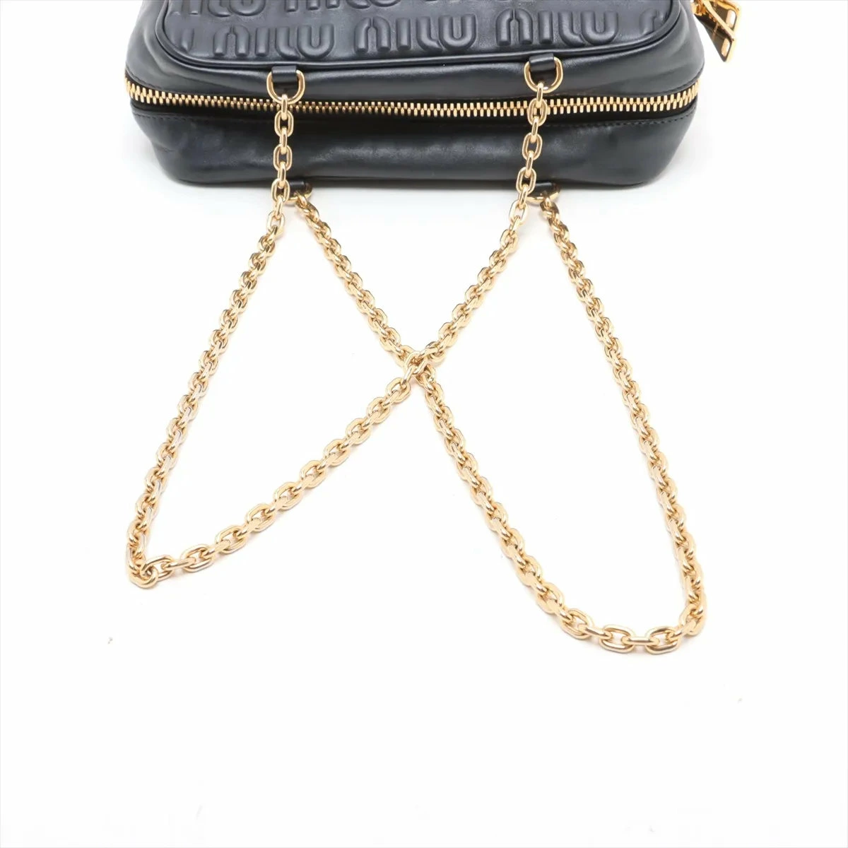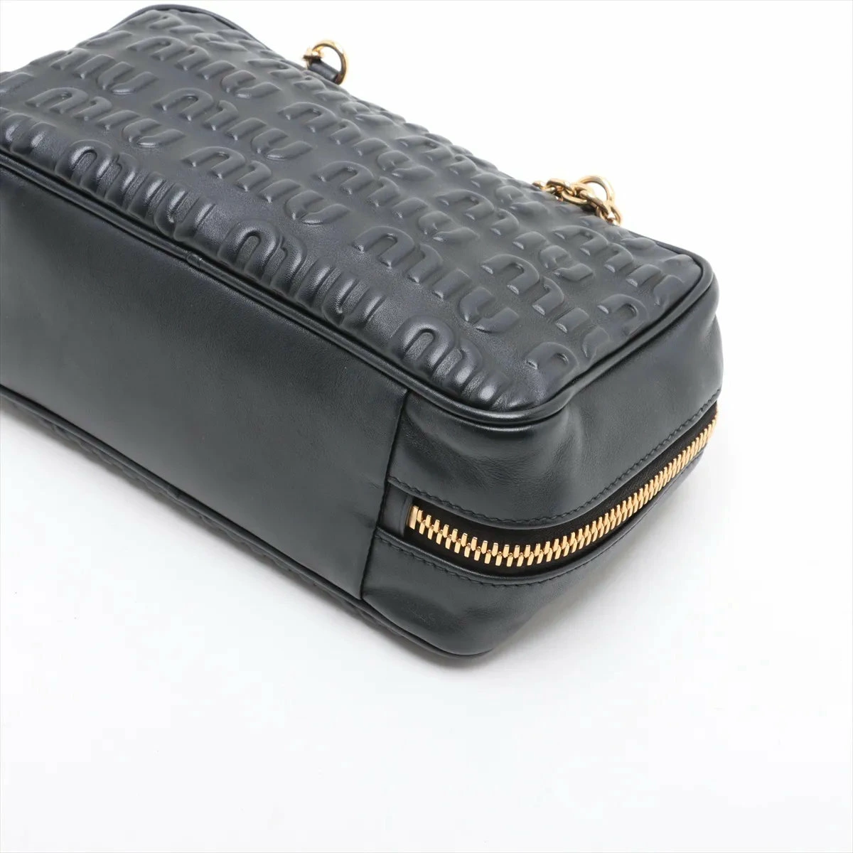 Excellent condition Miu Miu embossed logo leather shoulder bag with hand chain, genuine leather, black, women's MCM DB50-5