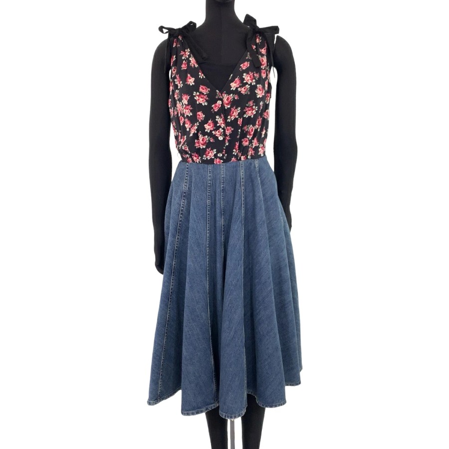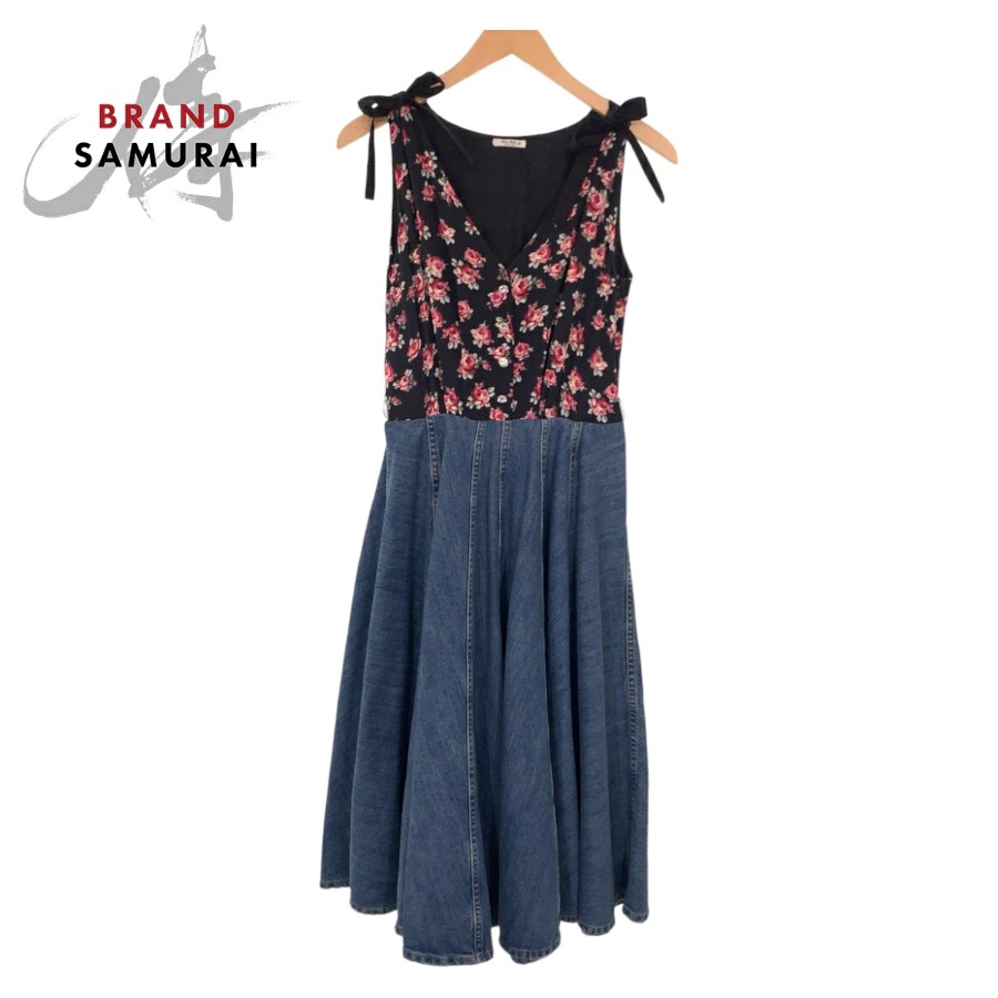 Excellent condition MIUMIU floral rhinestone dress, size 36, black cotton/denim dress, women's, 601846 [Used]