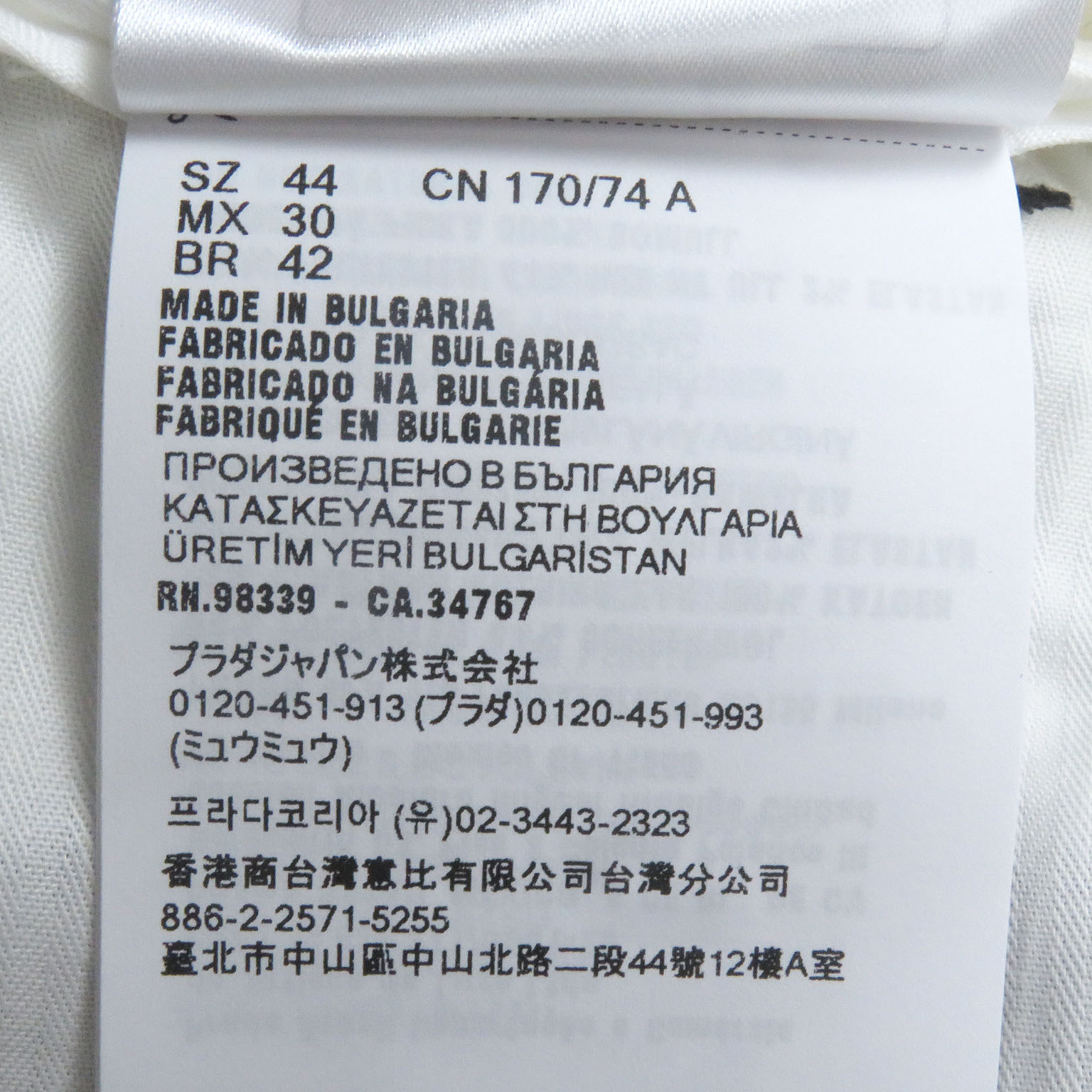| 素材 (material) | 表地:ポリエステル54% :バージンウール44% :エラスタン2% 裏地:コットン100% | ||||||||||||||||