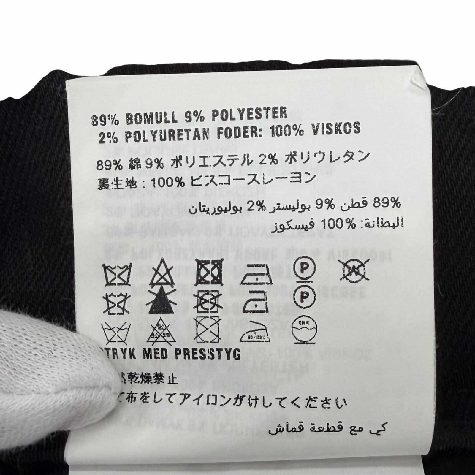 | 素材 (material) | 表地:コットン89% :ポリエステル9% :ポリウレタン2% 裏地:ビスコース(レーヨン)100% | ||||||||||||||||