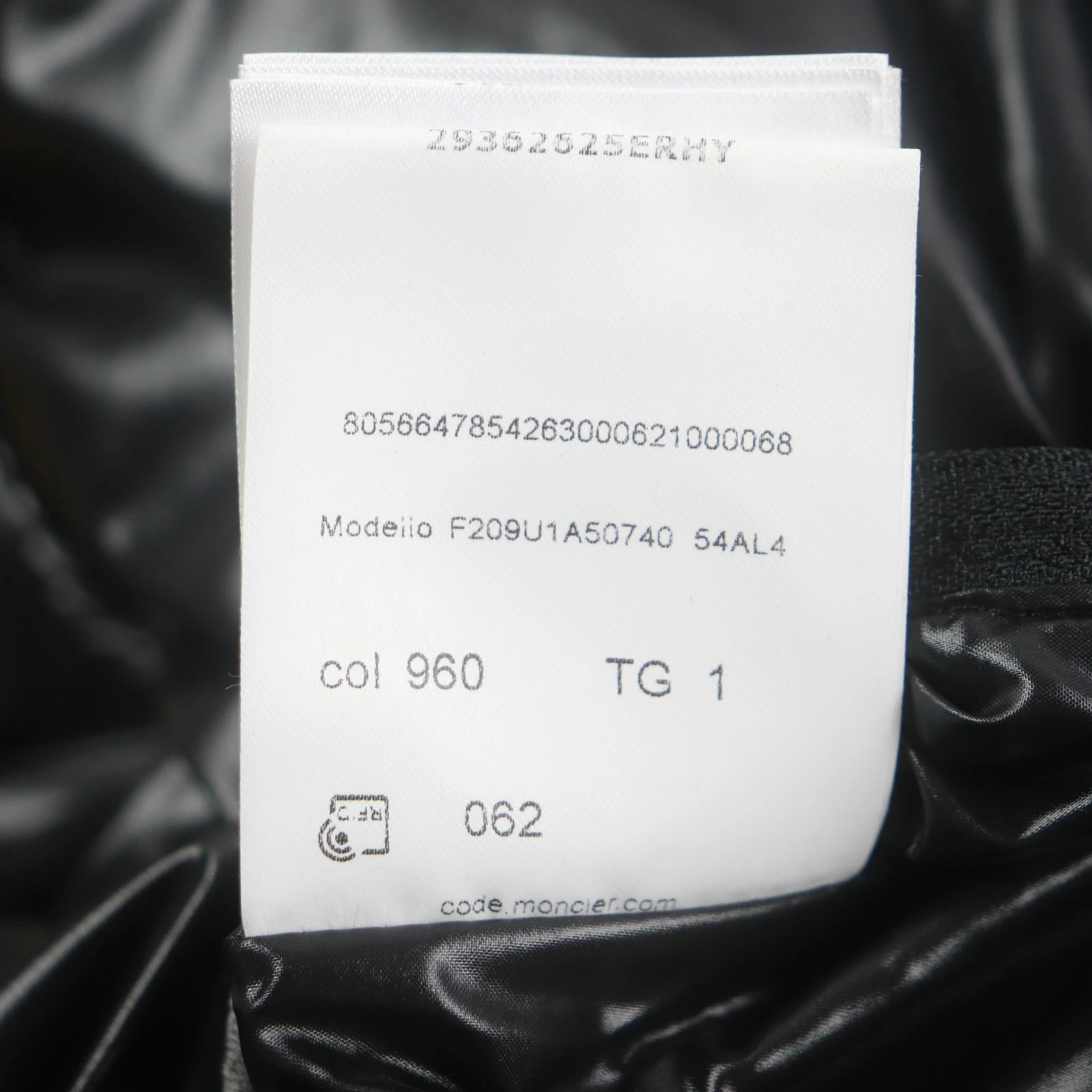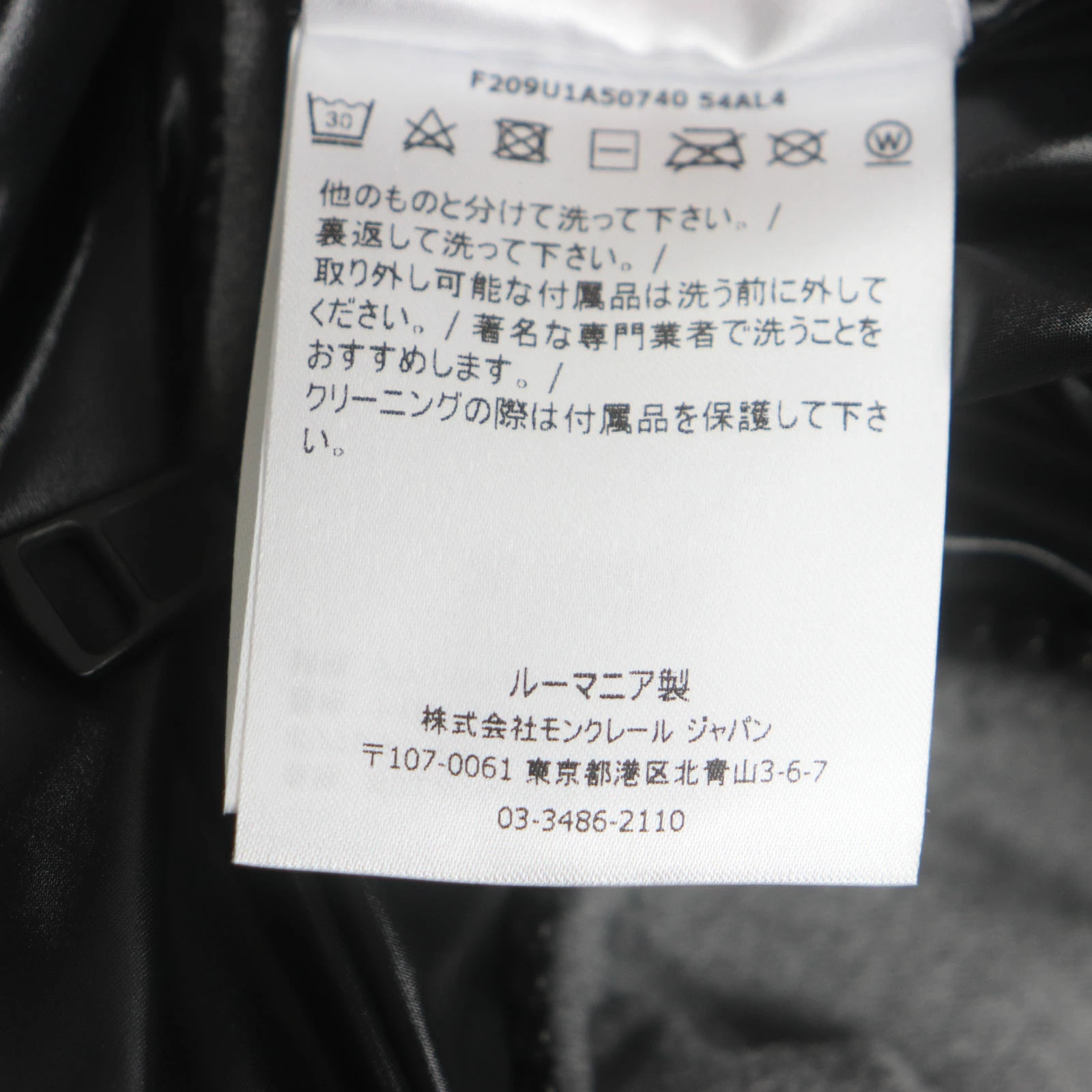 | 素材 (material) | 表地:ポリエステル67% :レーヨン29% :ポリウレタン4% 裏地:ナイロン100% 中綿:ダウン90% :フェザー10% | ||||||||||||||||