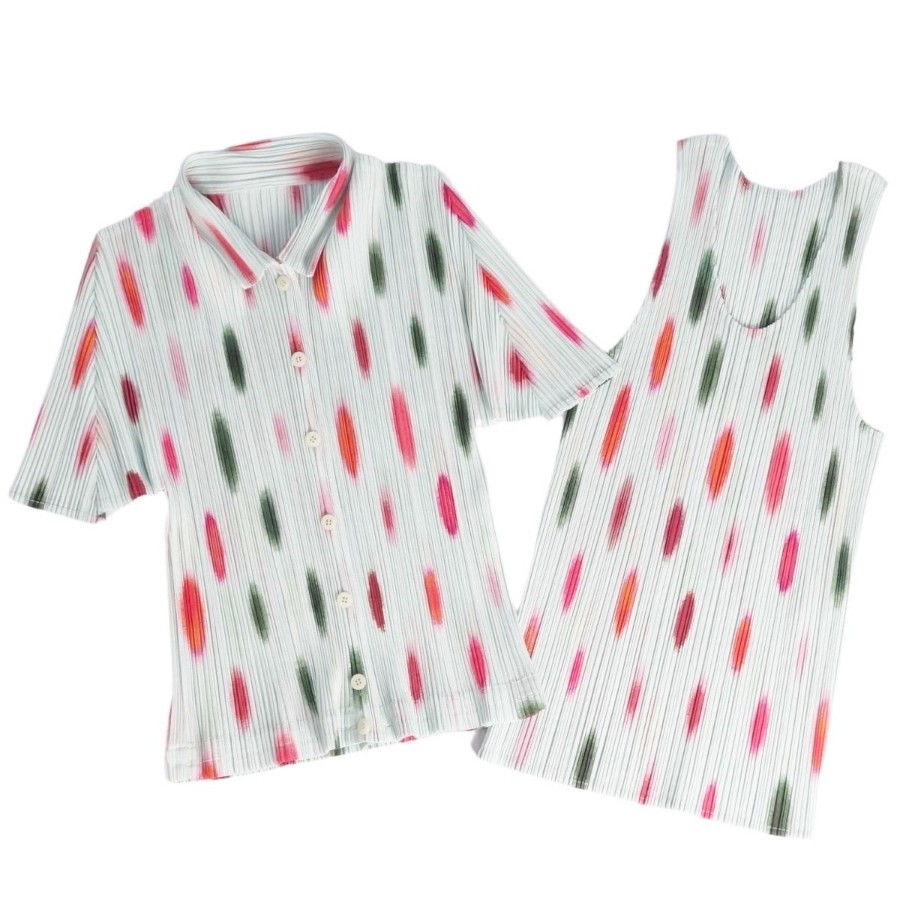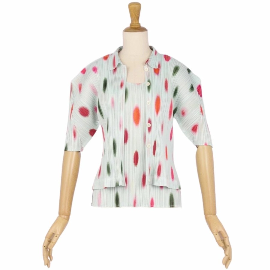 プリーツプリーズ イッセイミヤケ PLEATS PLEASE アンサンブル シャツ 半袖 ショートスリーブ タンクトップ 総柄 プリーツ トップス レディース マルチカラー サイズ3(L相当)