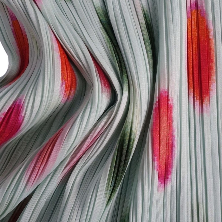 ・1本の糸から素材を開発し、服の形に縫製した後にプリーツをかける独自の手法によるプロダクト、ISSEY MIYAKE『PLEATS PLEASE』のアンサンブルです♪