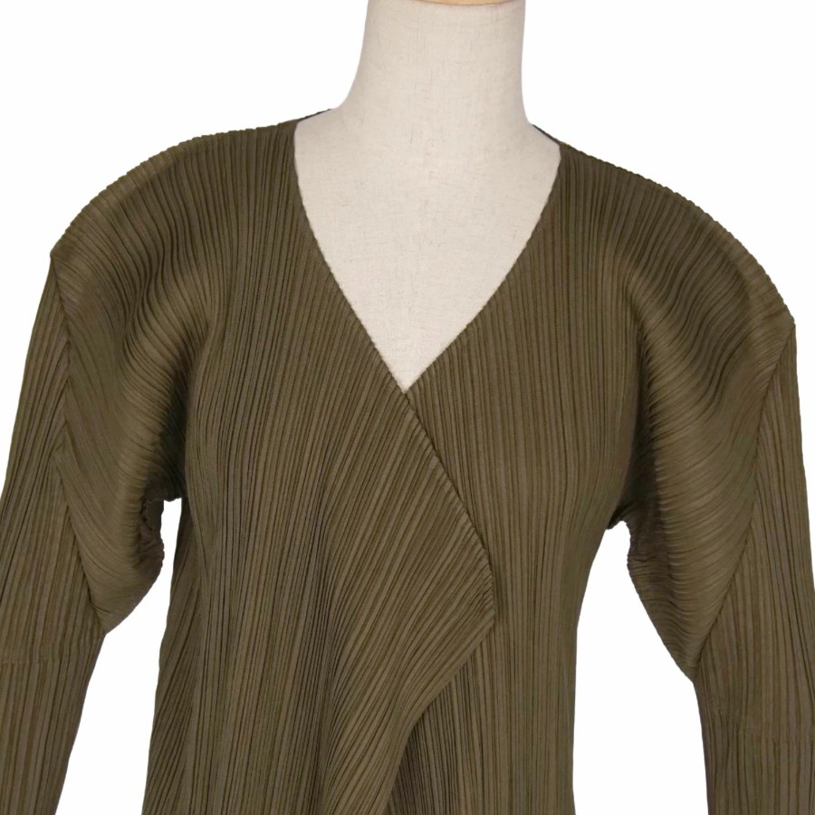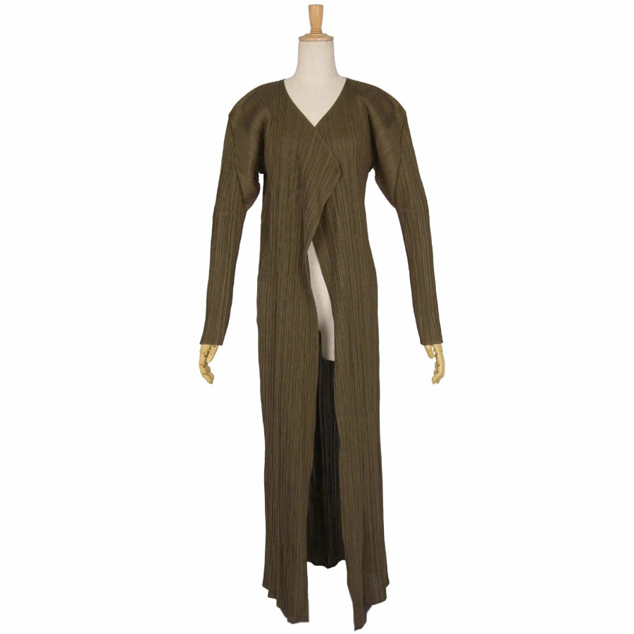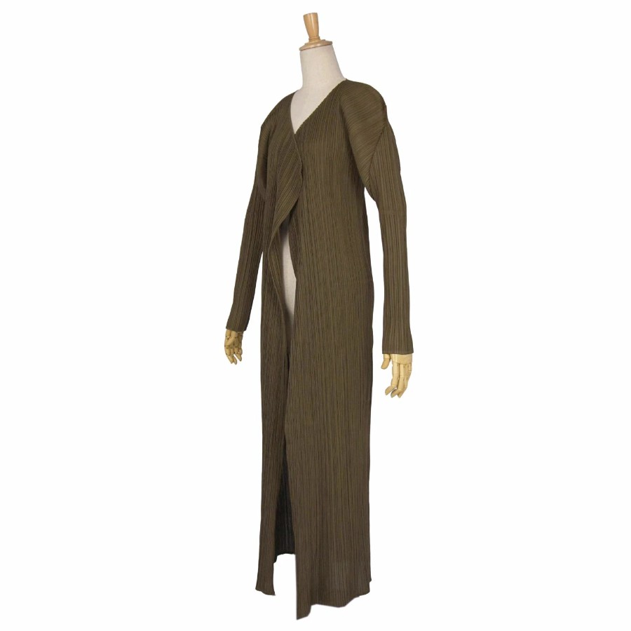 プリーツプリーズ イッセイミヤケ PLEATS PLEASE ワンピース カーディガン ロングカーディガン ボタンレス プリーツ トップス レディース カーキグリーン サイズ4(XL相当)
