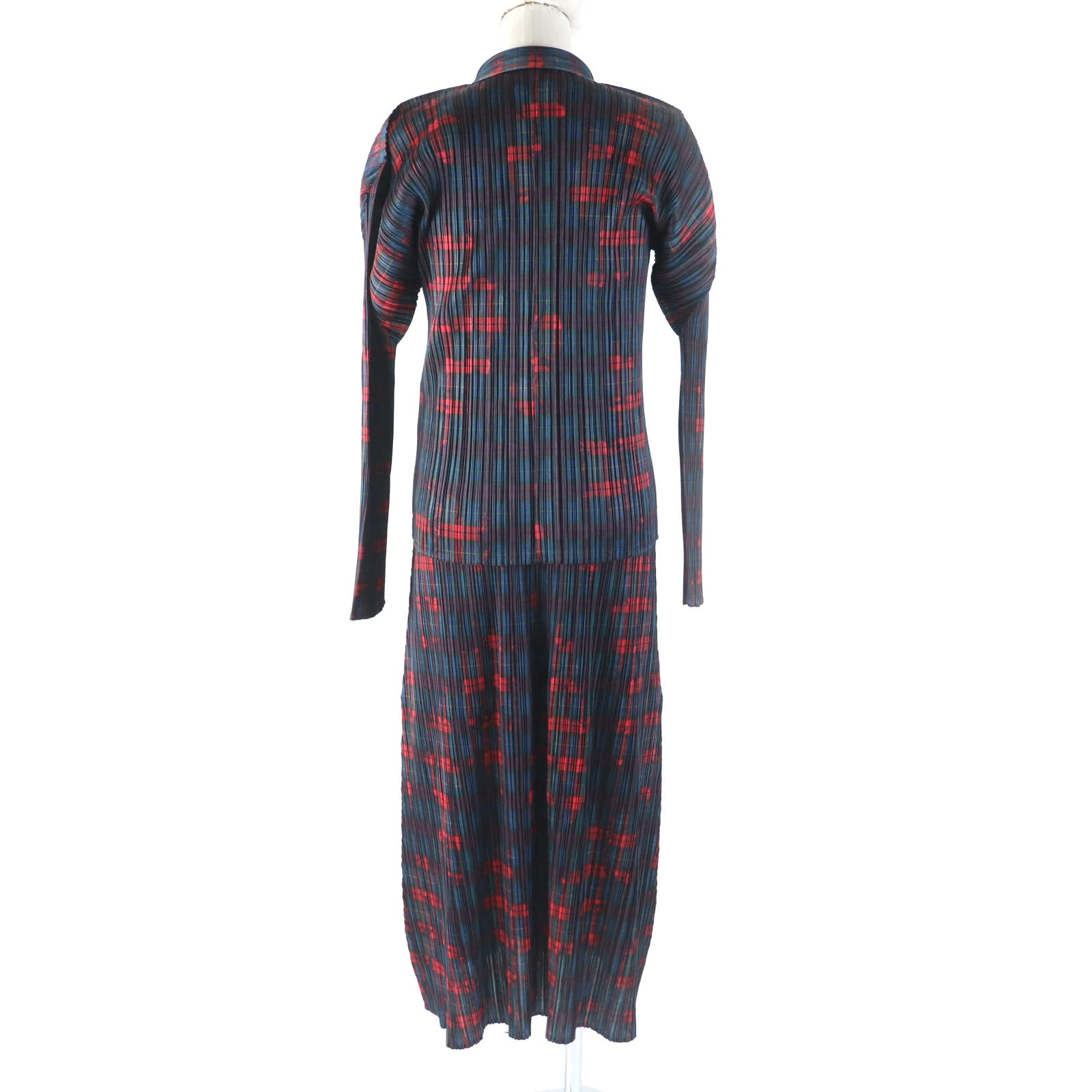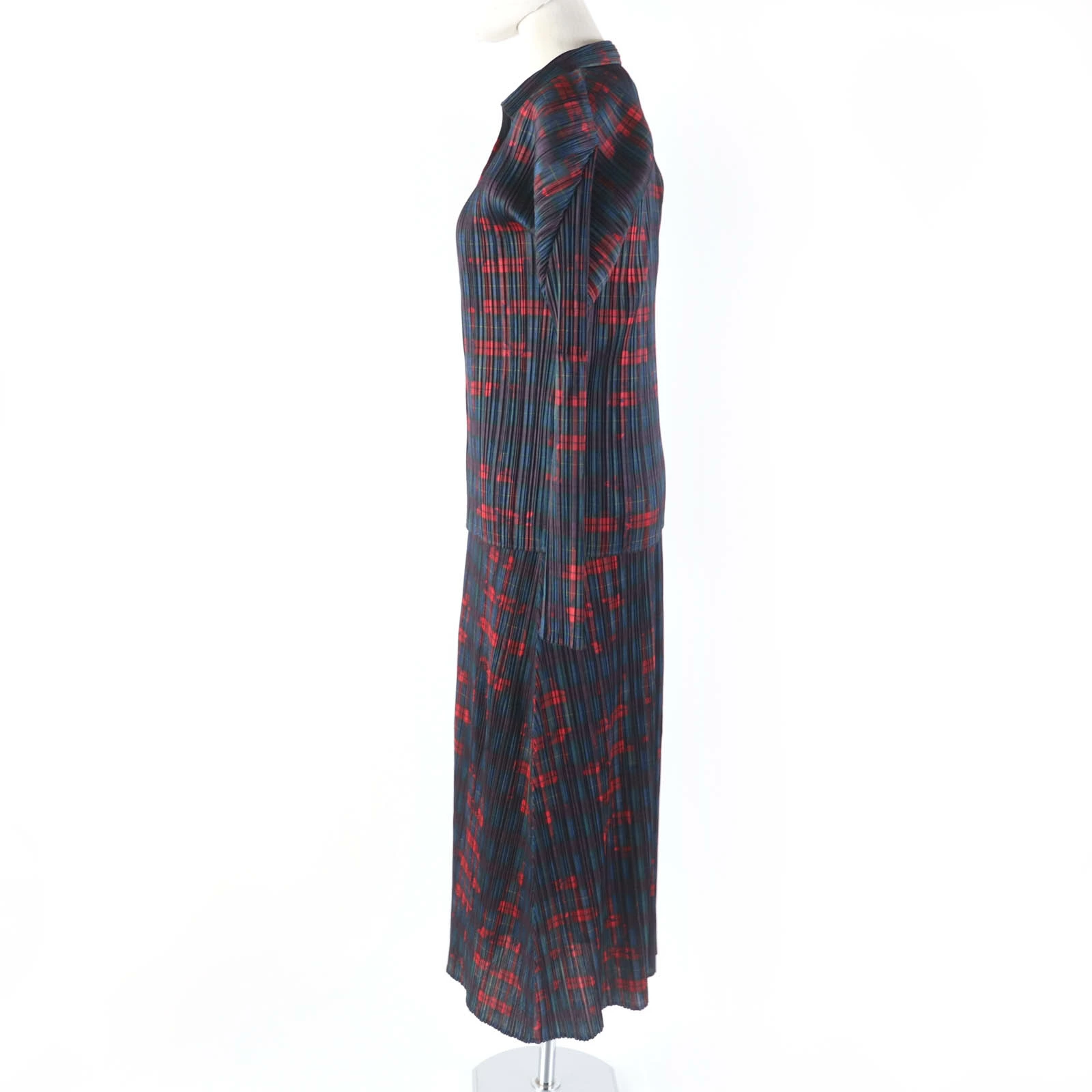 Excellent condition PLEATS PLEASE Issey Miyake PP64-JJ443/PP64-JH443 Check Floral Print Long Sleeve Shirt + Sleeveless Dress Set, Multi, Size 3/2, Made in Japan, Authentic, Women's [Pre-owned]