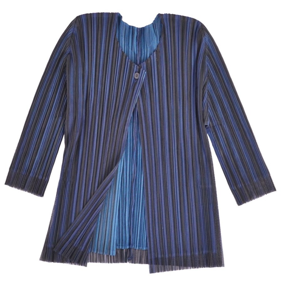 ・1本の糸から素材を開発し、服の形に縫製した後にプリーツをかける独自の手法によるプロダクト、ISSEY MIYAKE『PLEATS PLEASE』のカーディガンです♪