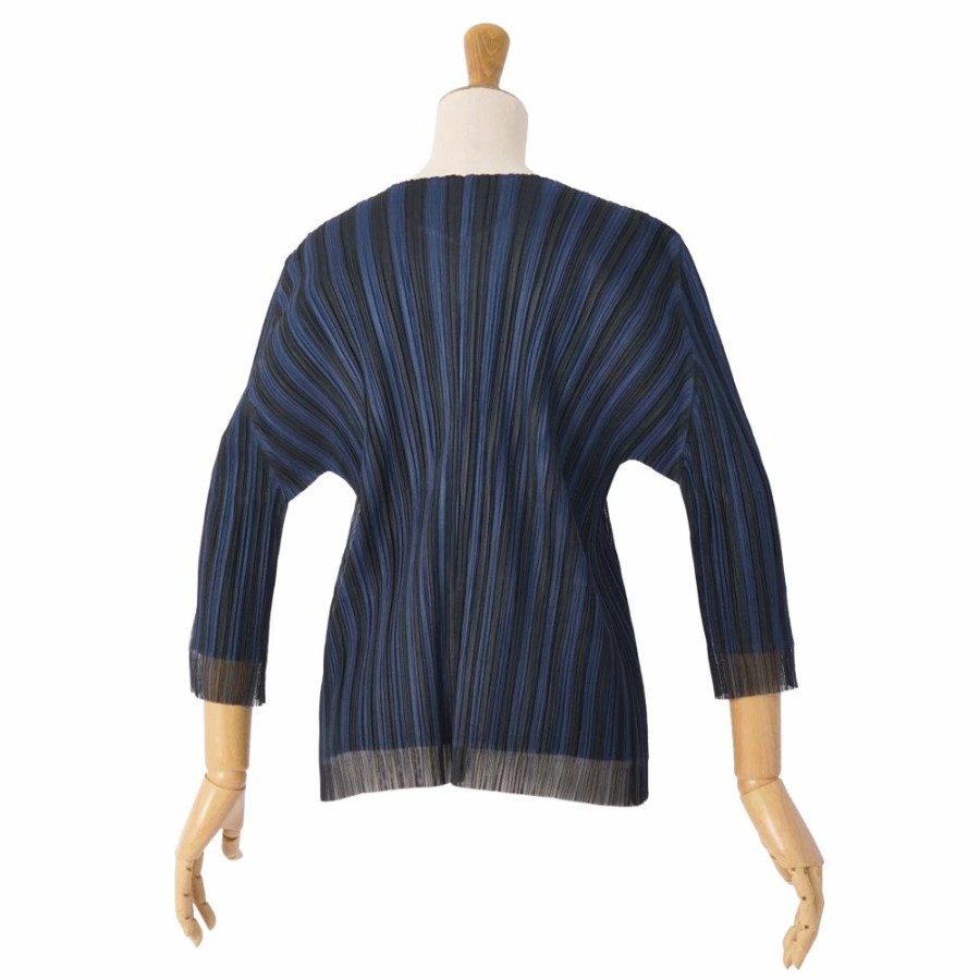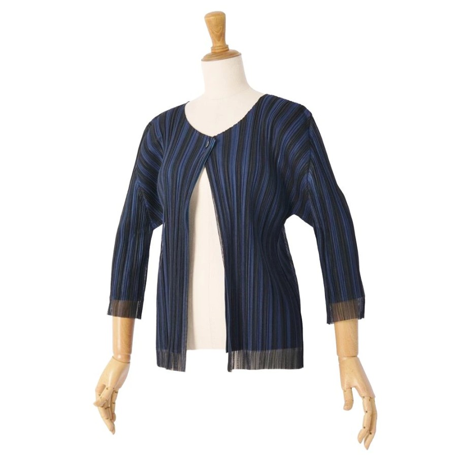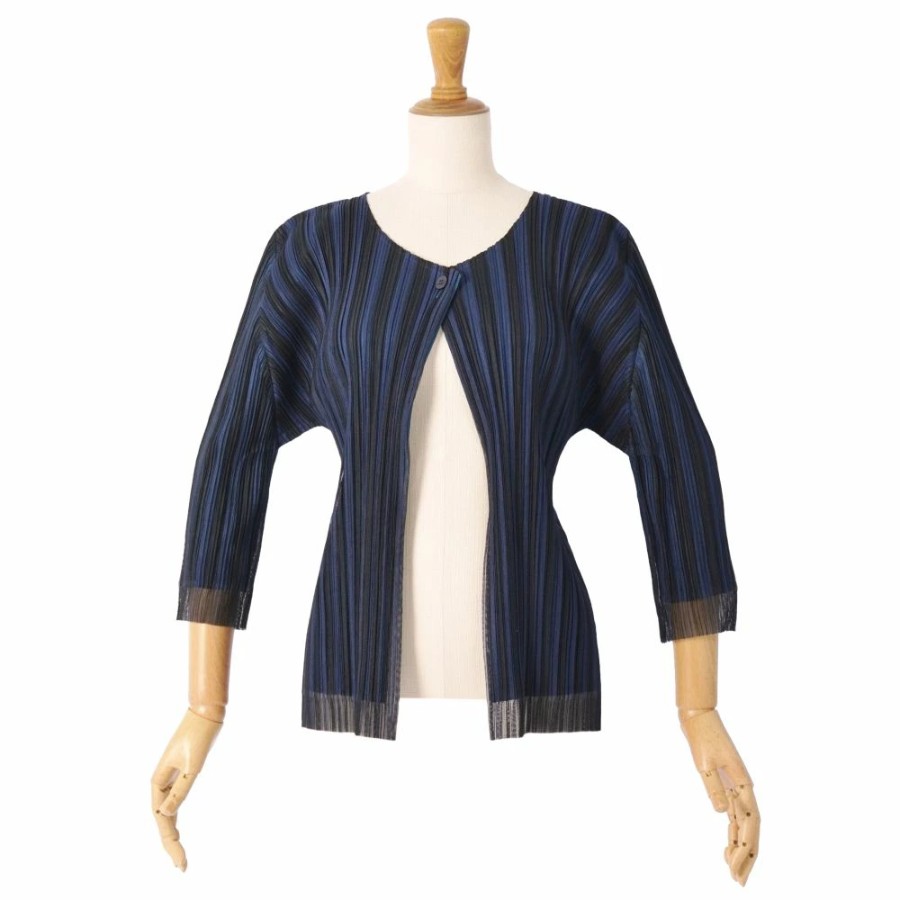 プリーツプリーズ イッセイミヤケ PLEATS PLEASE カーディガン 七分袖 トップス レディース ネイビー サイズ3(L相当)