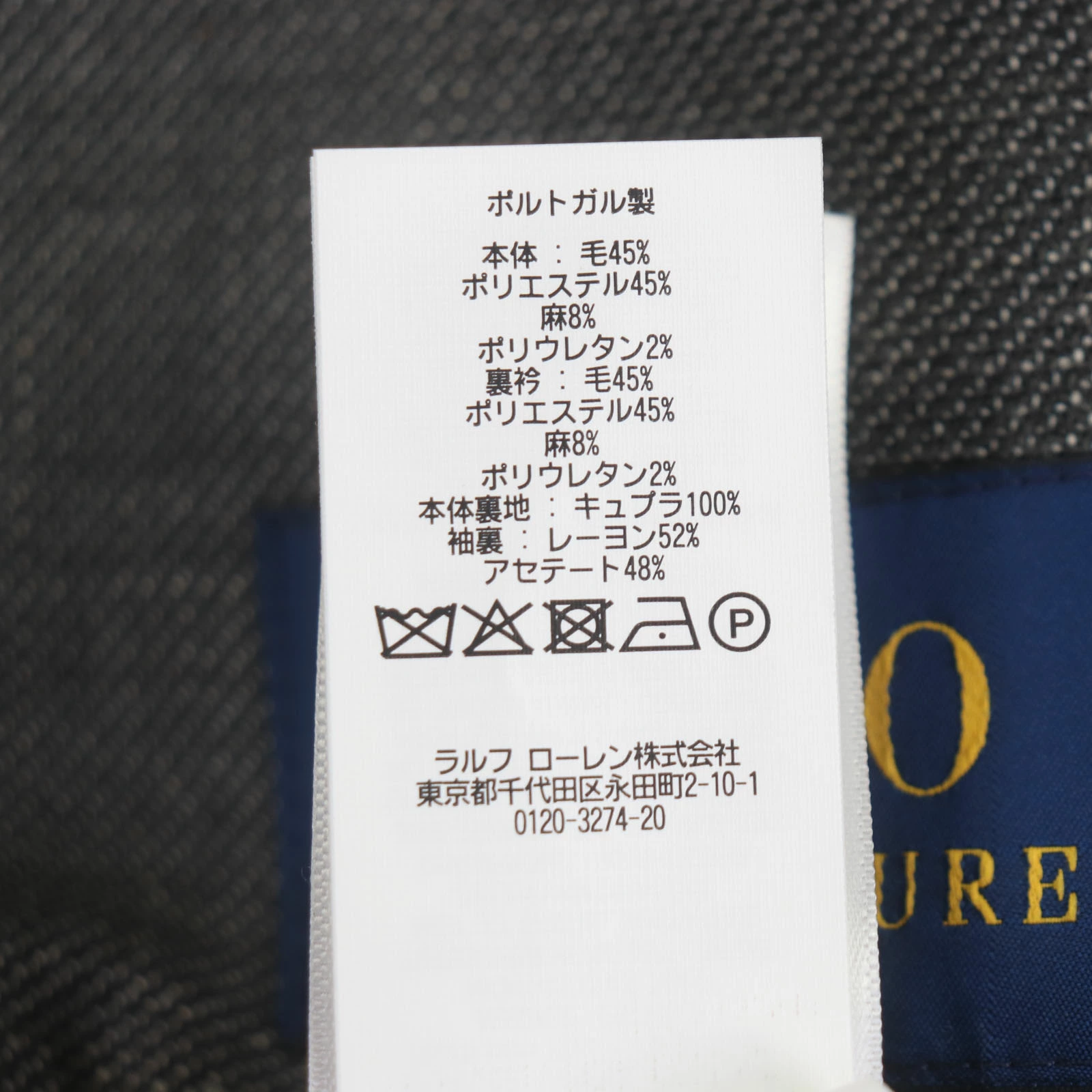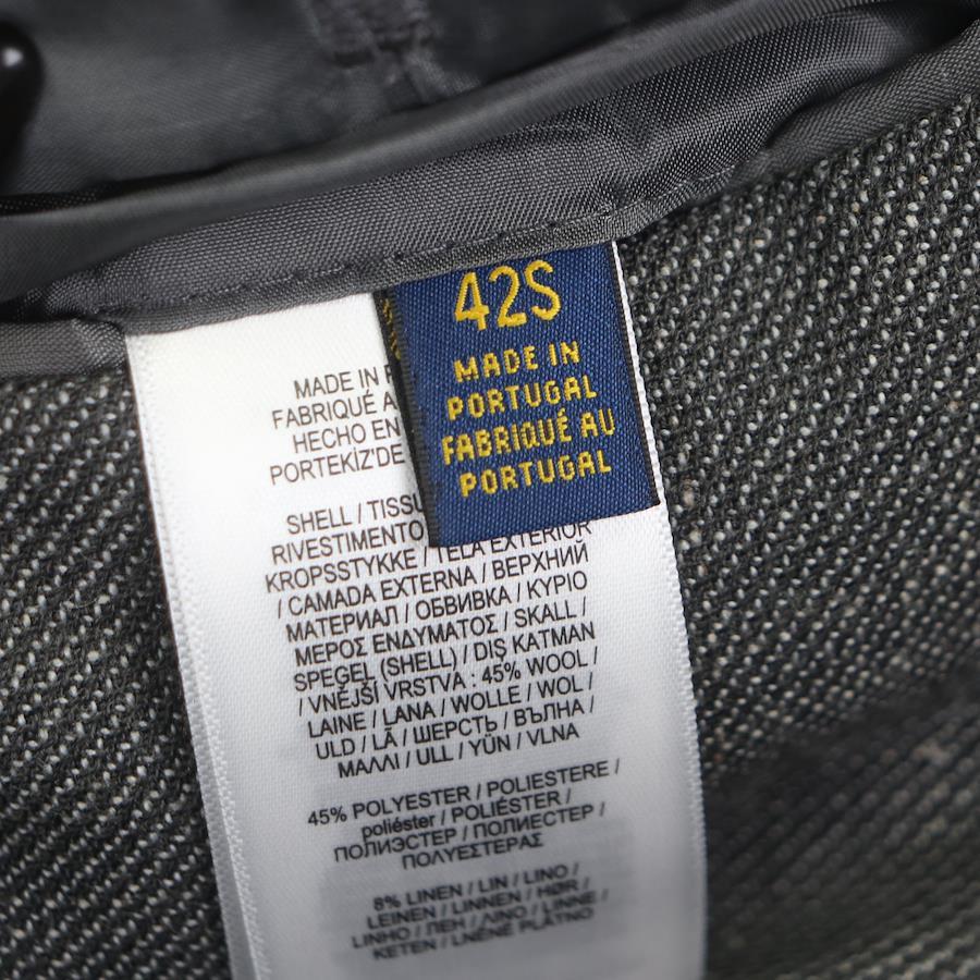 | 素材 (material) | 本体:ウール45% :ポリエステル45% :リネン8% :ポリウレタン2% 裏地:キュプラ100% 袖裏地:レーヨン52% :アセテート48% | ||||||||||||||||