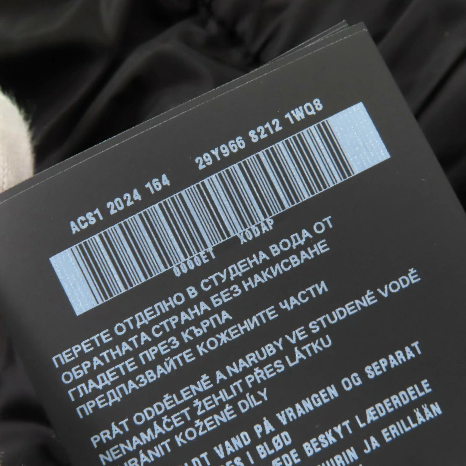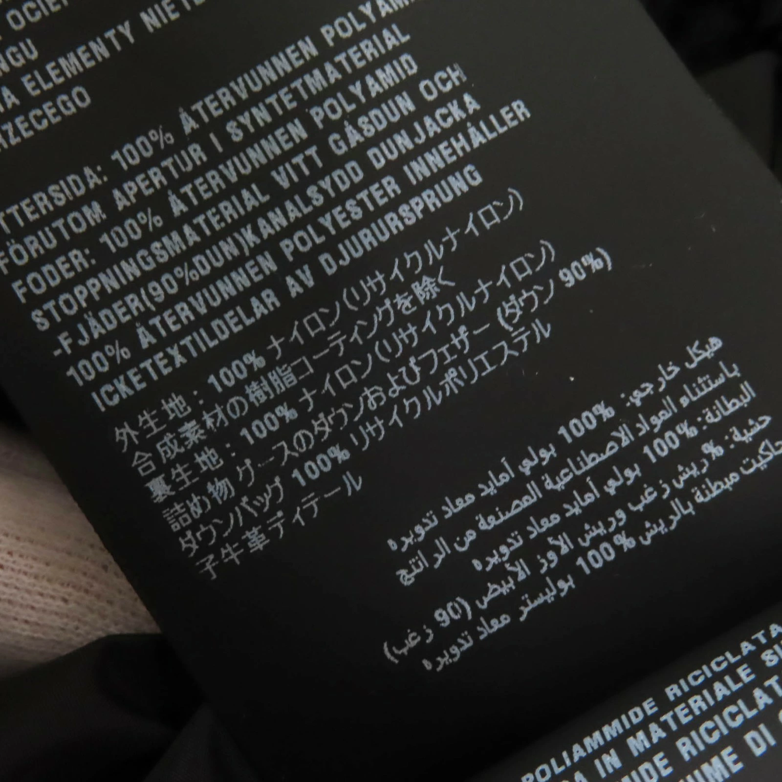 | 素材 (material) | 本体:リサイクルナイロン100% 中綿:ダウン90% :フェザー10% 裏地:リサイクルナイロン100% 皮革部分:子牛革 | ||||||||||||||||
