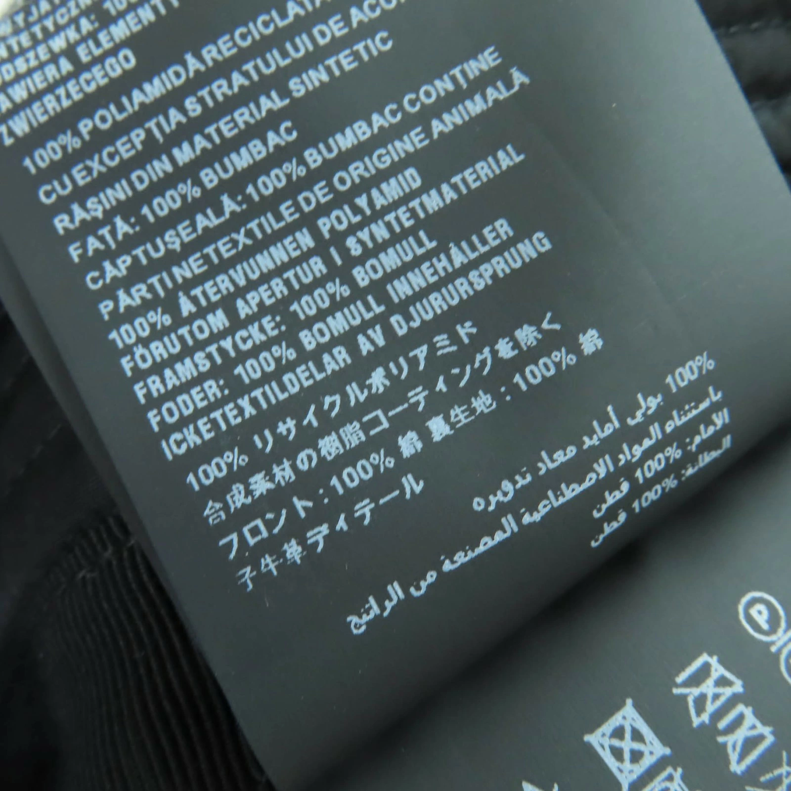 | 素材 (material) | 本体:ポリアミド100% 一部:コットン100% 裏地:コットン100% 一部:子牛革 | ||||||||||||||||
