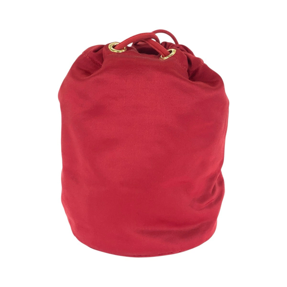 Excellent condition PRADA Prada logo embroidered red and gold hardware satin shoulder bag/pouch/drawstring pouch for women, item number 505911 (pre-owned)