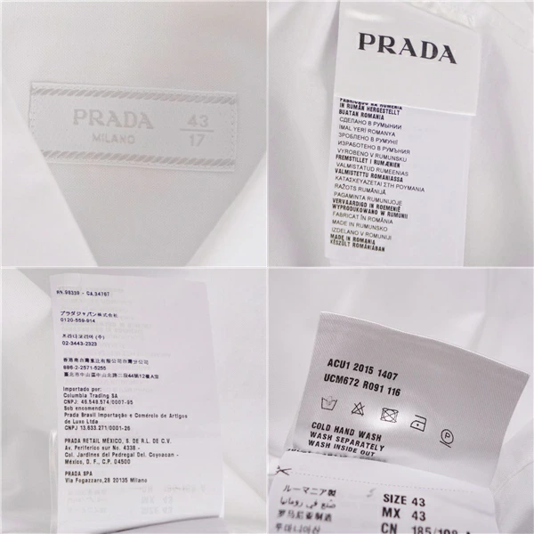 プラダ PRADA シャツ ロングスリーブ 長袖 コットン トップス メンズ ホワイト サイズ43/17
