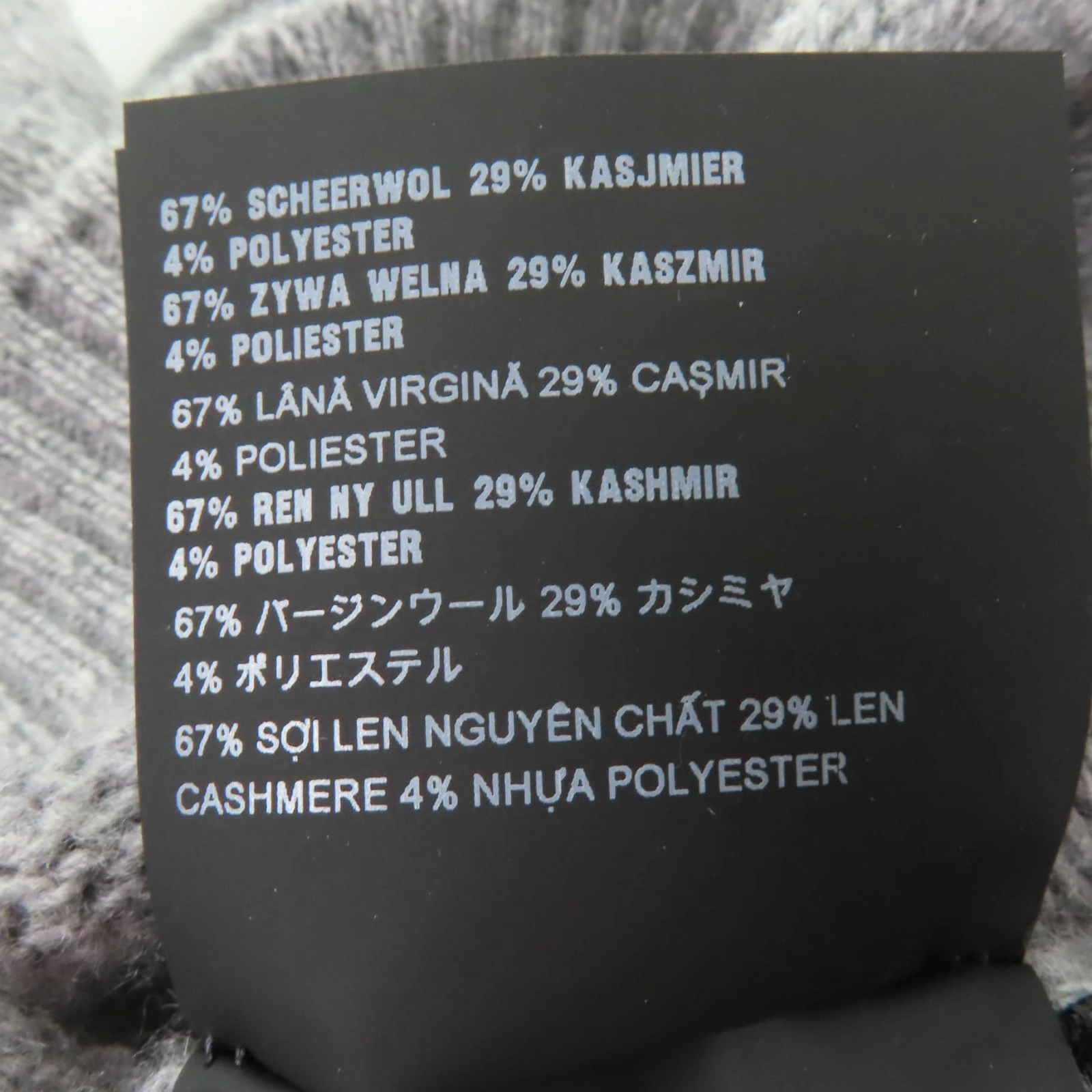| 素材 (material) | 本体:バージンウール67% :カシミヤ29% :ポリエステル4% | ||||||||||||||||