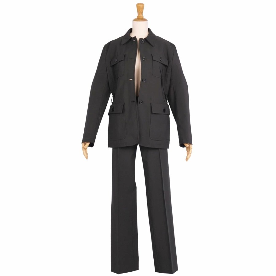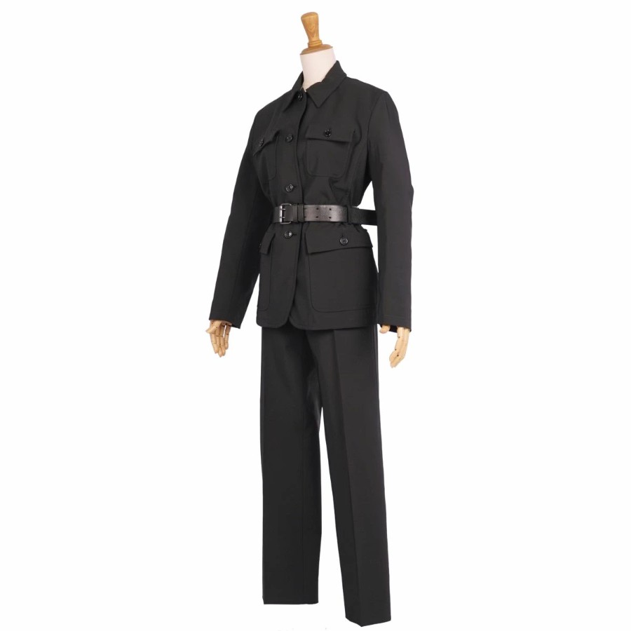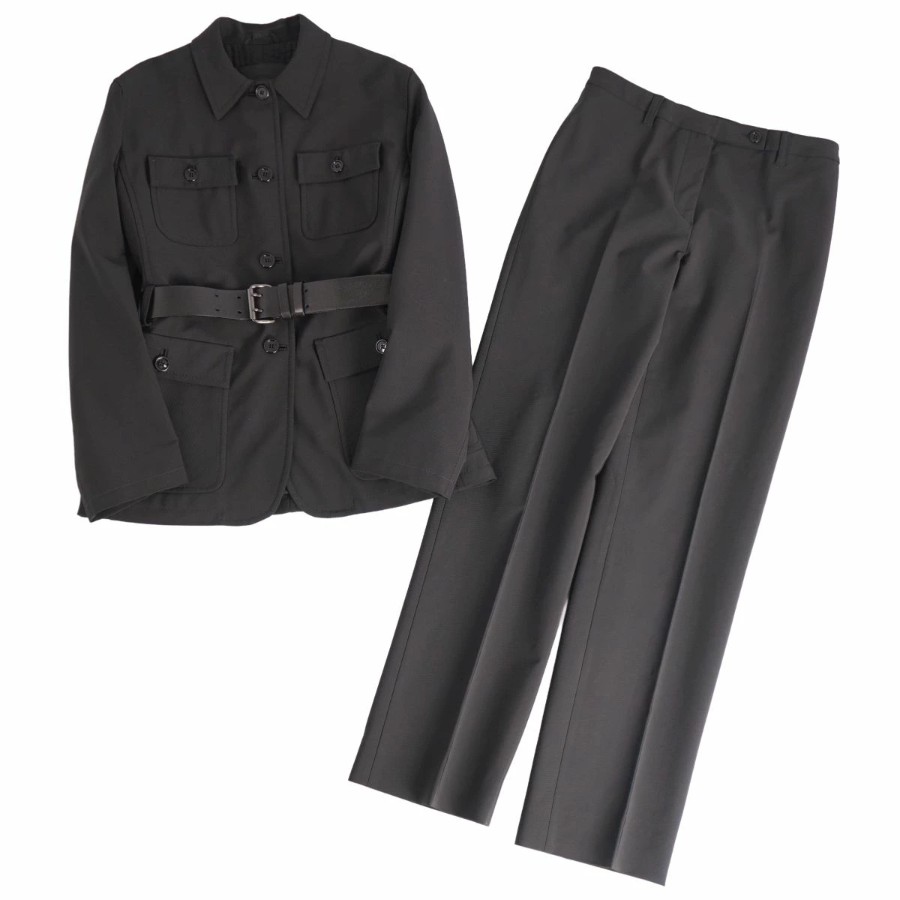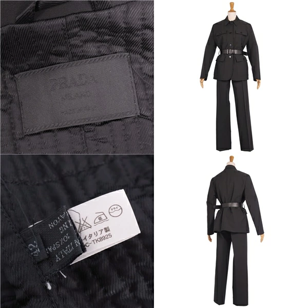 プラダ PRADA セットアップ パンツスーツ ポリエステル ジャケット パンツ レディース イタリア製 ブラック サイズ42(L相当)