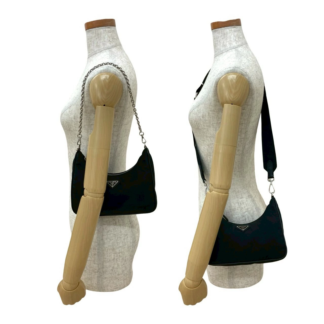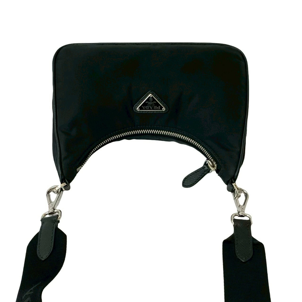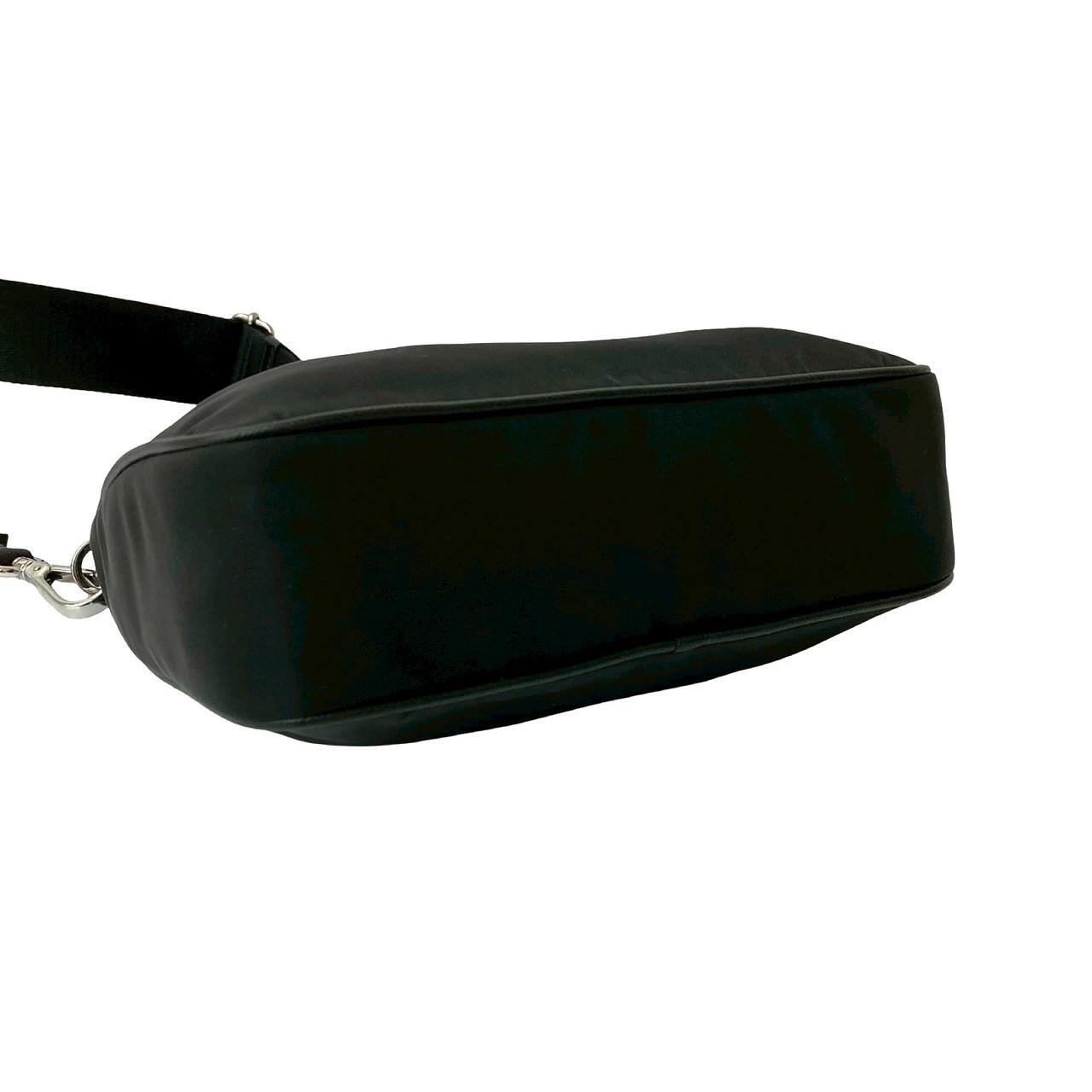 Excellent condition PRADA Re-Edition triangle logo nylon and Saffiano leather semi-shoulder bag in black (a94-5) with pouch included. Pre-owned.