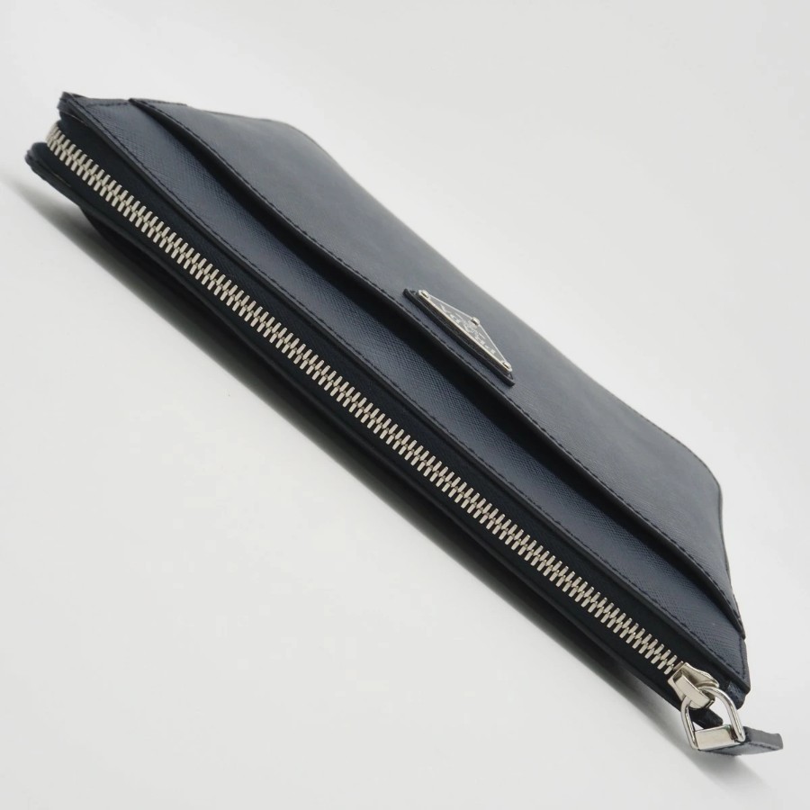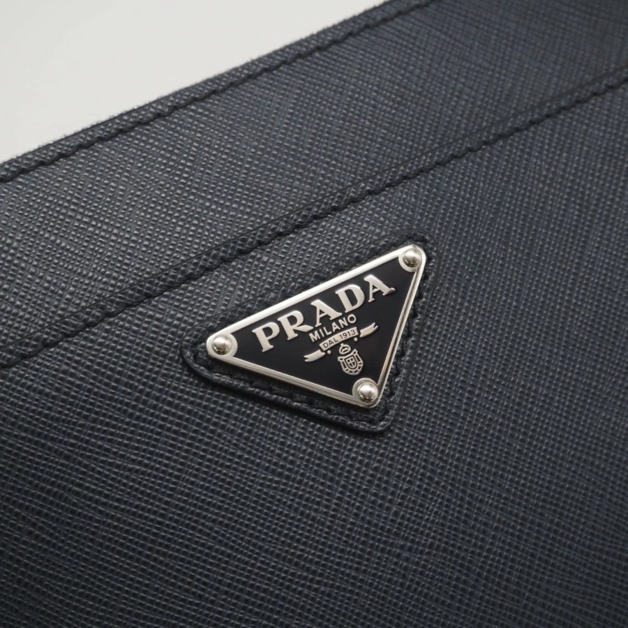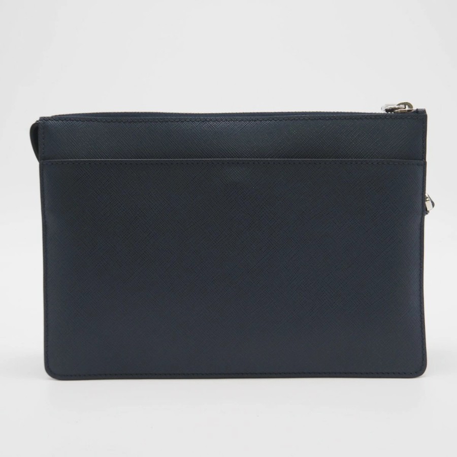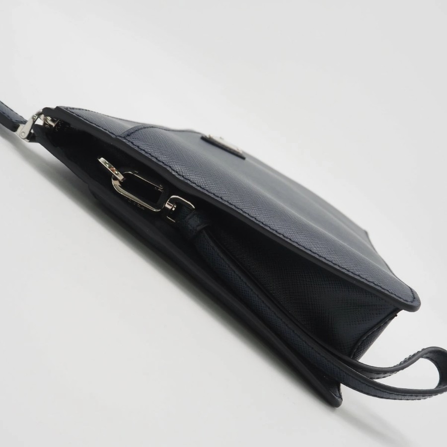 Excellent condition PRADA Saffiano leather pouch 2VF032, navy, men's [Used]