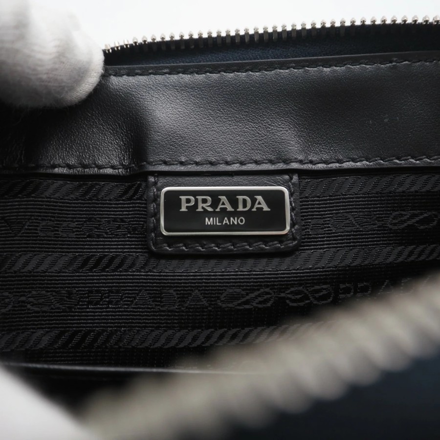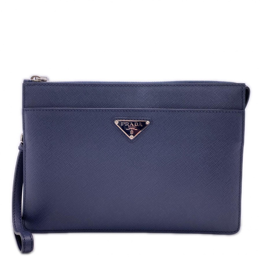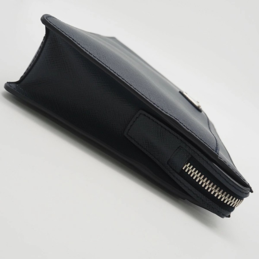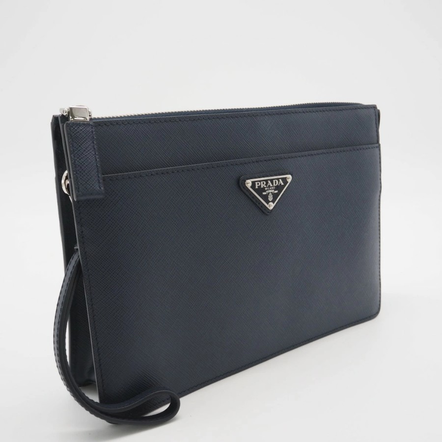 Excellent condition PRADA Saffiano leather pouch 2VF032, navy, men's [Used]