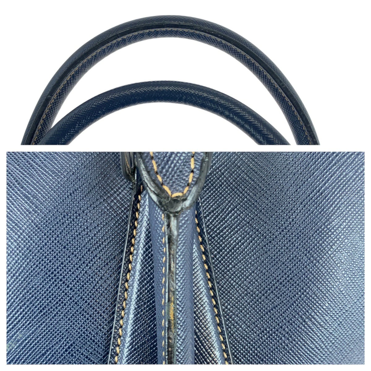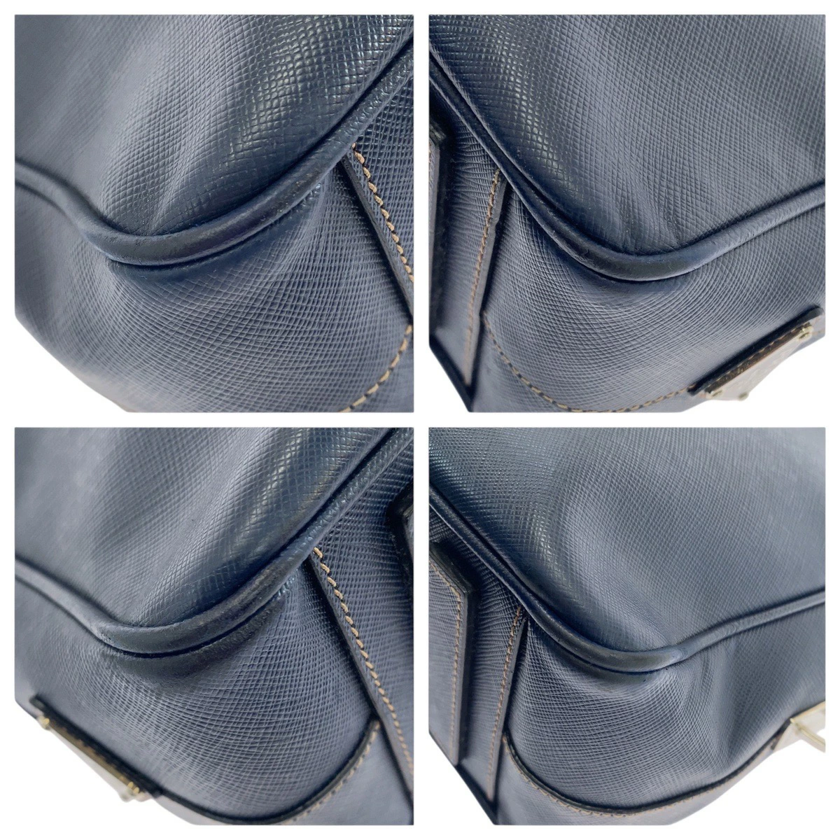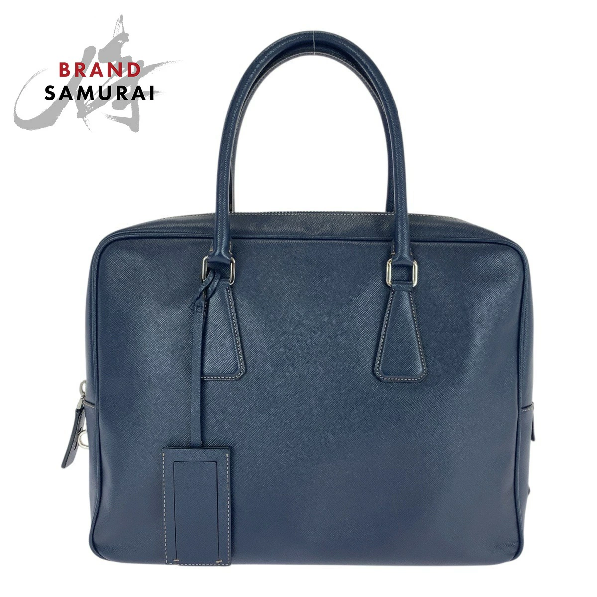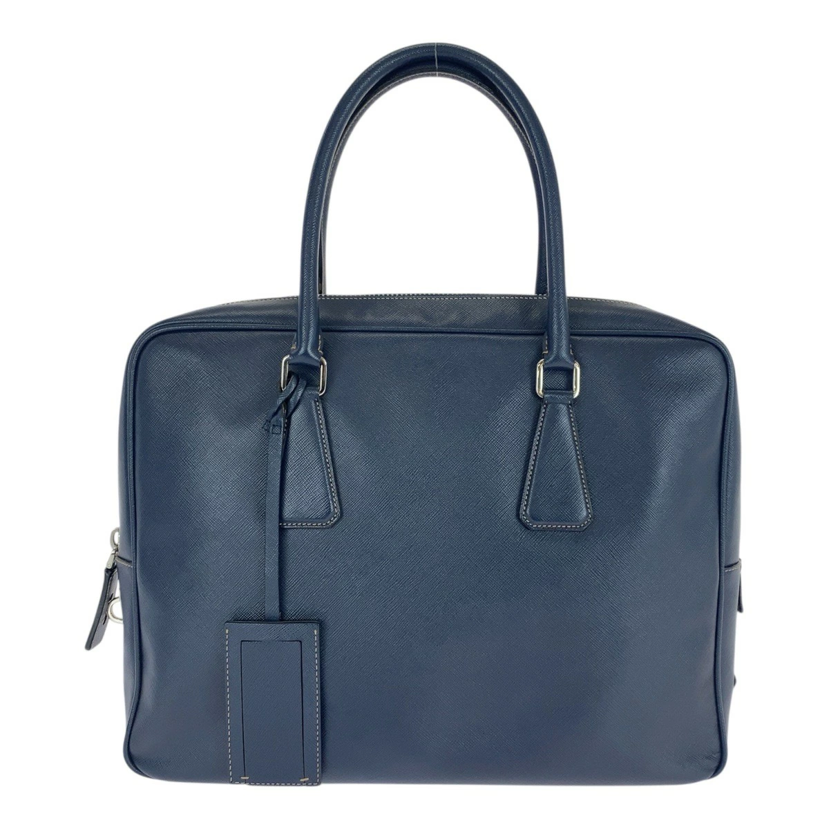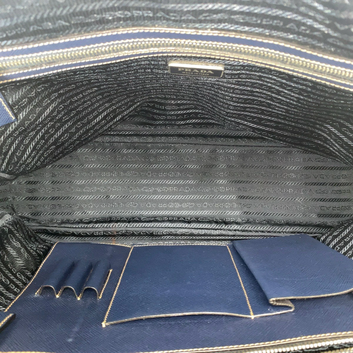 Excellent condition PRADA Saffiano navy leather briefcase with silver hardware, men's size 505857 (pre-owned)