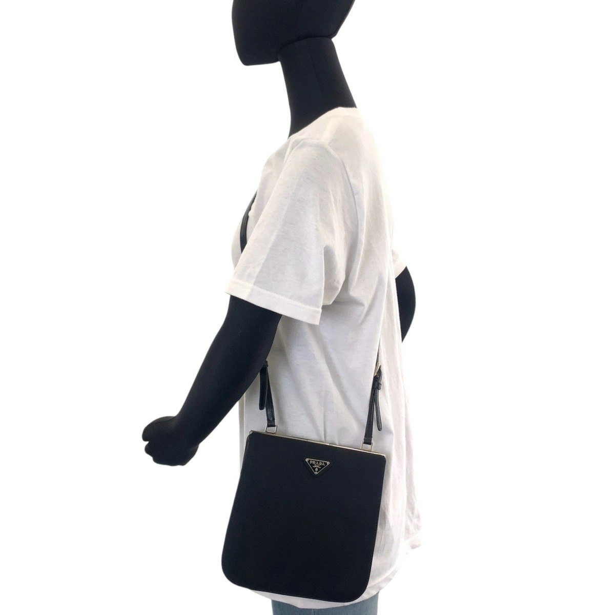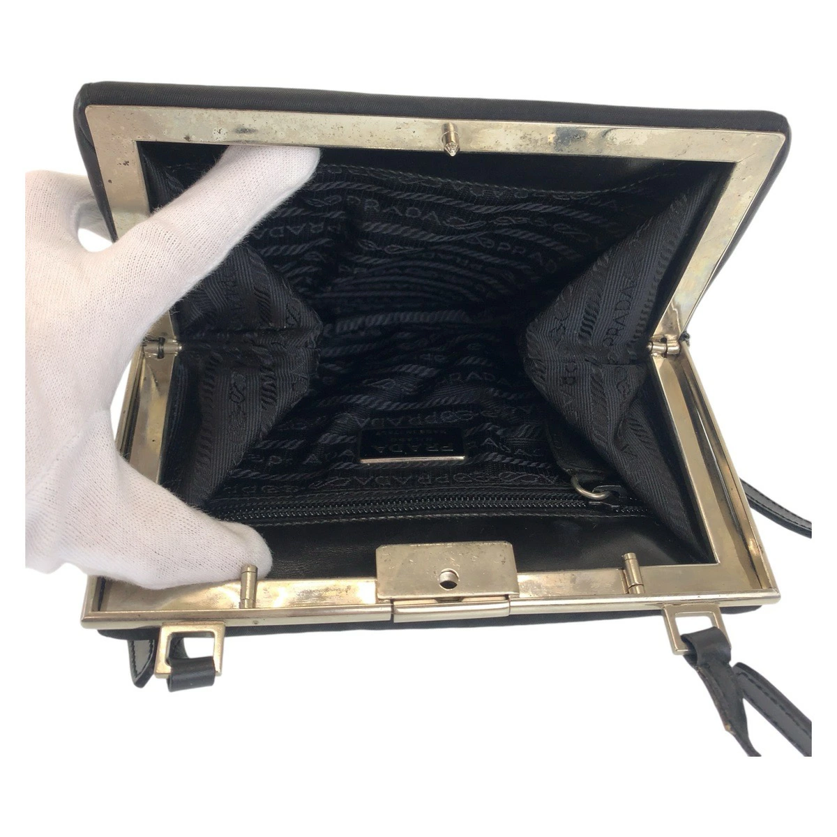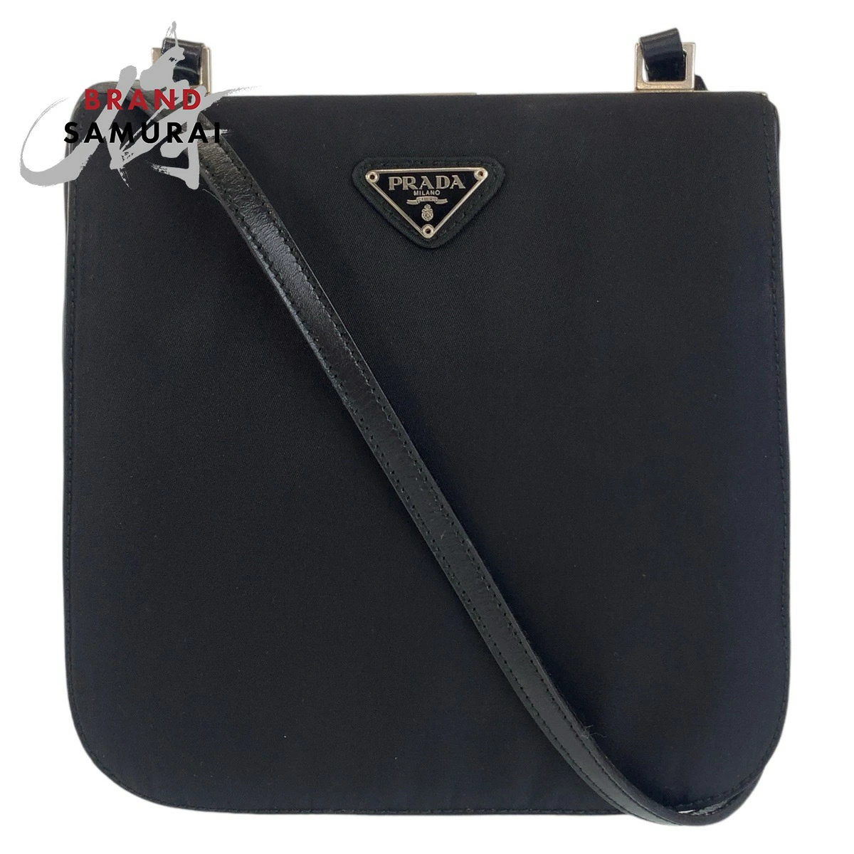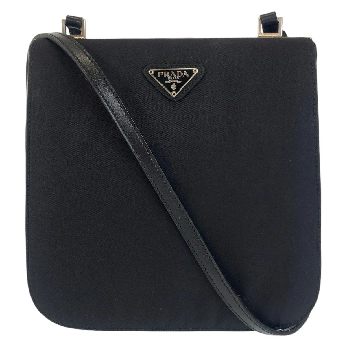 Excellent condition Prada Tessuto triangular logo plate, black with silver hardware, nylon shoulder bag/pouch, women's, 503598 [pre-owned]