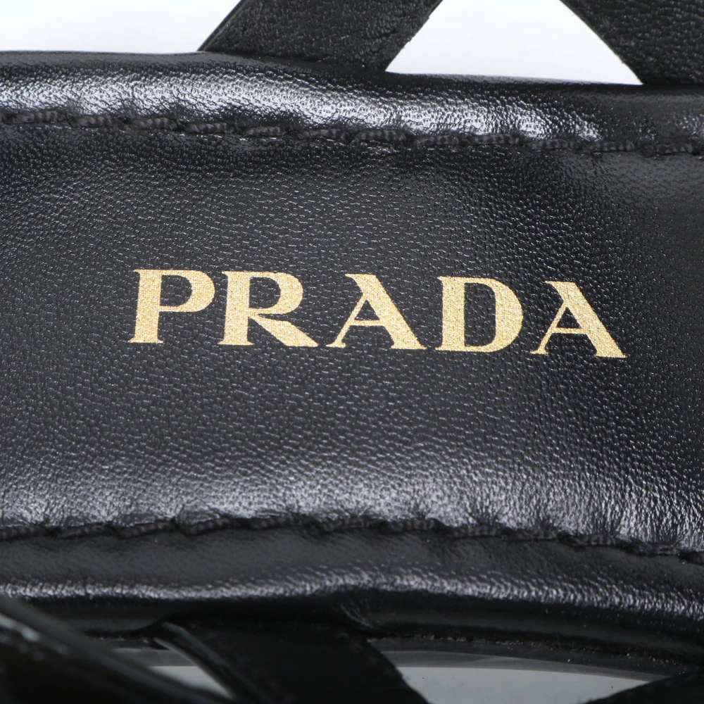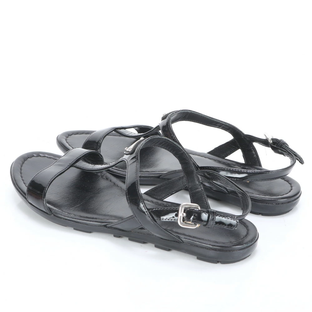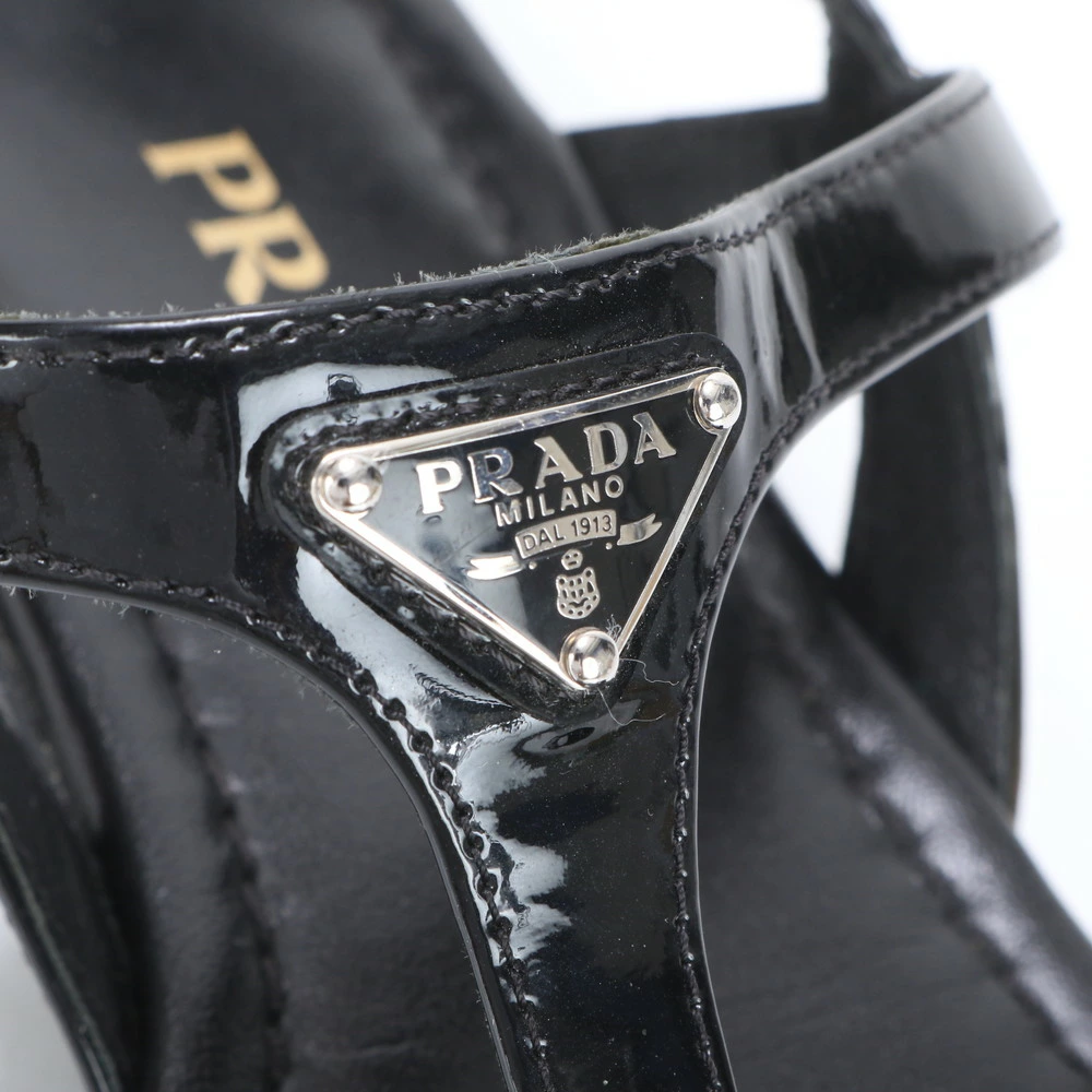 Excellent condition Prada triangle logo leather flat sandals, size 36.5, black heel, women's, RRE BS1-3