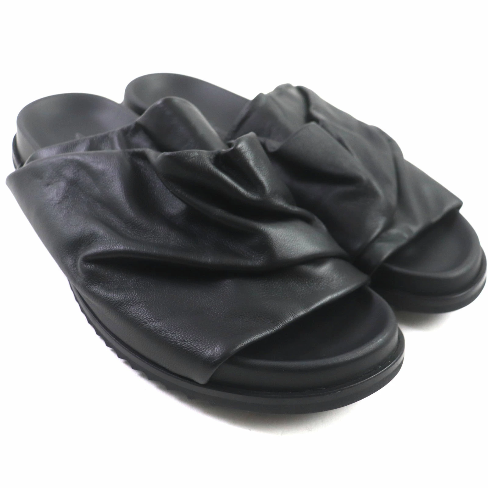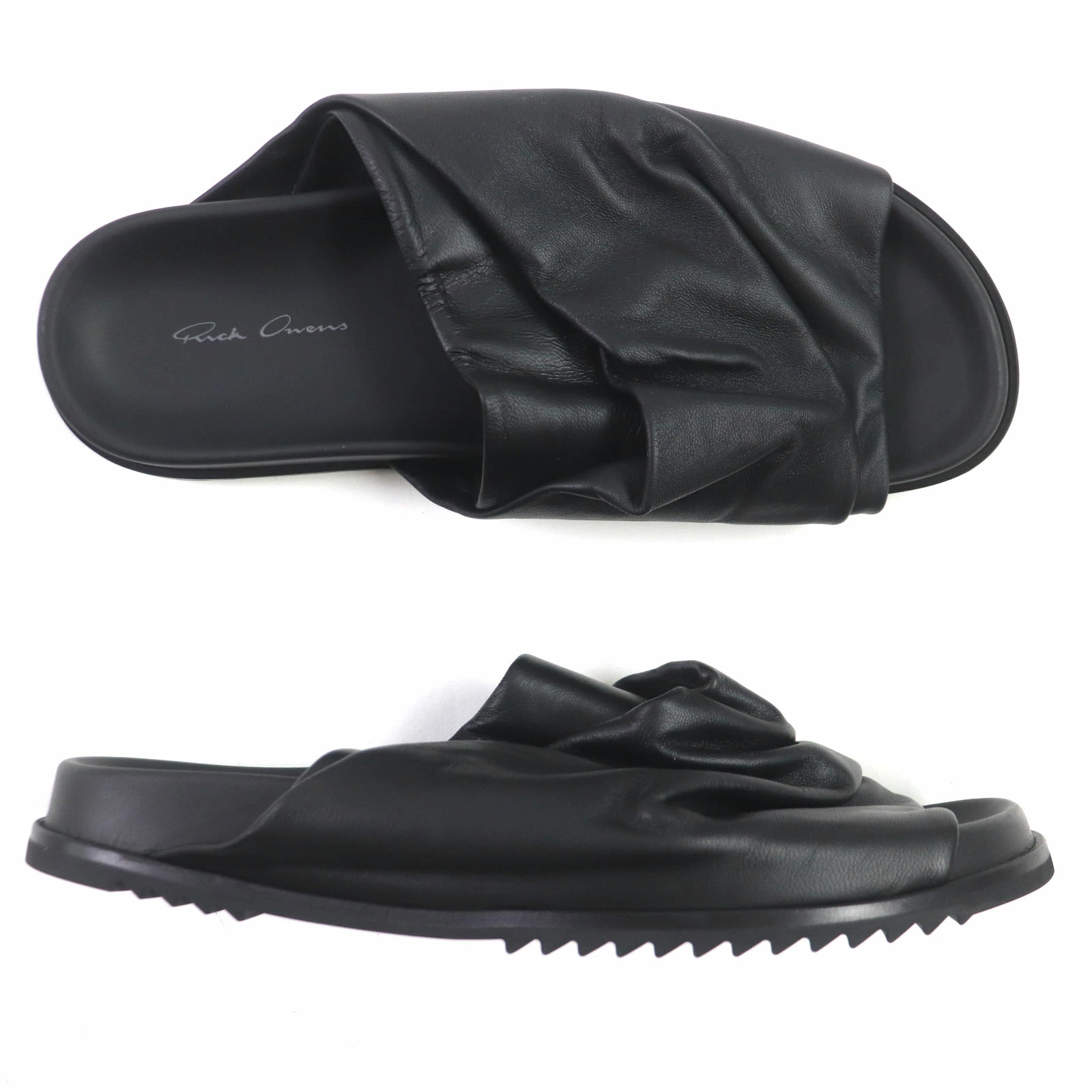 Excellent condition: Rick Owens Mobious Granola leather slide sandals in black, size 40, men's [pre-owned]