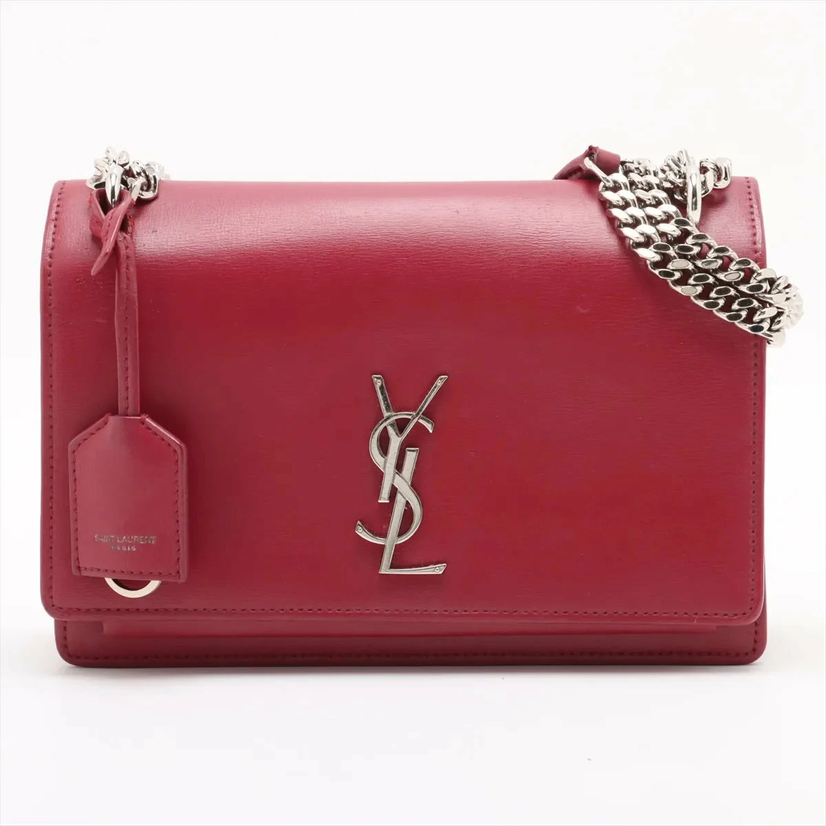 Excellent condition Saint Laurent Paris Sunset Red chain leather 2-way shoulder bag, crossbody bag, and handbag. Genuine leather. Women's MMM CY54-2.