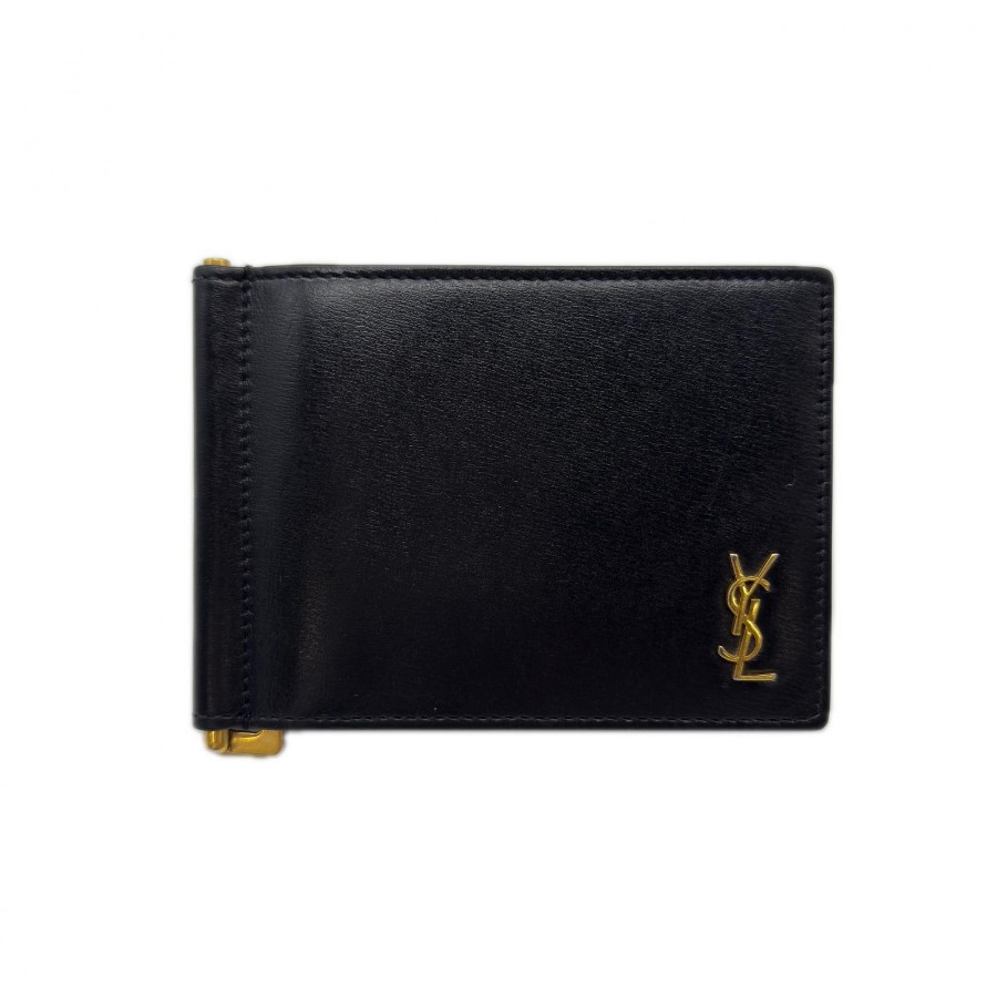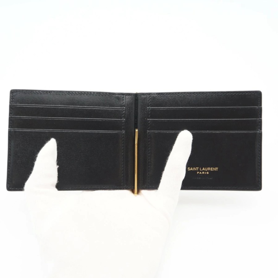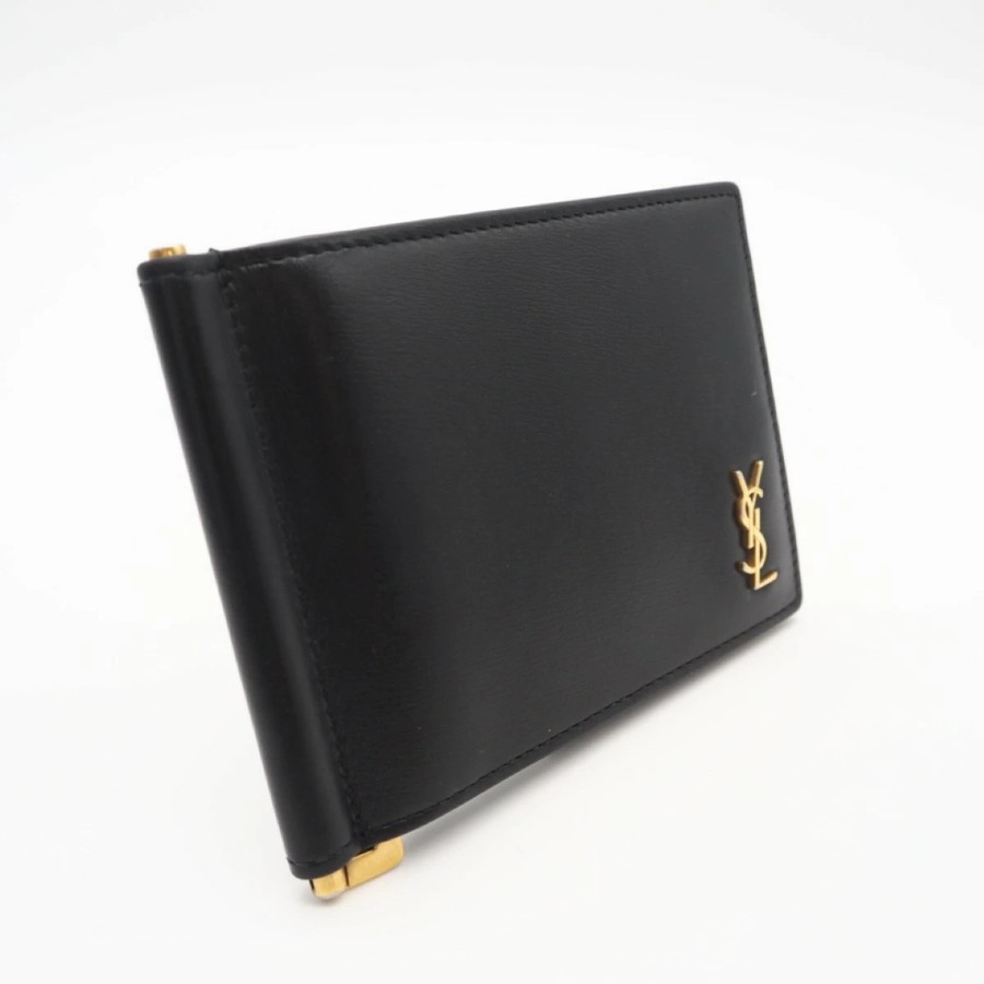 Excellent condition SAINT LAURENT PARIS Tiny Cassandra Bill Clip Wallet 607738 Money Clip Black Calf Leather Men's [Used]