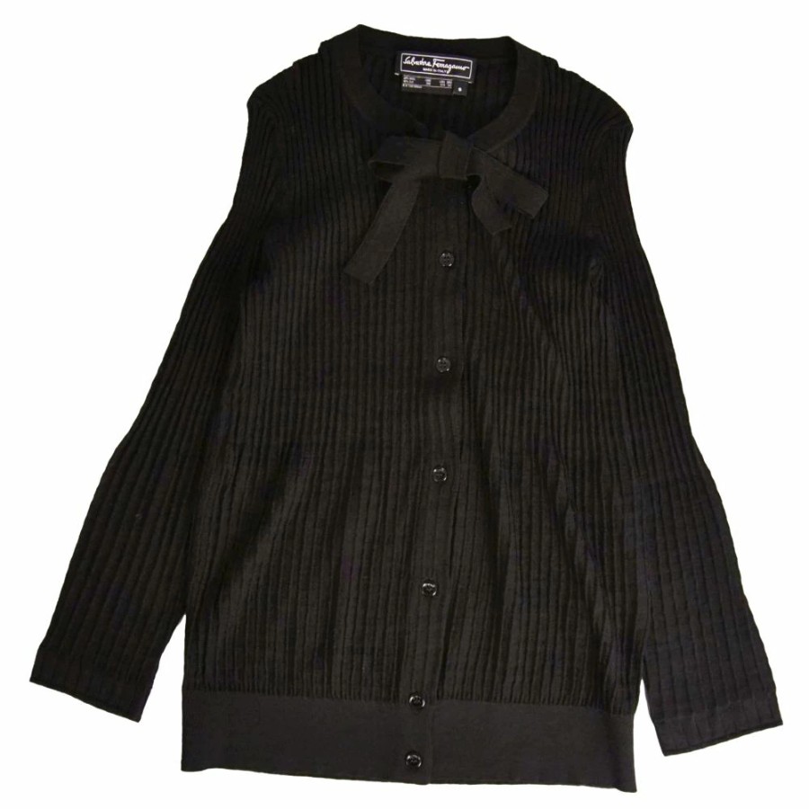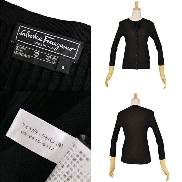 サルヴァトーレ フェラガモ Salvatore Ferragamo カーディガン ニット ウール シルク トップス レディース イタリア製 ブラック サイズS