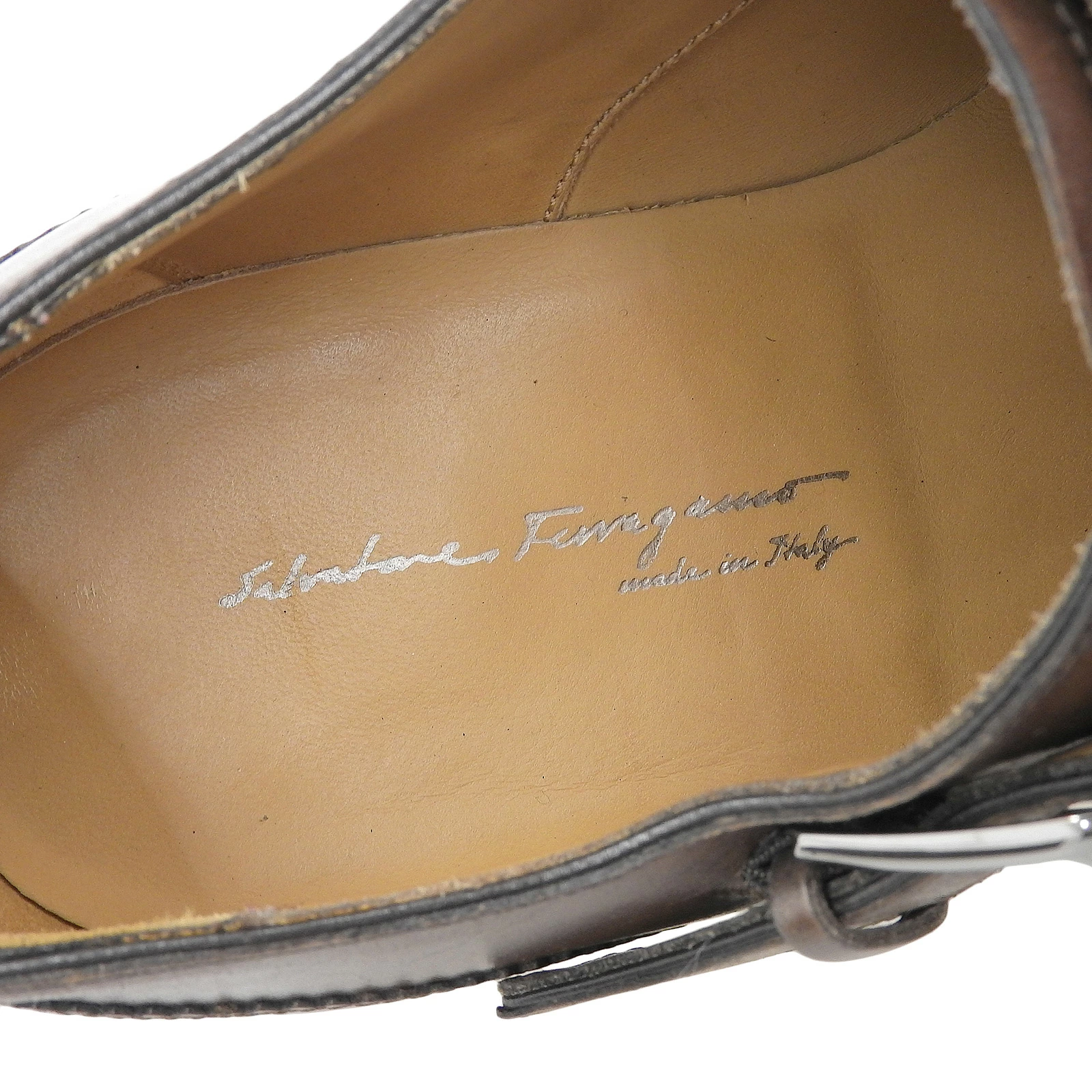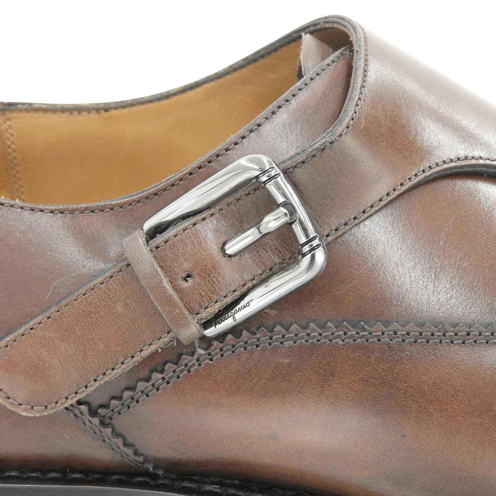 Excellent condition: Salvatore Ferragamo TRAMEZZA monk strap leather shoes, brown, size 7, made in Italy, men's [pre-owned]