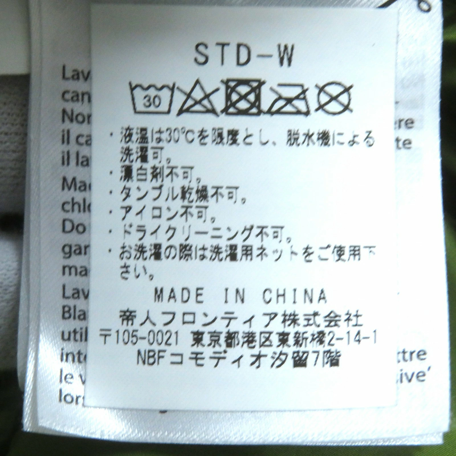 | 素材 (material) | 表地:ナイロン100% 裏地:ナイロン100% 中綿:ポリエステル100% | ||||||||||||||||