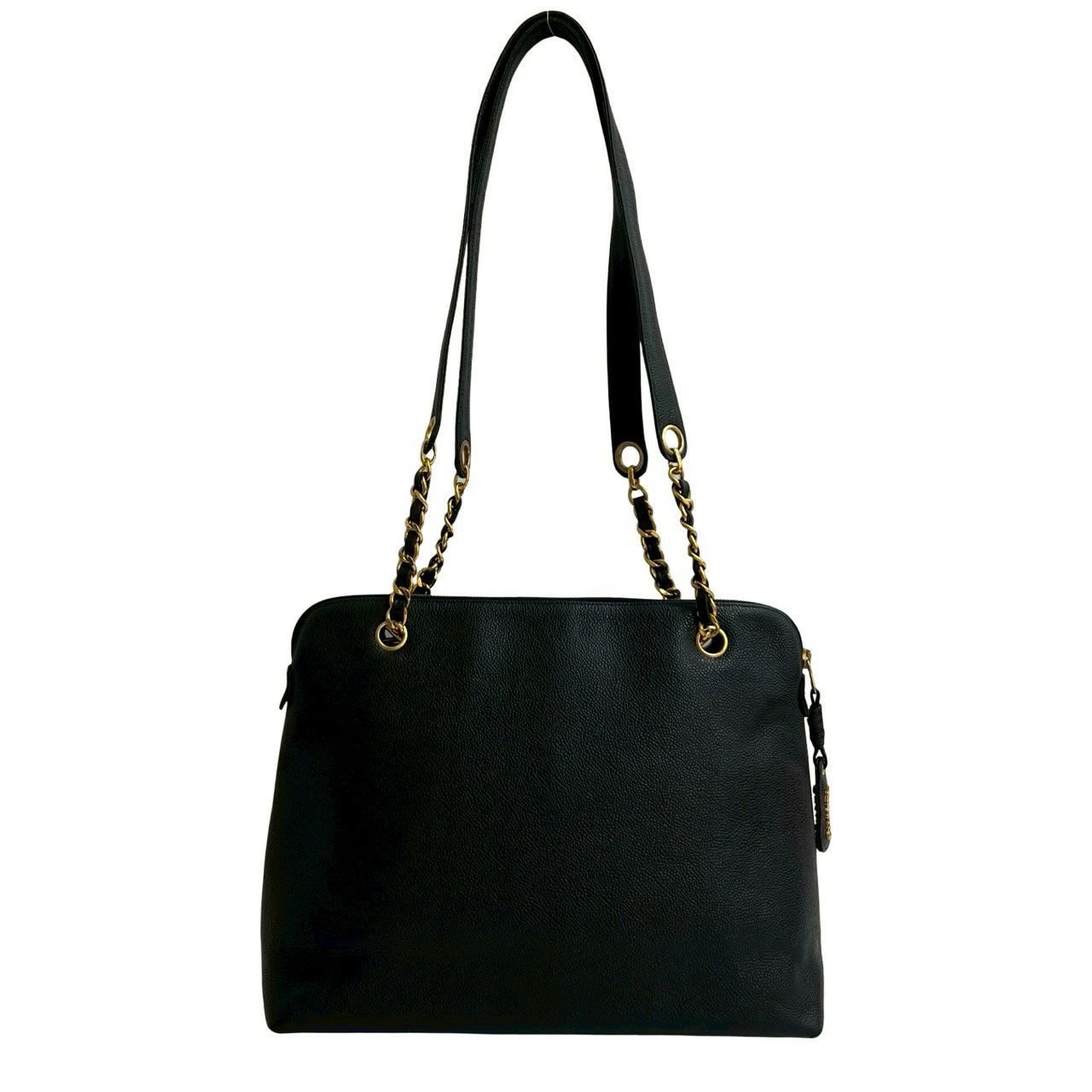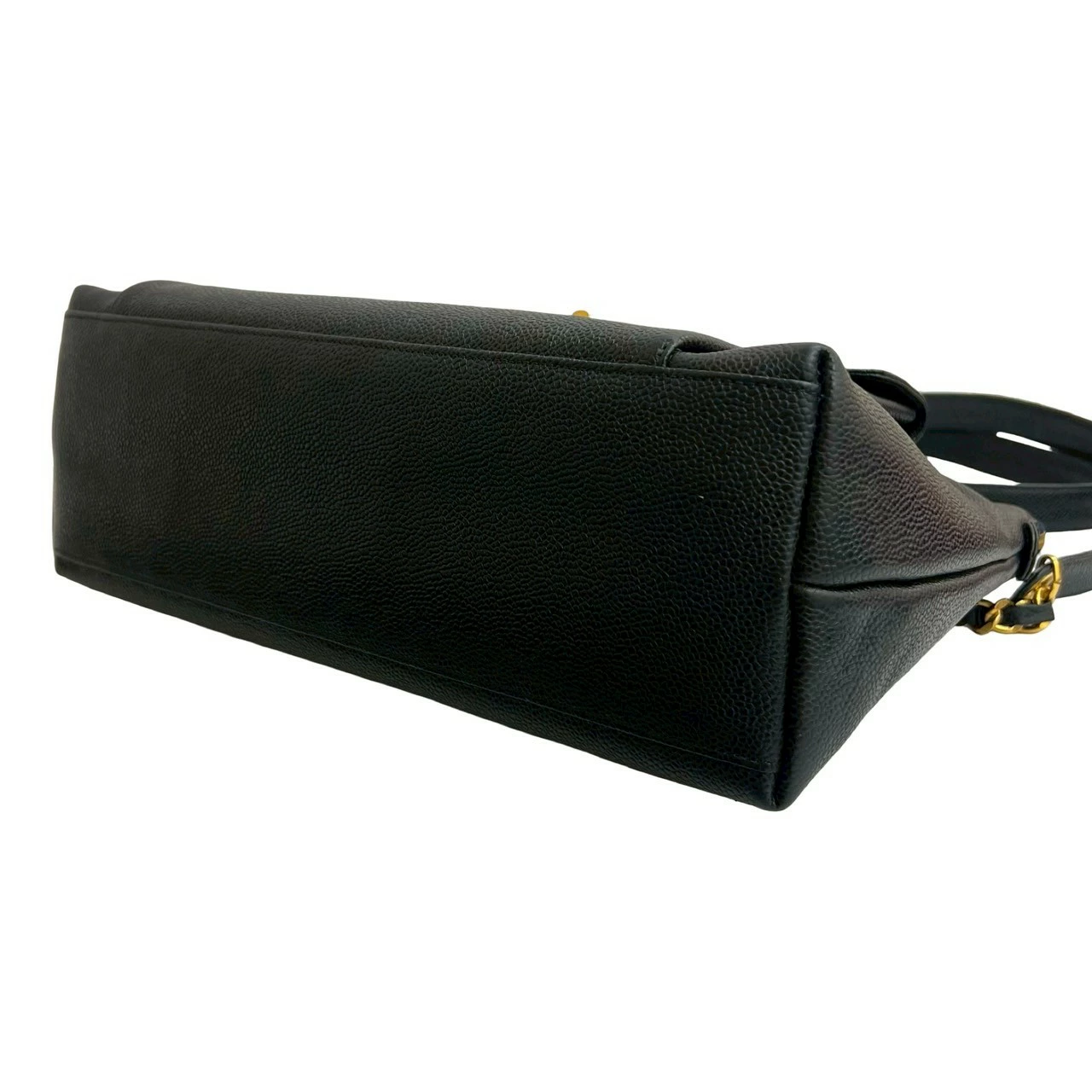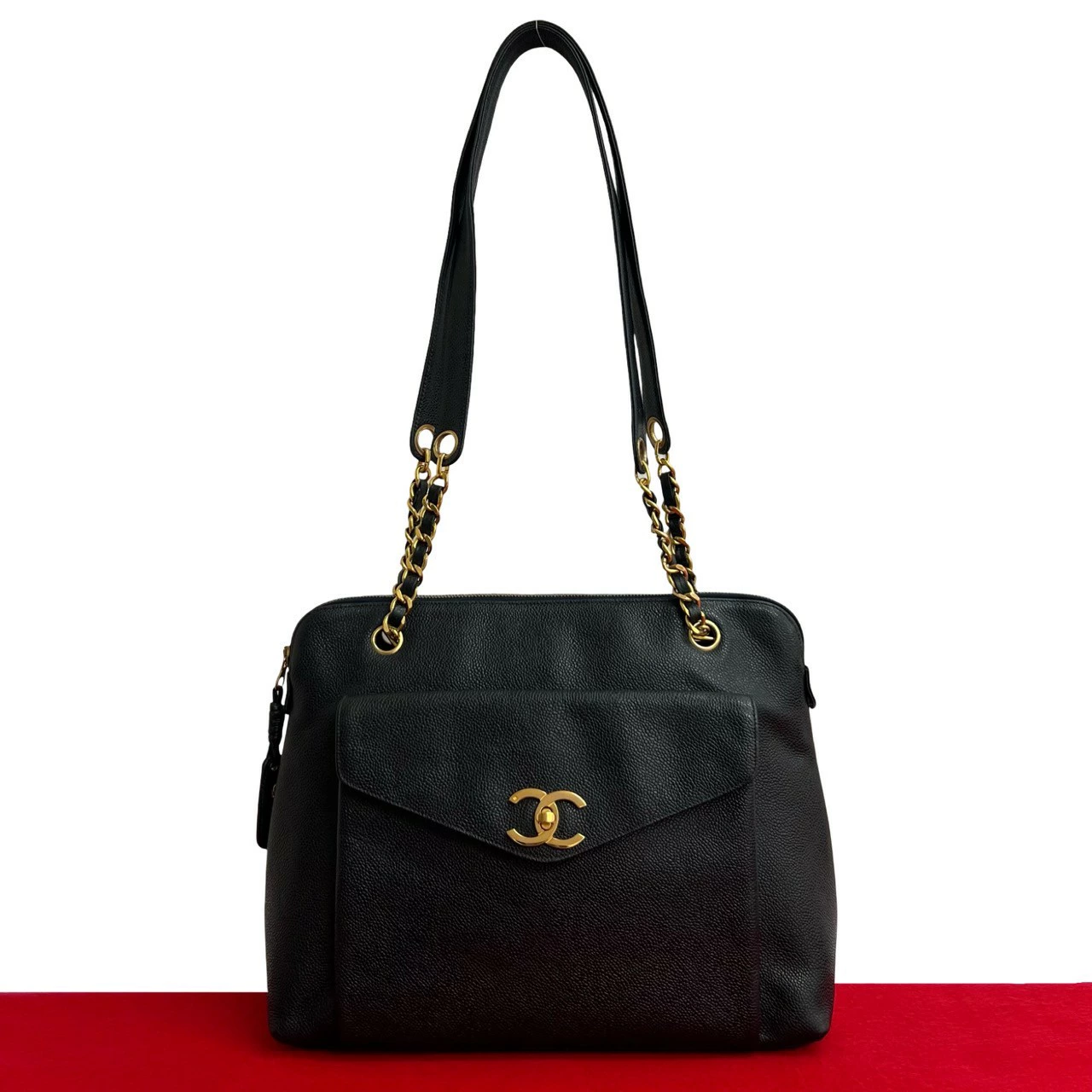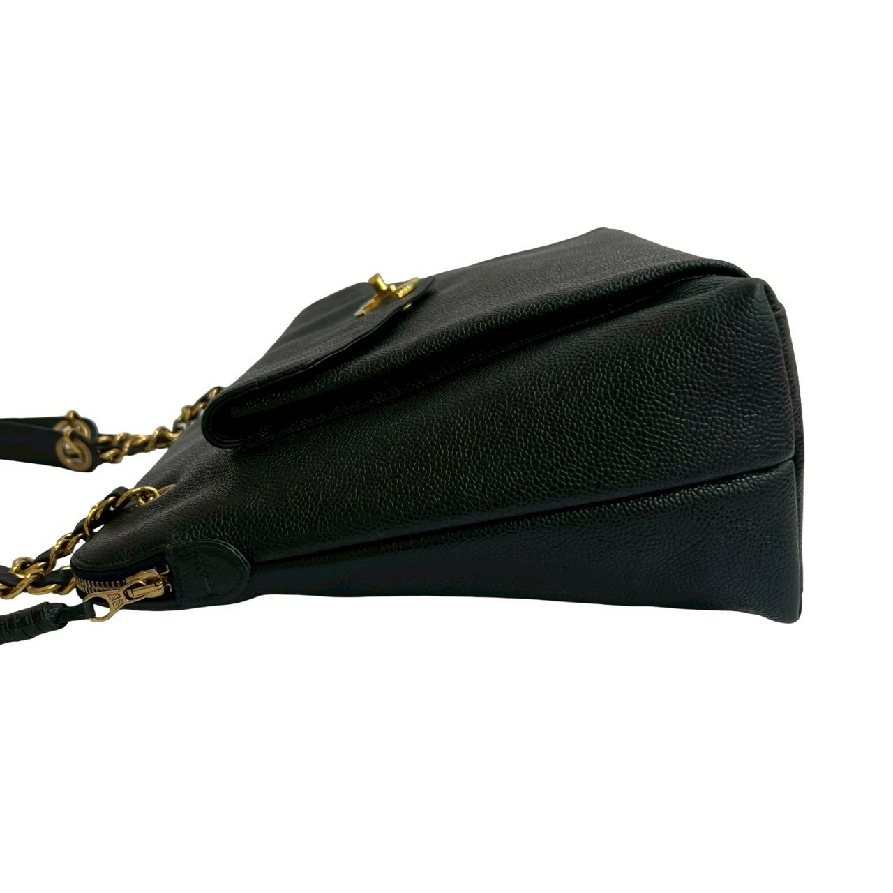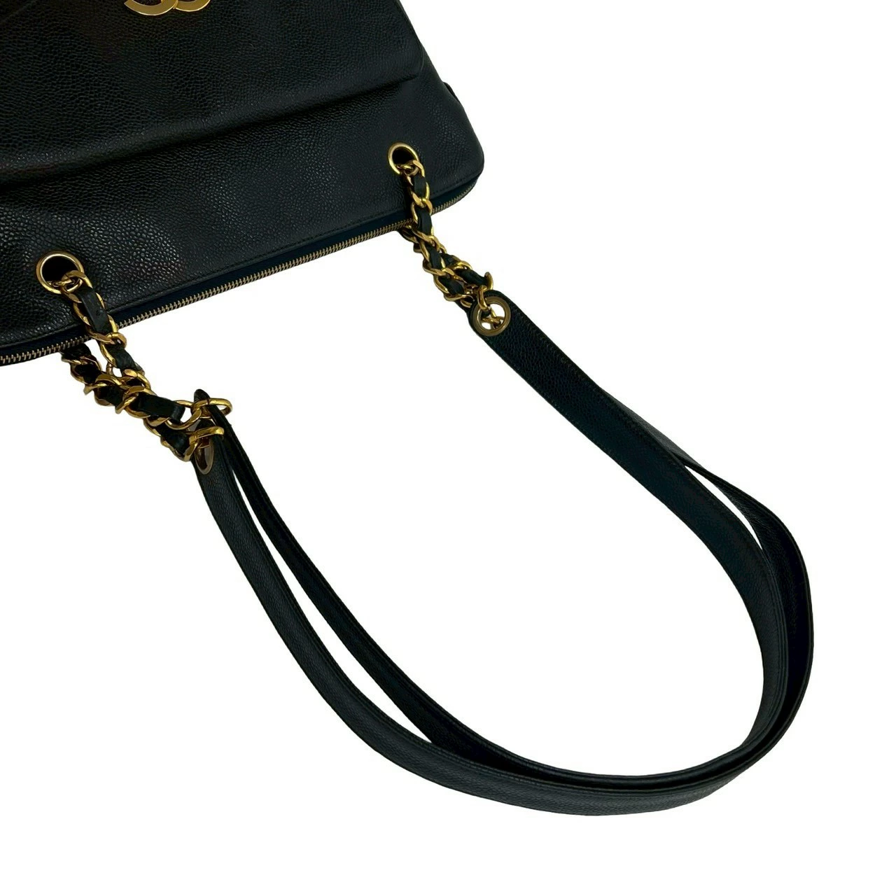 Excellent condition, sticker attached, CHANEL Vintage Coco Mark Caviar Leather Chain Semi Shoulder Bag, Black, 26067 (Pre-owned)
