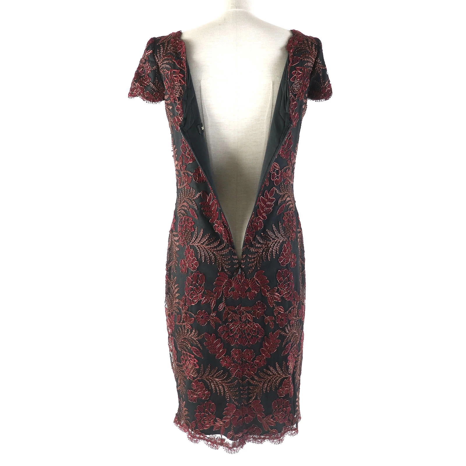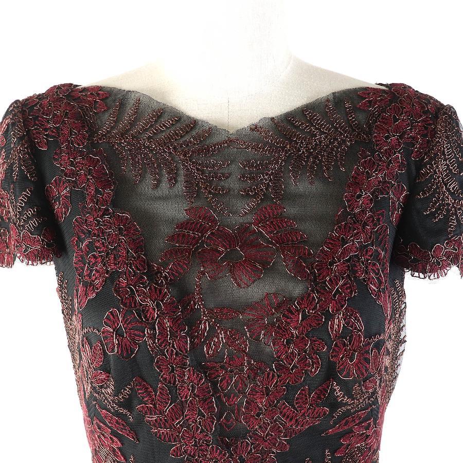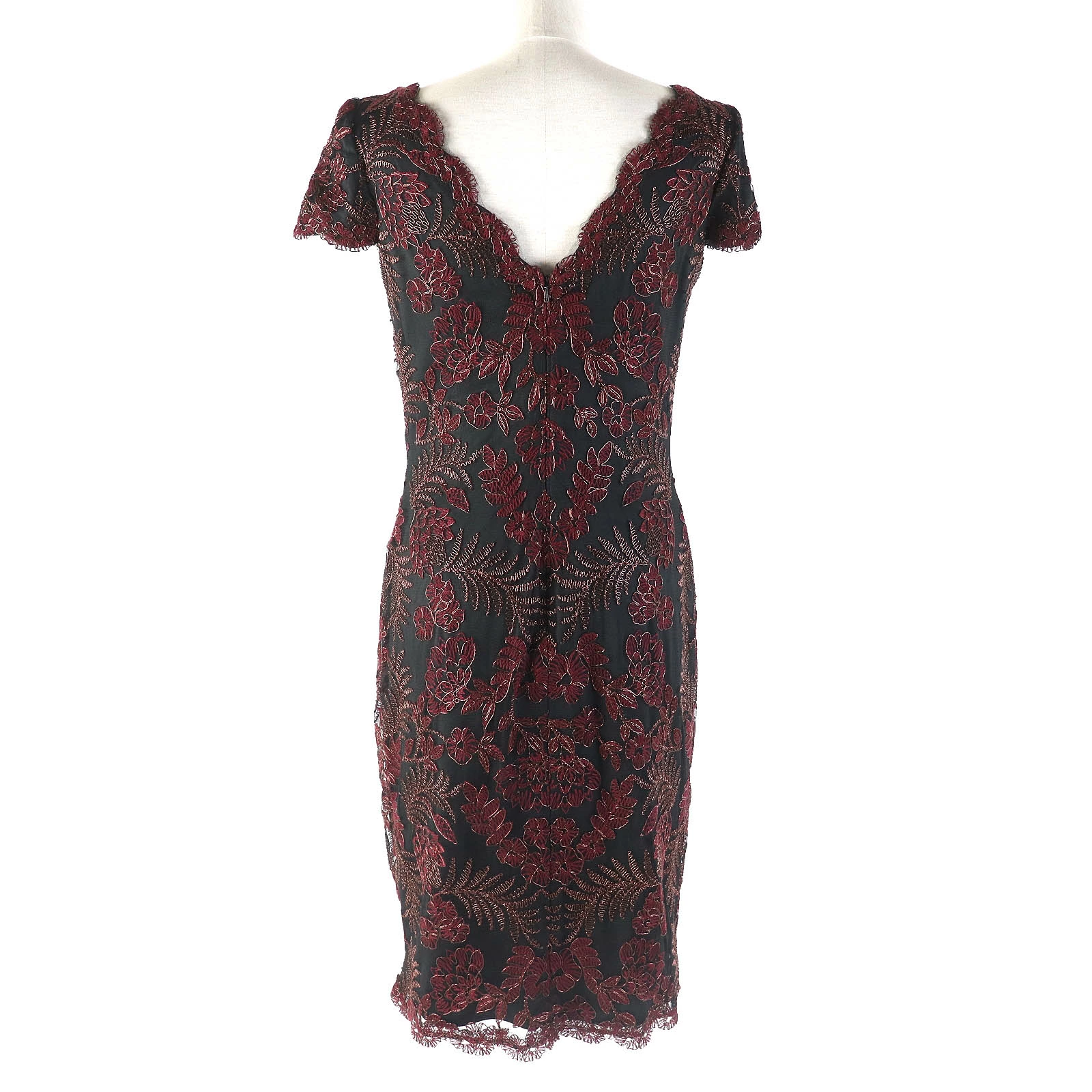 Excellent condition TADASHI SHOJI Pemba Dress with floral embroidery, short sleeves, black and burgundy, size 4, women's, beautiful silhouette, recommended◎ [Pre-owned]