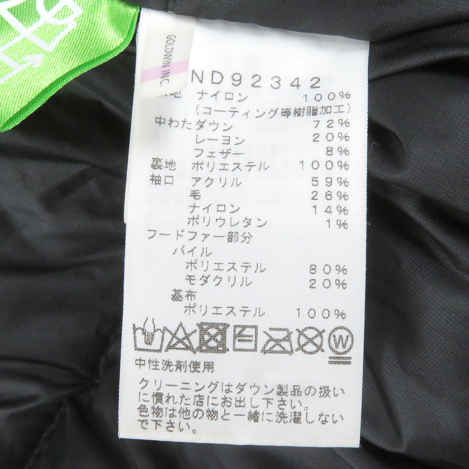 | 素材 (material) | 表地:ナイロン100% 中綿:ダウン72% :レーヨン20% :フェザー8% 裏地:ポリエステル100% 一部:アクリル59% :毛26% :ナイロン14% :ポリウレタン1% その他:ポリエステル80% モダクリル20% 基布:ポリエステル100% | ||||||||||||||||