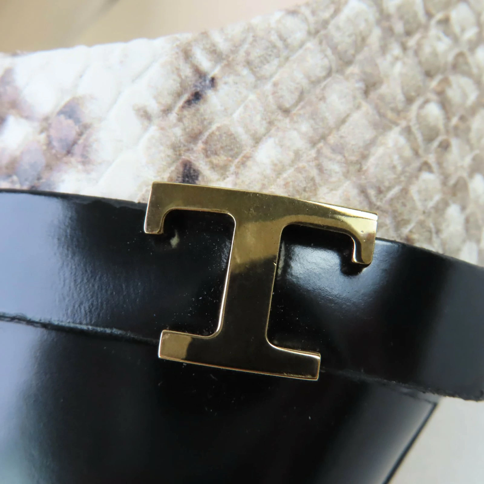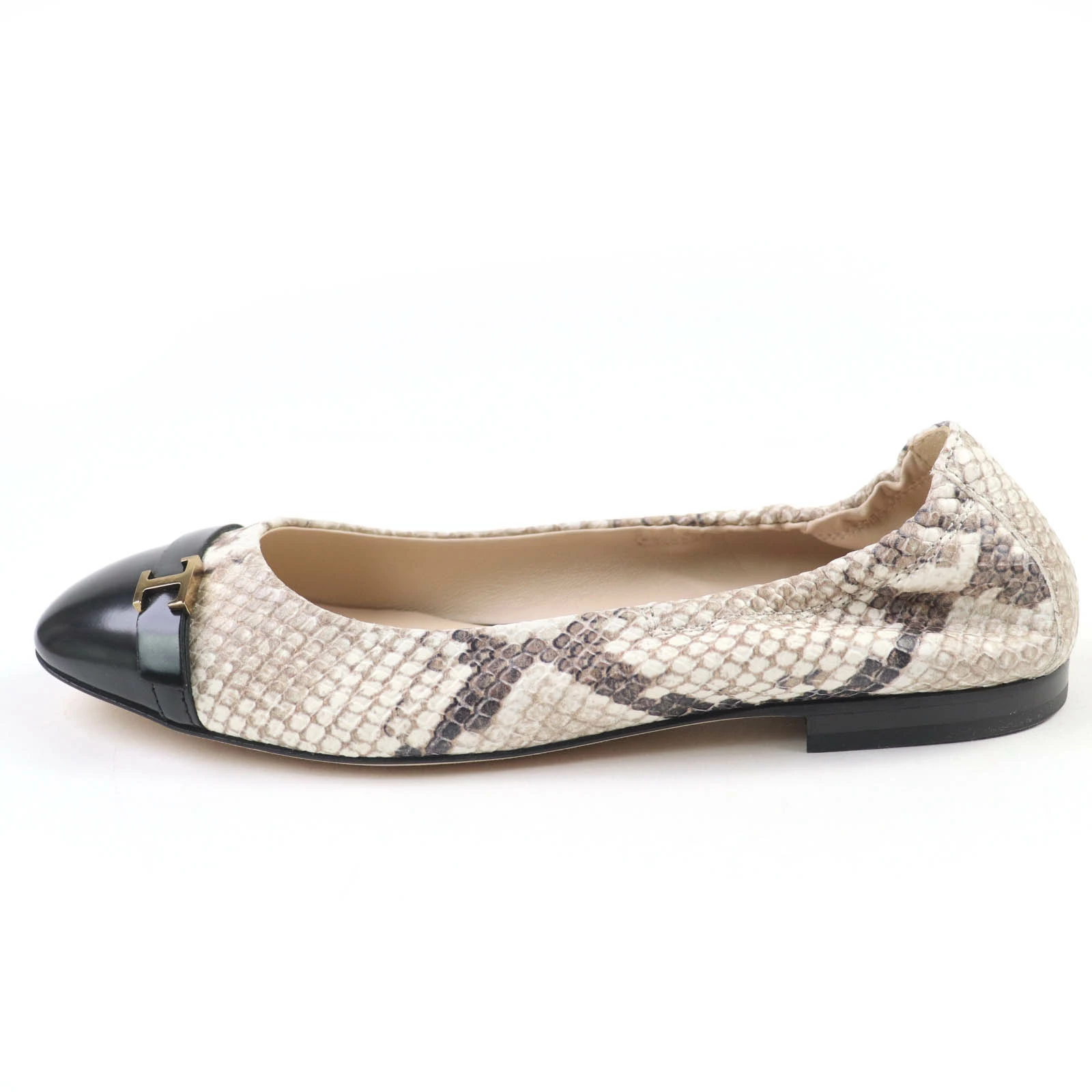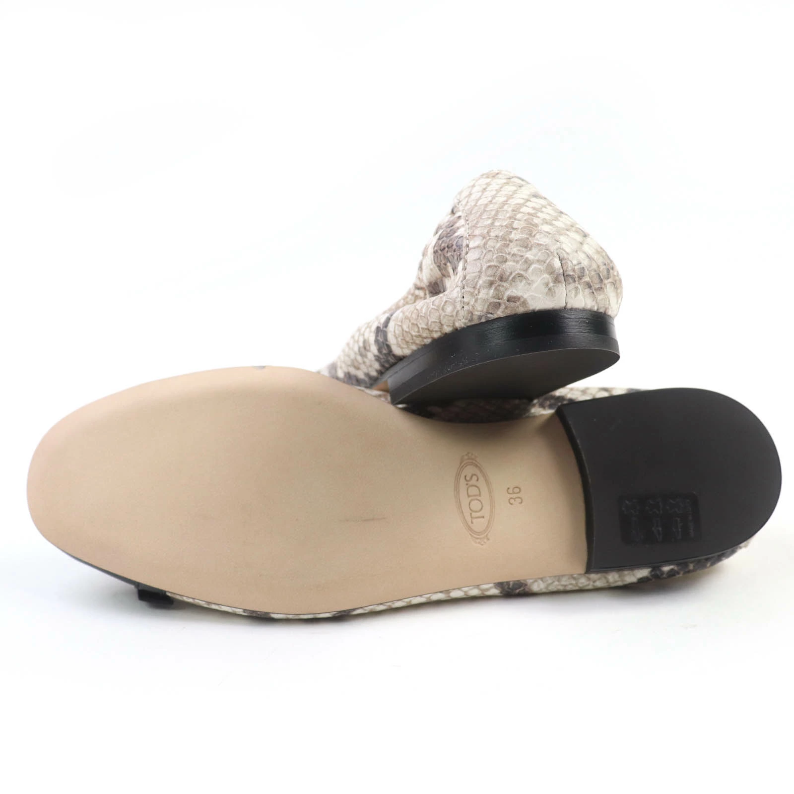 Excellent condition TOD'S T Timeless python-embossed leather flats/pumps in brown and black, size 36, with dust bag, made in Italy. Pre-owned.