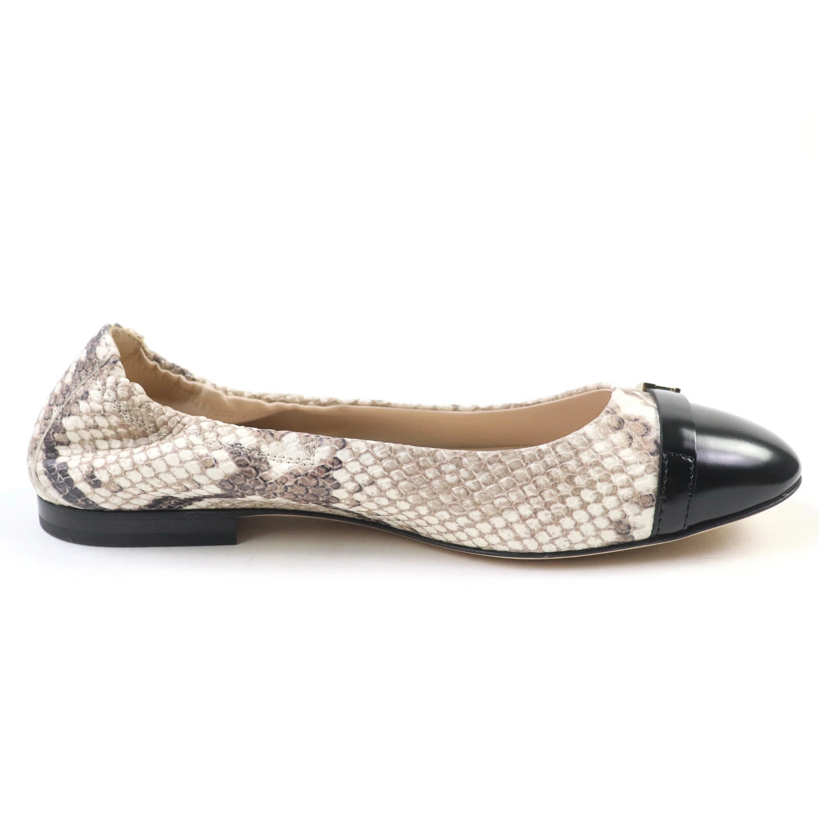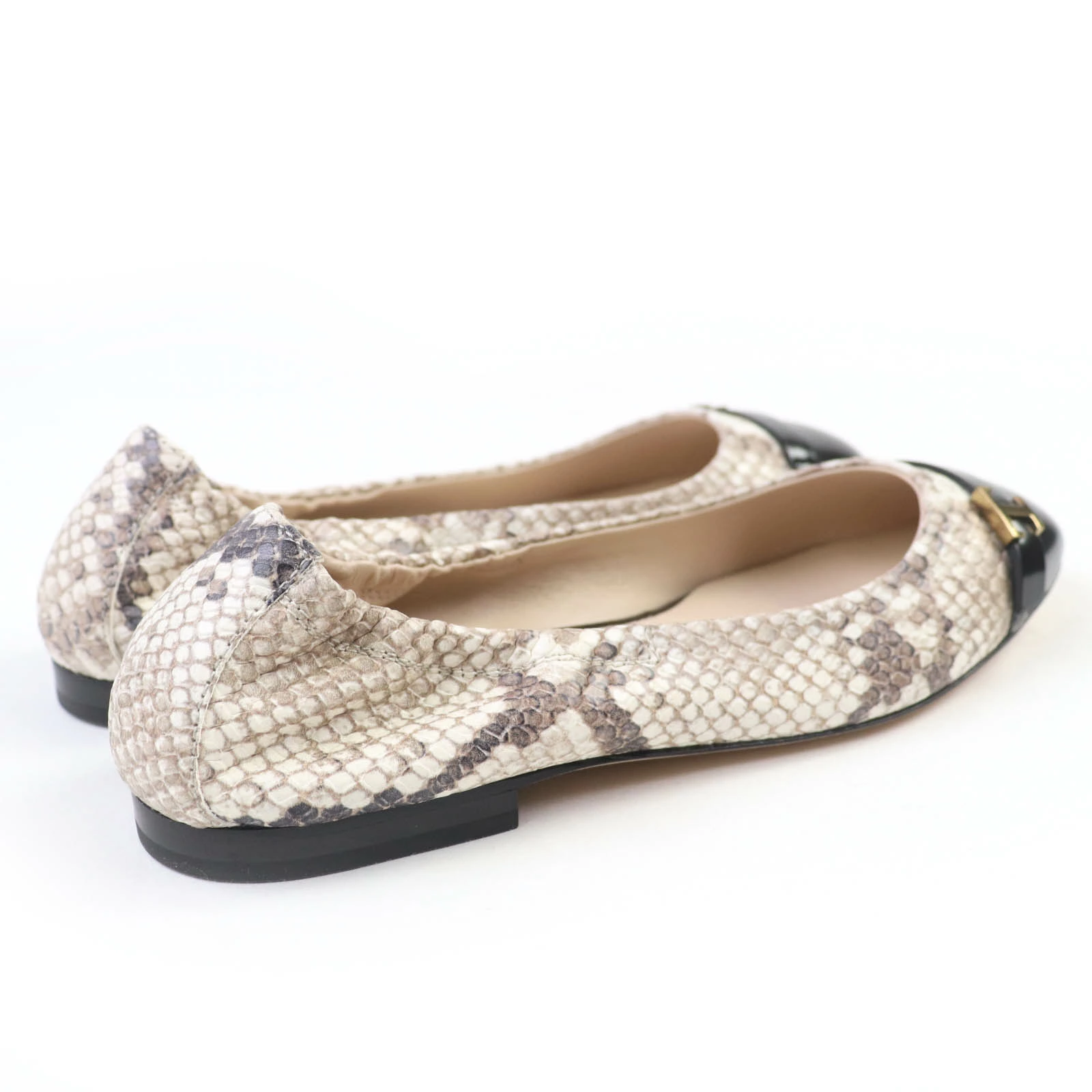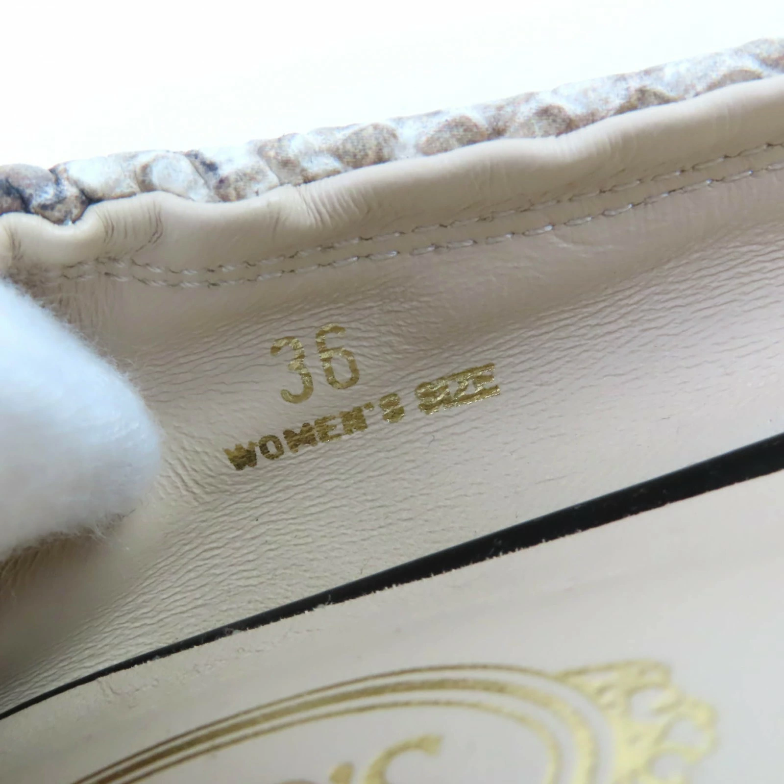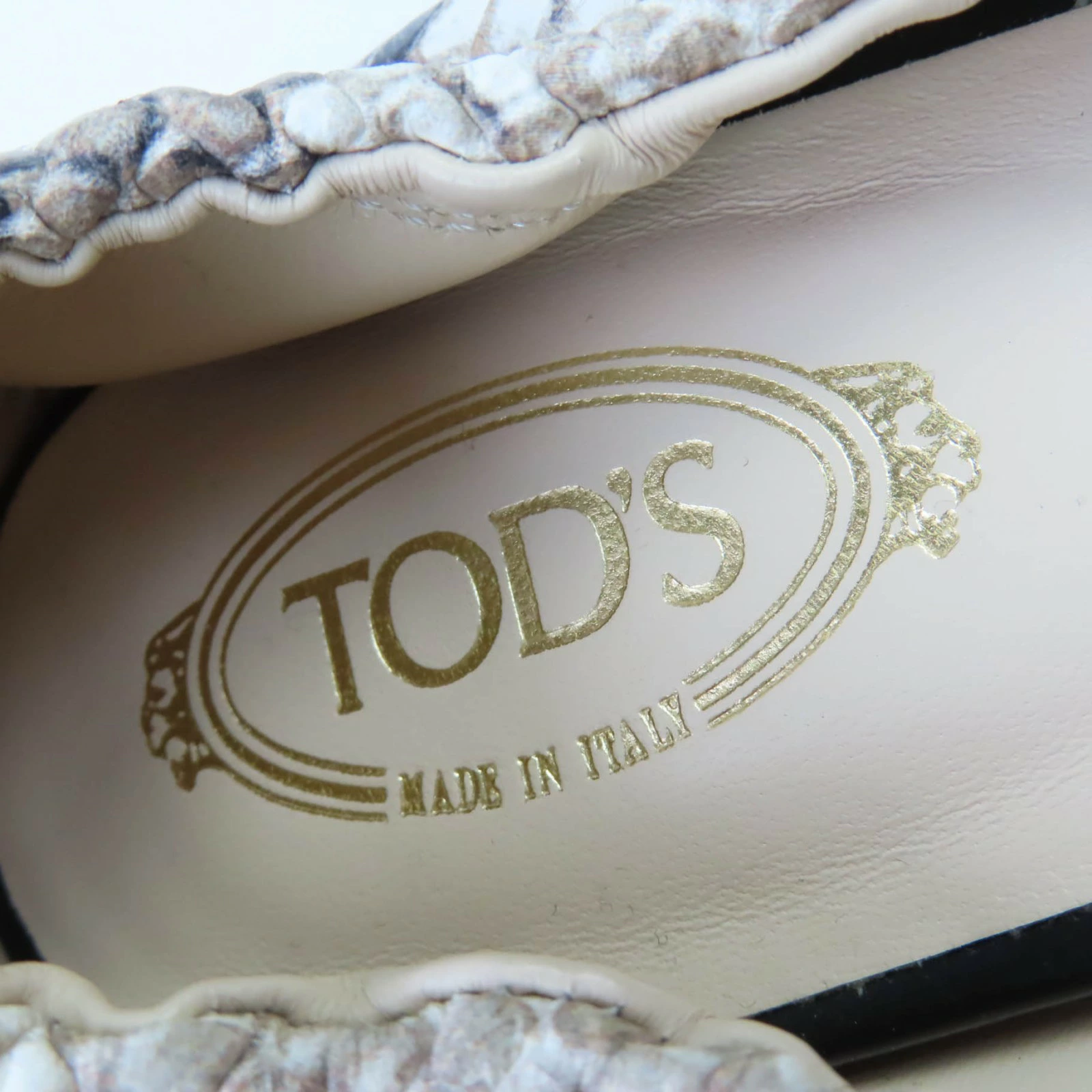 Excellent condition TOD'S T Timeless python-embossed leather flats/pumps in brown and black, size 36, with dust bag, made in Italy. Pre-owned.