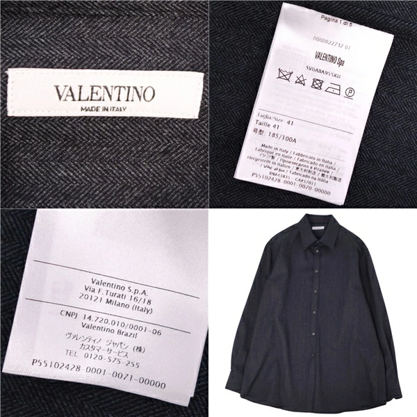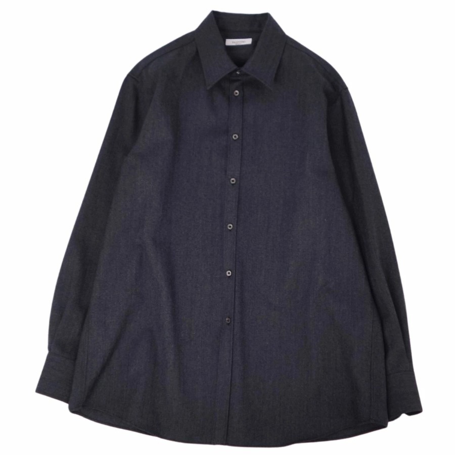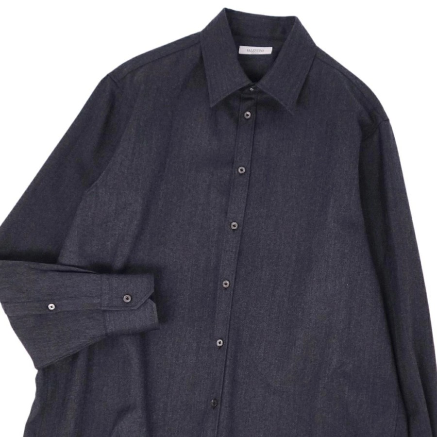 ヴァレンティノ VALENTINO シャツ ロングスリーブ 長袖 ウール イタリア製 トップス メンズ ダークグレー サイズ41/16 (L相当)
