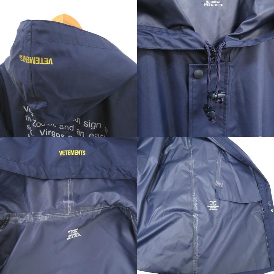 [管理番号]7H1845S4T31[ブランド]ヴェトモン(VETEMENTS)[タイプ]オーバーサイズド レインコート シームシーリング加工 フード付き[対象]メンズ[カラー]ブルー[金具]ネイビー[生産国]SLOVENIA[生産年]2018[サイズ]表記サイズ:フリー肩幅:約約55cm着丈:約約110cm身幅:約約58cm袖丈:約約71cm◆採寸は全て平置きで計測しています。商品の特性上、計測した寸法に若干の誤差が生じてしまう場合がございますので、あくまでもご購入の際のサイズ目安としてご利用下さいませ。[素材]ナイロン ポリウレタン[付属品]なし