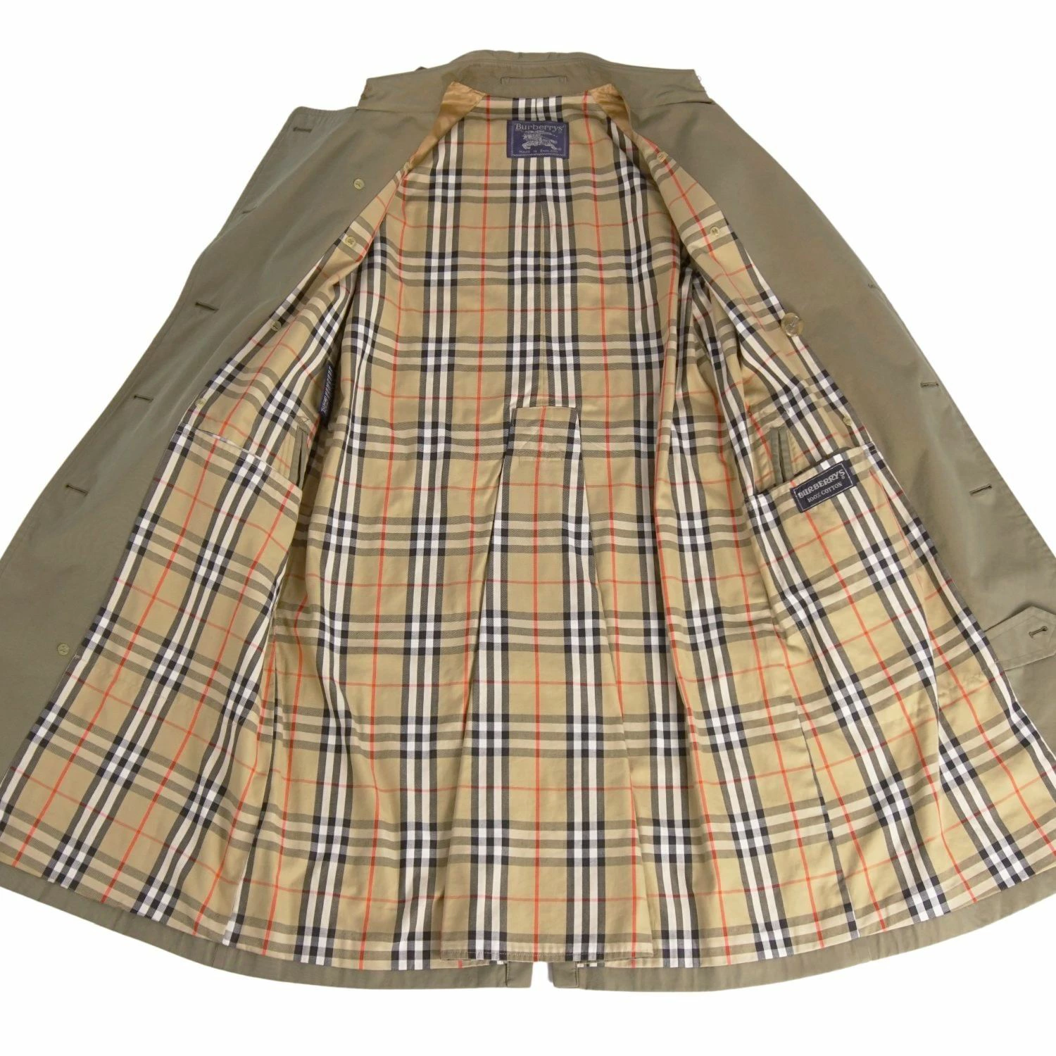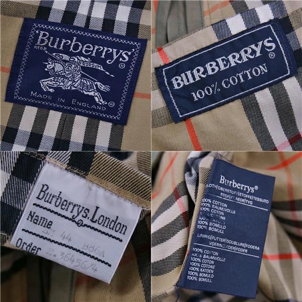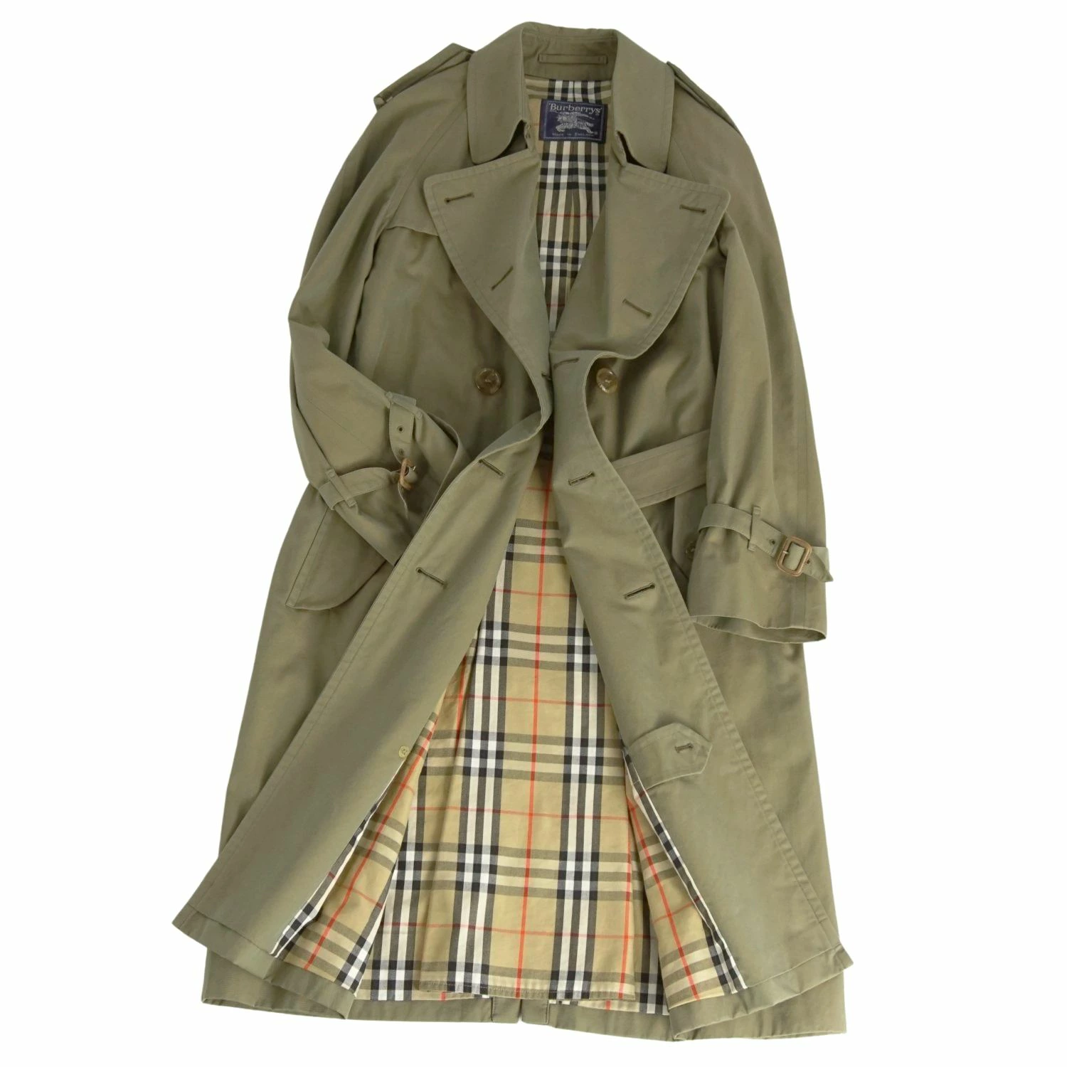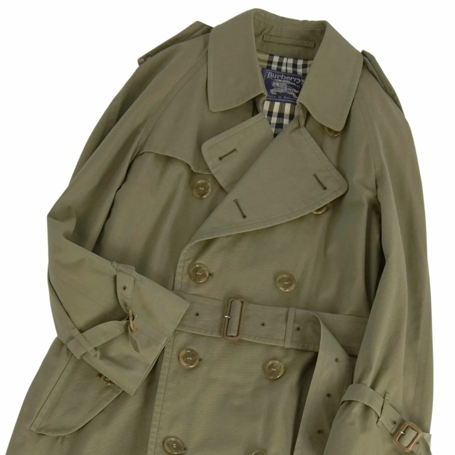 ■商品名Vintage バーバリー Burberrys コート 英国製 トレンチコート コットン100% アウター メンズ カーキグリーン サイズ44(S相当)■状態説明・希少かつ絶大な人気を誇る1980年代頃のVintage Burberrys、クラシカルで美しいシルエットが魅力的な王道トレンチコートです♪・表地はコットン100%バーバリークロス、裏地はアイコニックなチェックデザイン、肩パットなしの美しいショルダーラインです◎・イングランド製・USEDですが気になるようなキズや汚れなどはなく全体的にキレイな状態です!【季節感:秋冬】【付属品:なし】■素材表地:コットン100% 裏地:コットン100%■カラーカーキグリーン■表記サイズ44(S相当)■実寸サイズ着丈:約109cm身幅:約55cmゆき丈:約85cm袖丈(脇下から):約42cm肩幅(エポレット~エポレット):約48cm■状態ランクA 使用感の少ない全体的にキレイなUSED品■店舗管理番号ce11ms-rm20e34293 mens_s